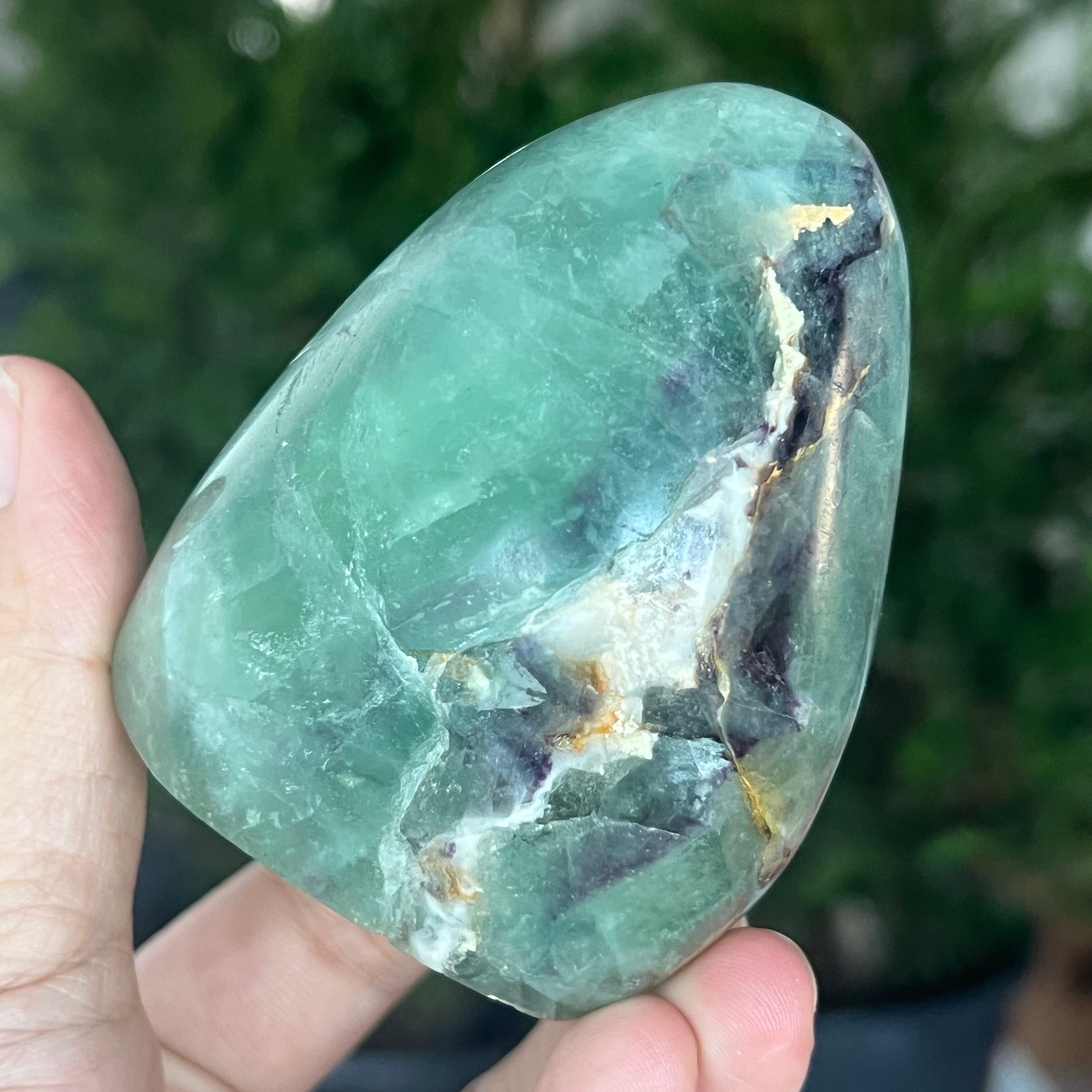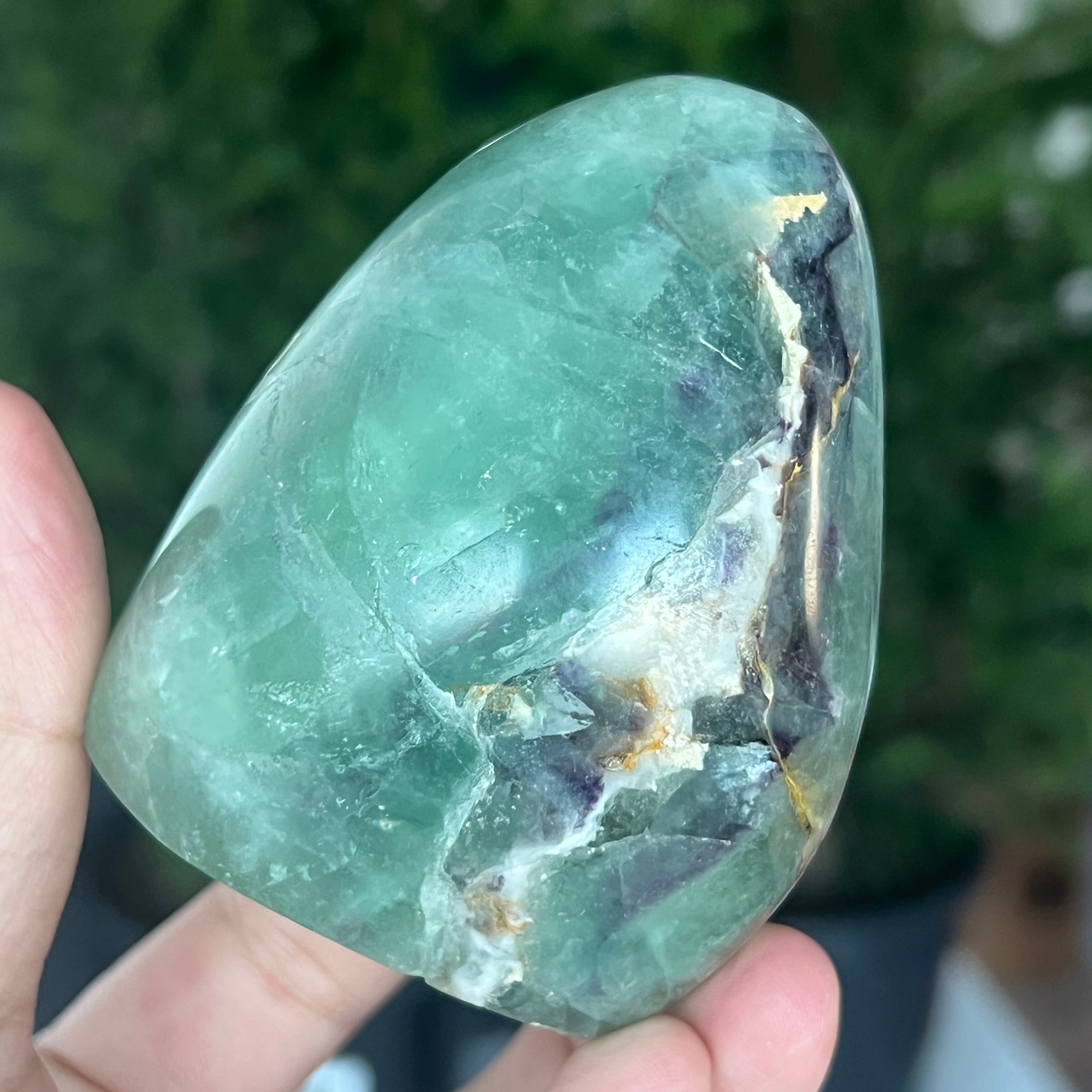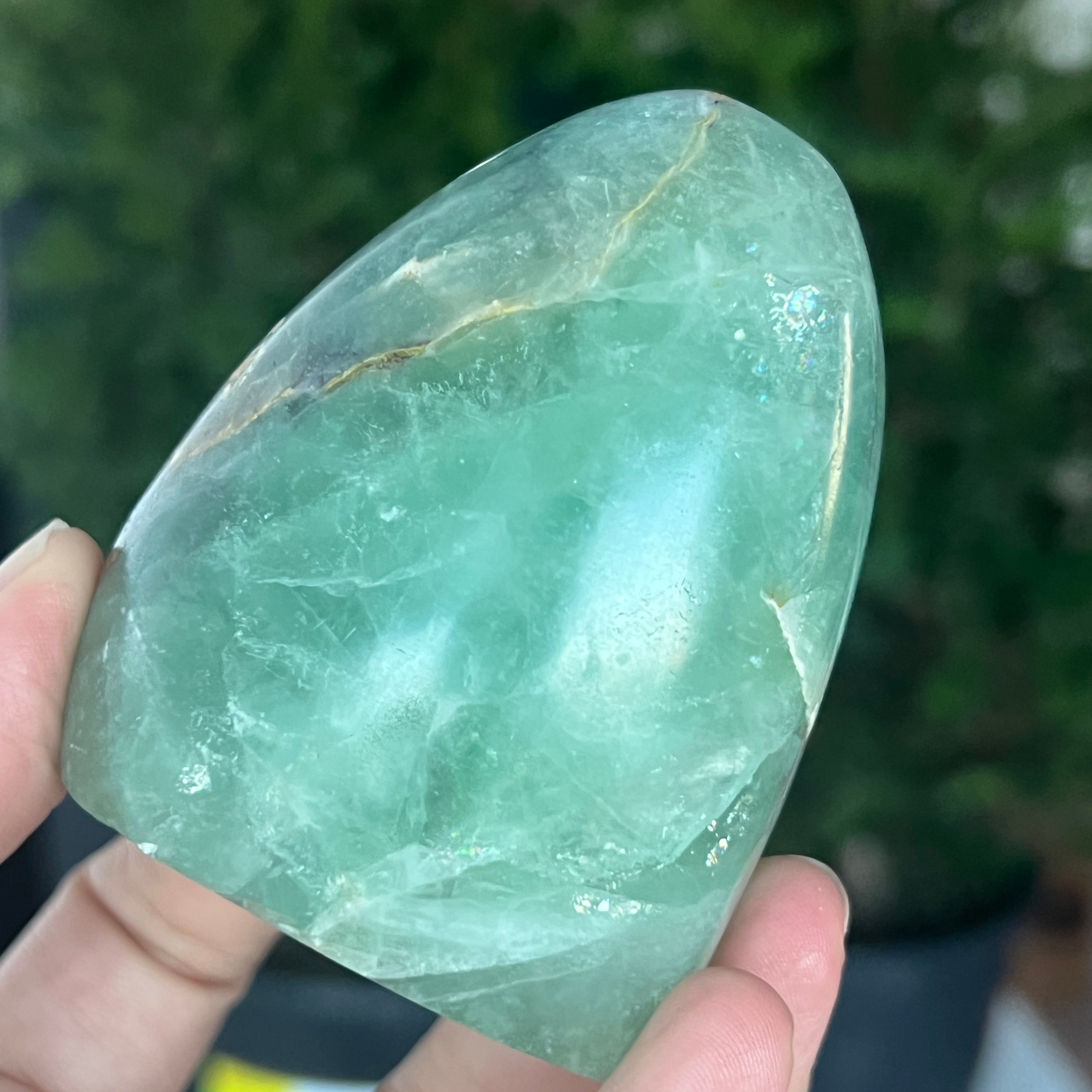 Зеленият флуорит балансира сърдечната чакра и спомага за подобряване на междуличностните отношения. Свързва ума и сърцето, за да постигне баланс между мисли и емоции.
