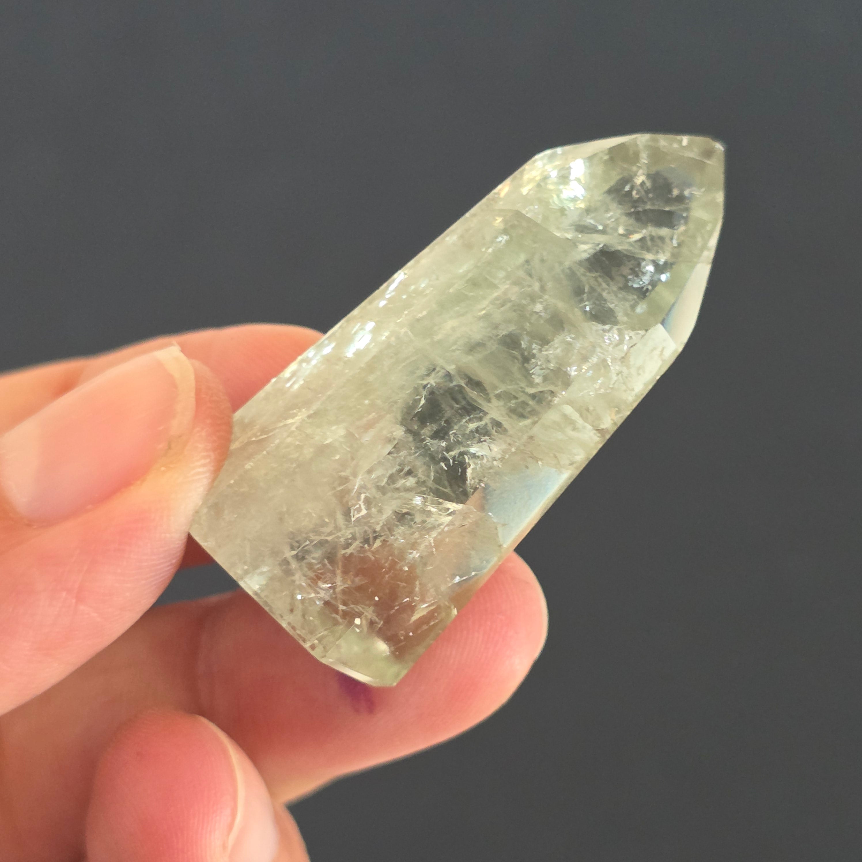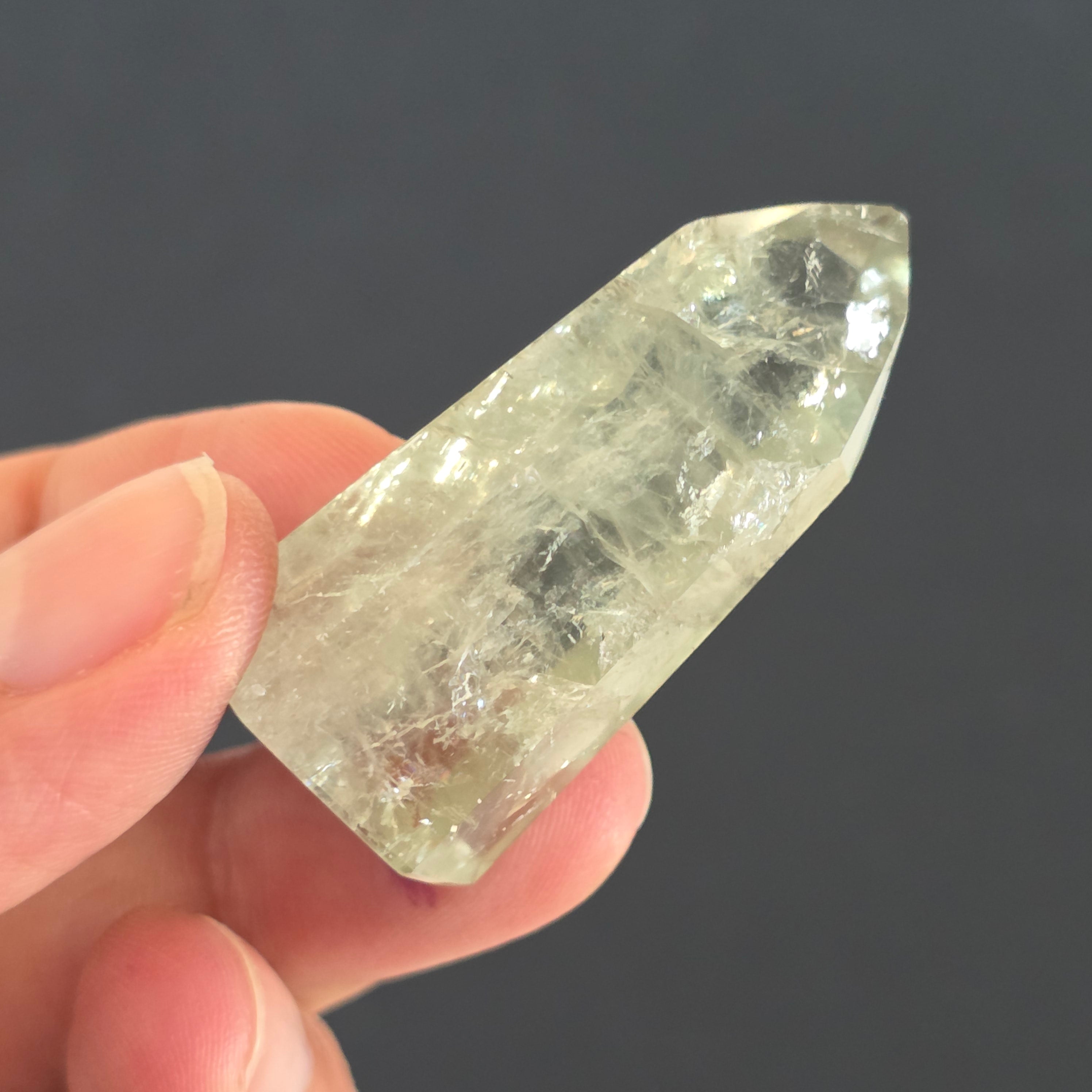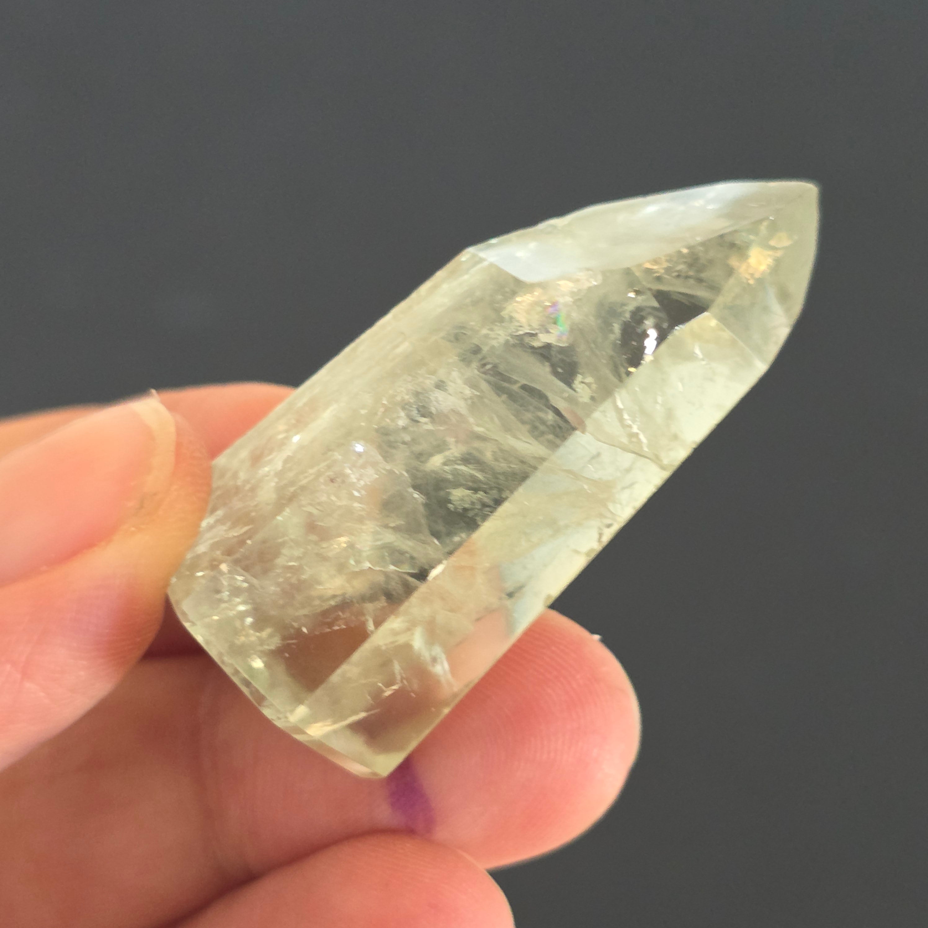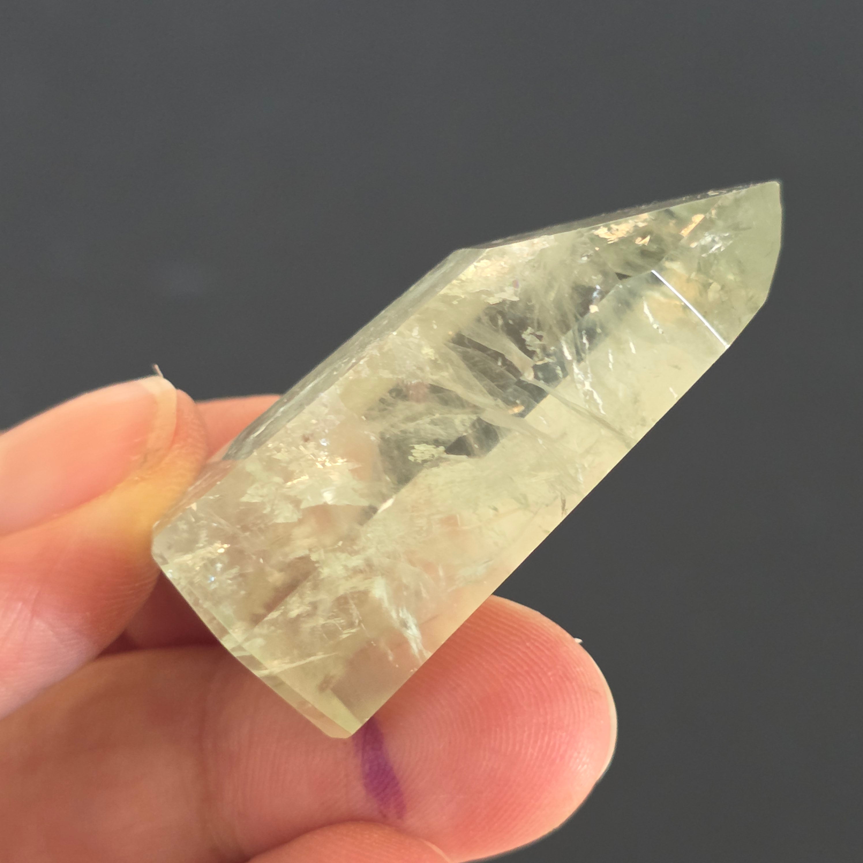 Обелискът, направен от аметистово зелено Това е рядък и изискан вид, носещ вибрация на баланс и обновление. Спокойствието и чистата му енергия приканва към самоанализ и яснота, а прозрачните ѝ нюанси напомнят за спокойствието на гора при изгрев. Уникално произведение, идеално за колекционери и любители на редки кристали.