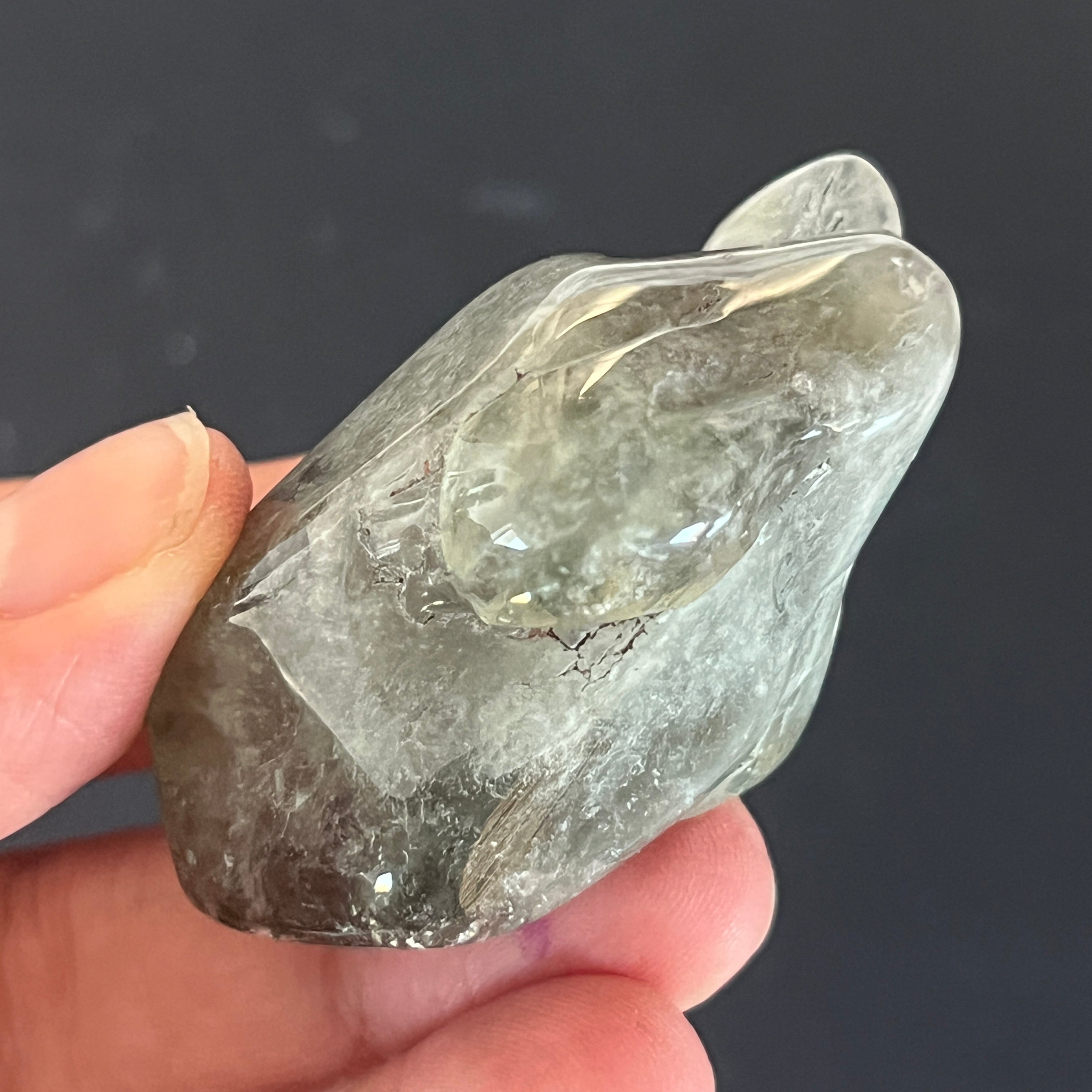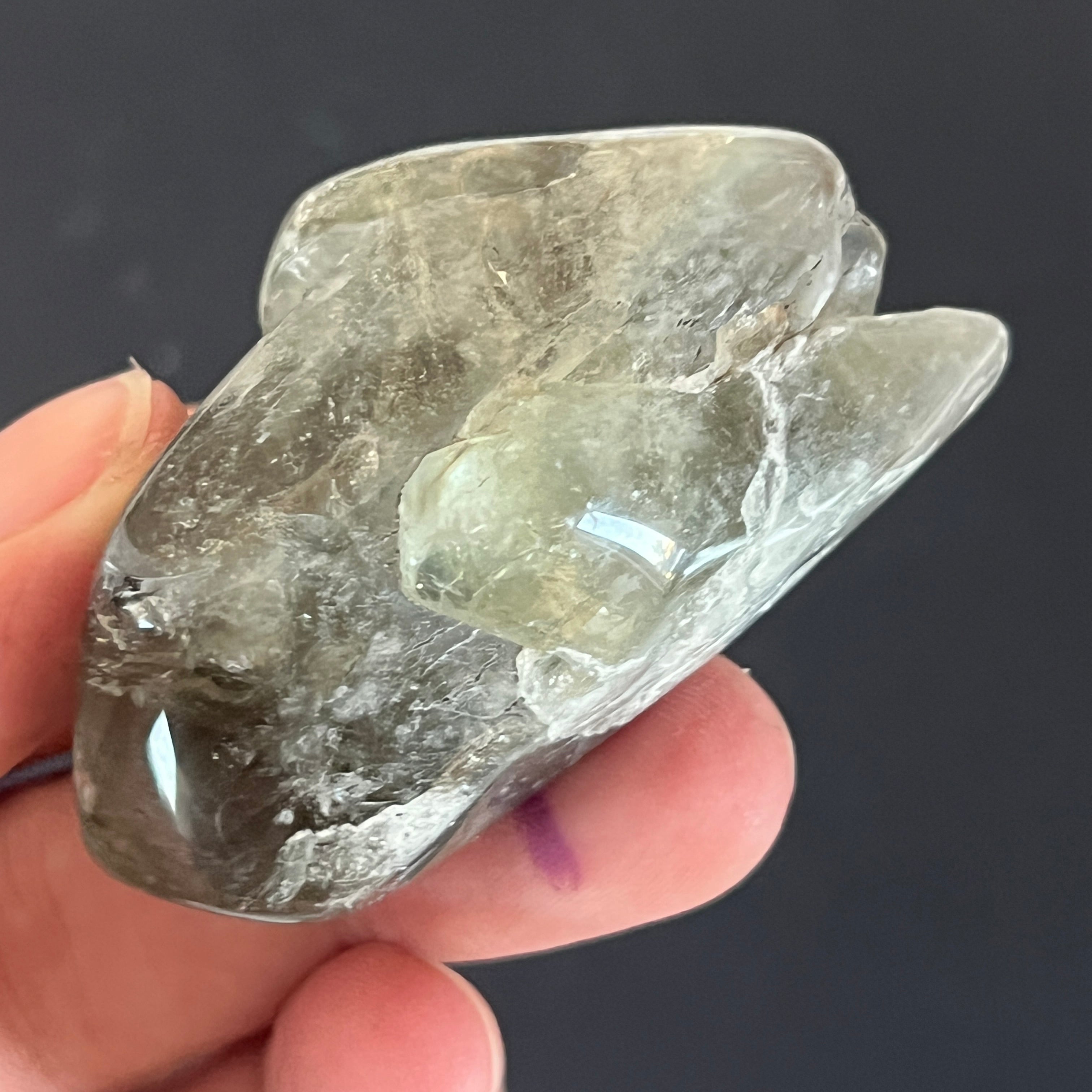 Зелен аметист това е рядък и изискан външен вид, носещ вибрация на баланс и обновяване. Неговата спокойна и чиста енергия приканва към самонаблюдение и яснота, а полупрозрачните нюанси напомнят тишината на гора при изгрев слънце. Уникат, идеален за колекционери и любители на редки кристали.