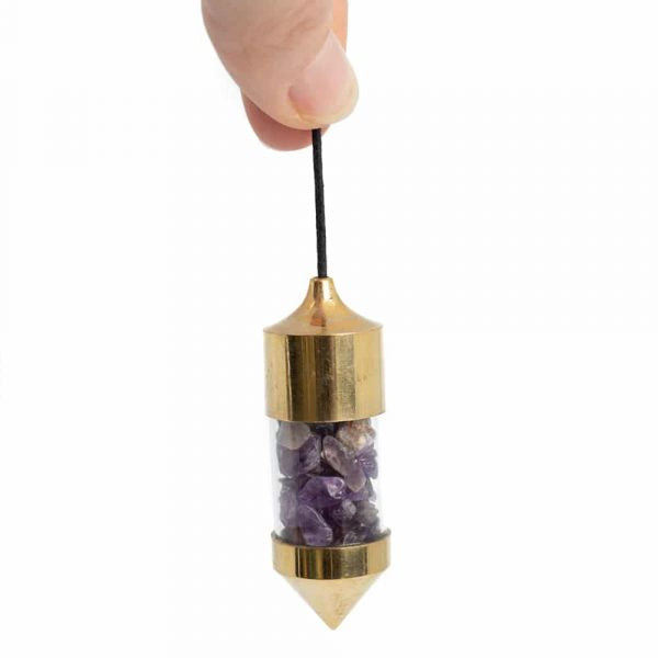 Метален махало с аметистови чипсове, размер: 5 * 1,8 см