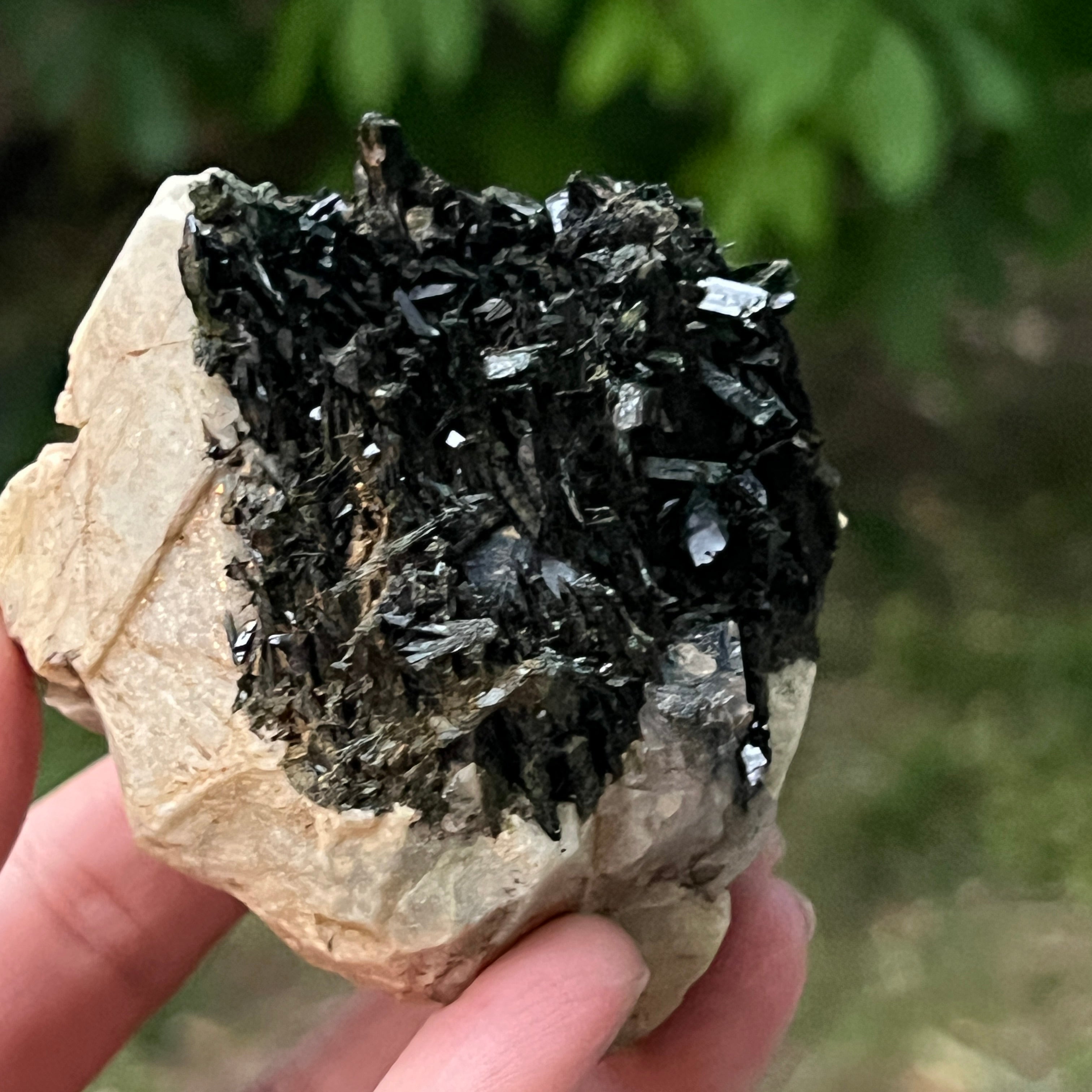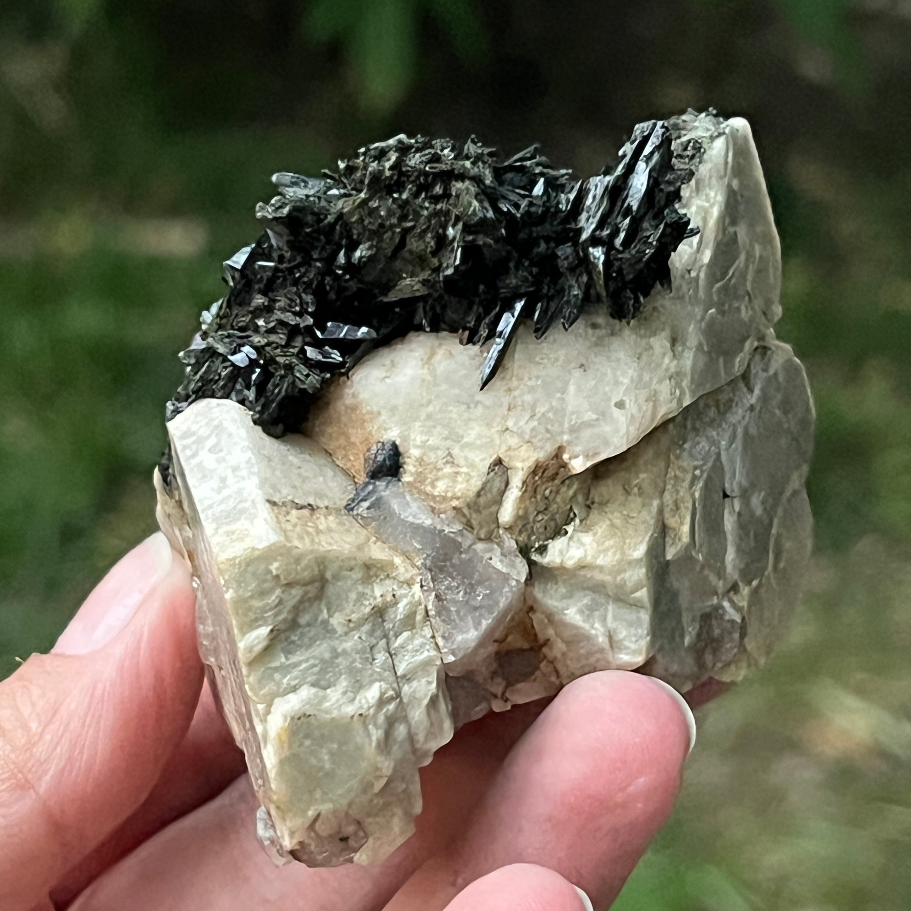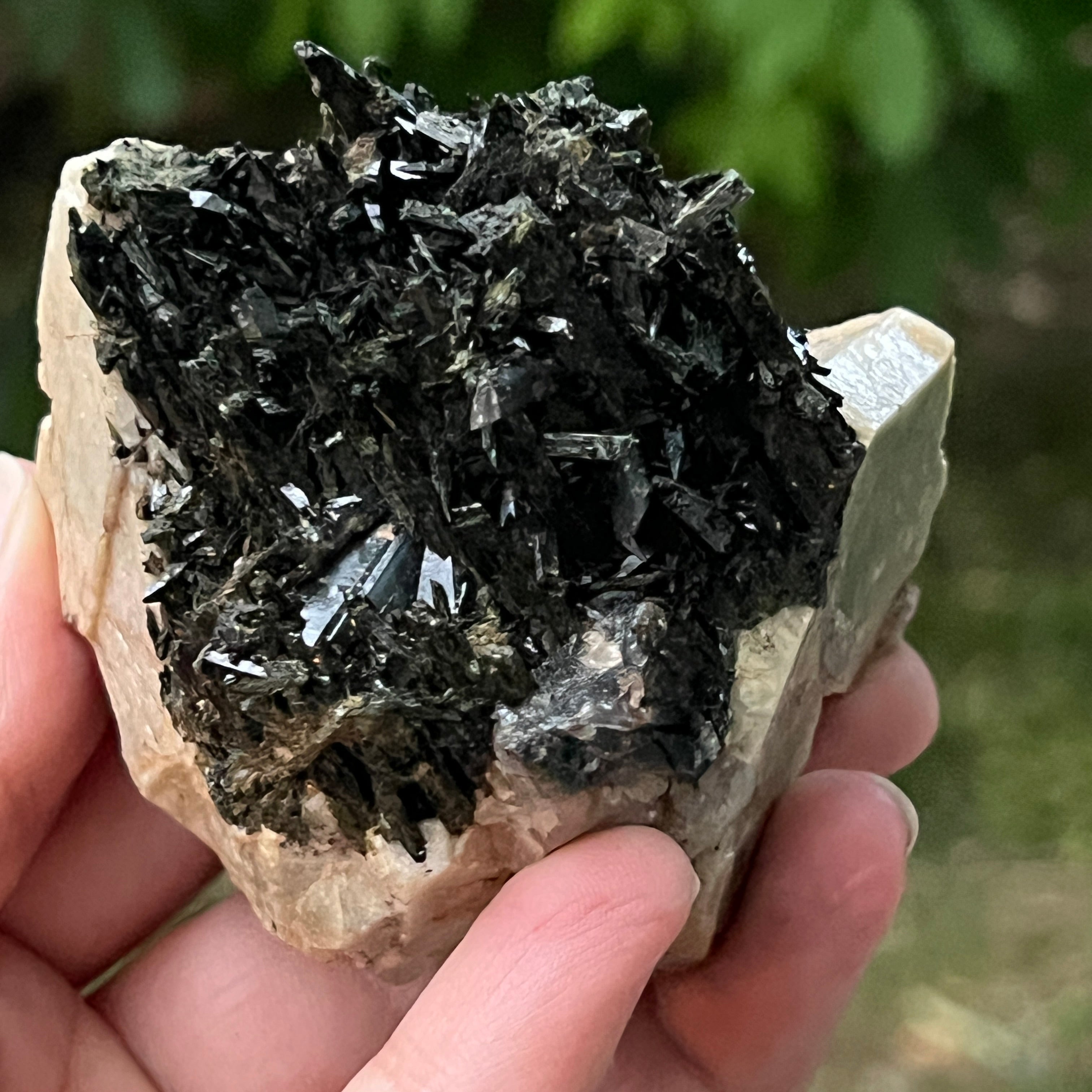 Ревюта – Зомба опушен/черен кварцов клъстер егирин m23