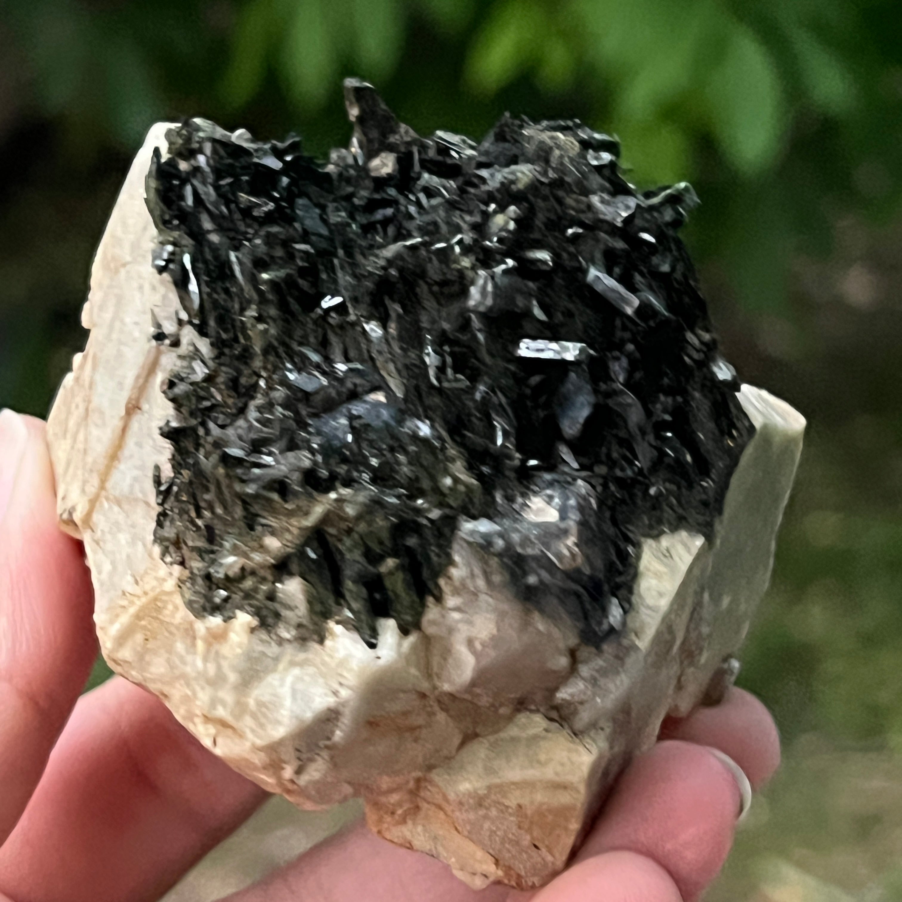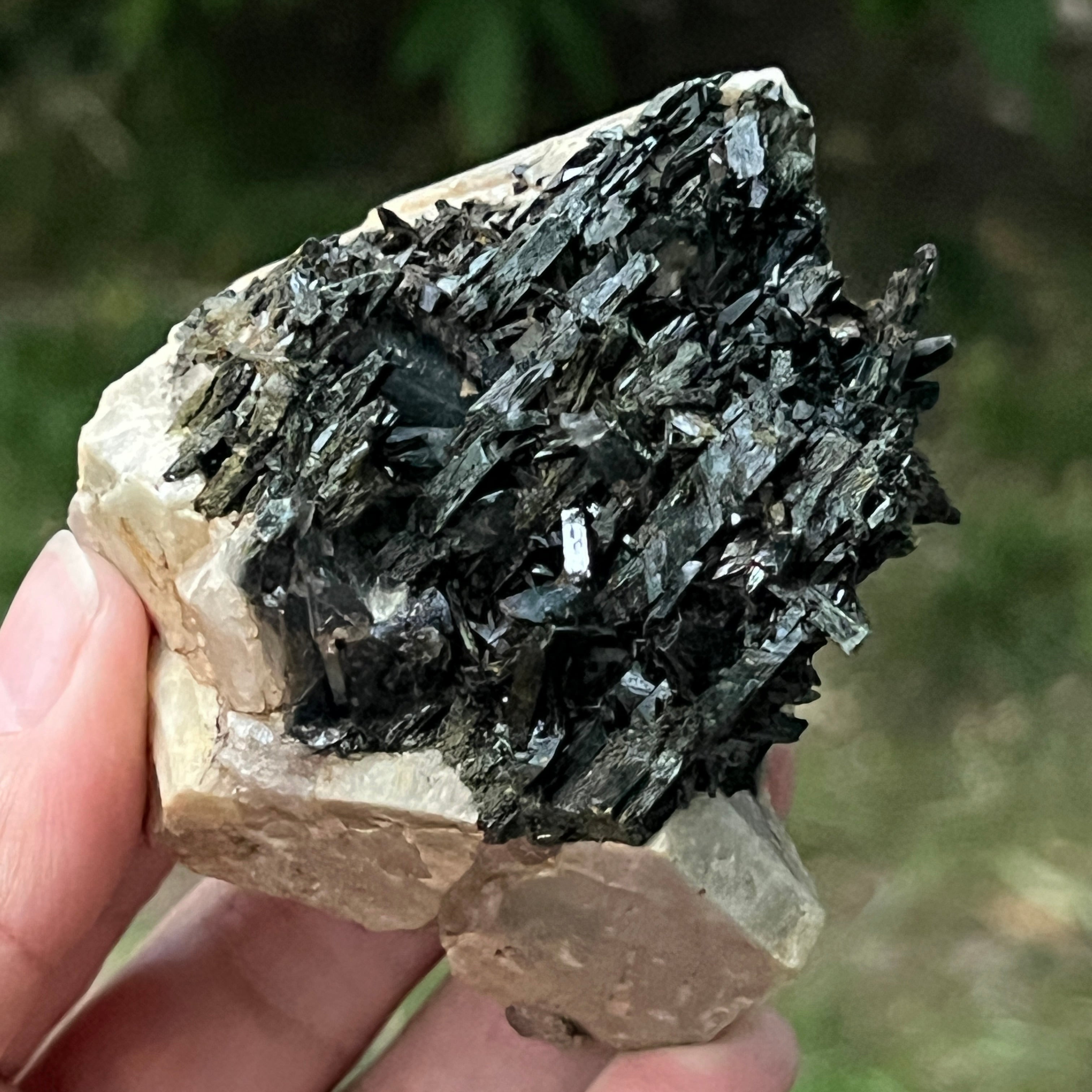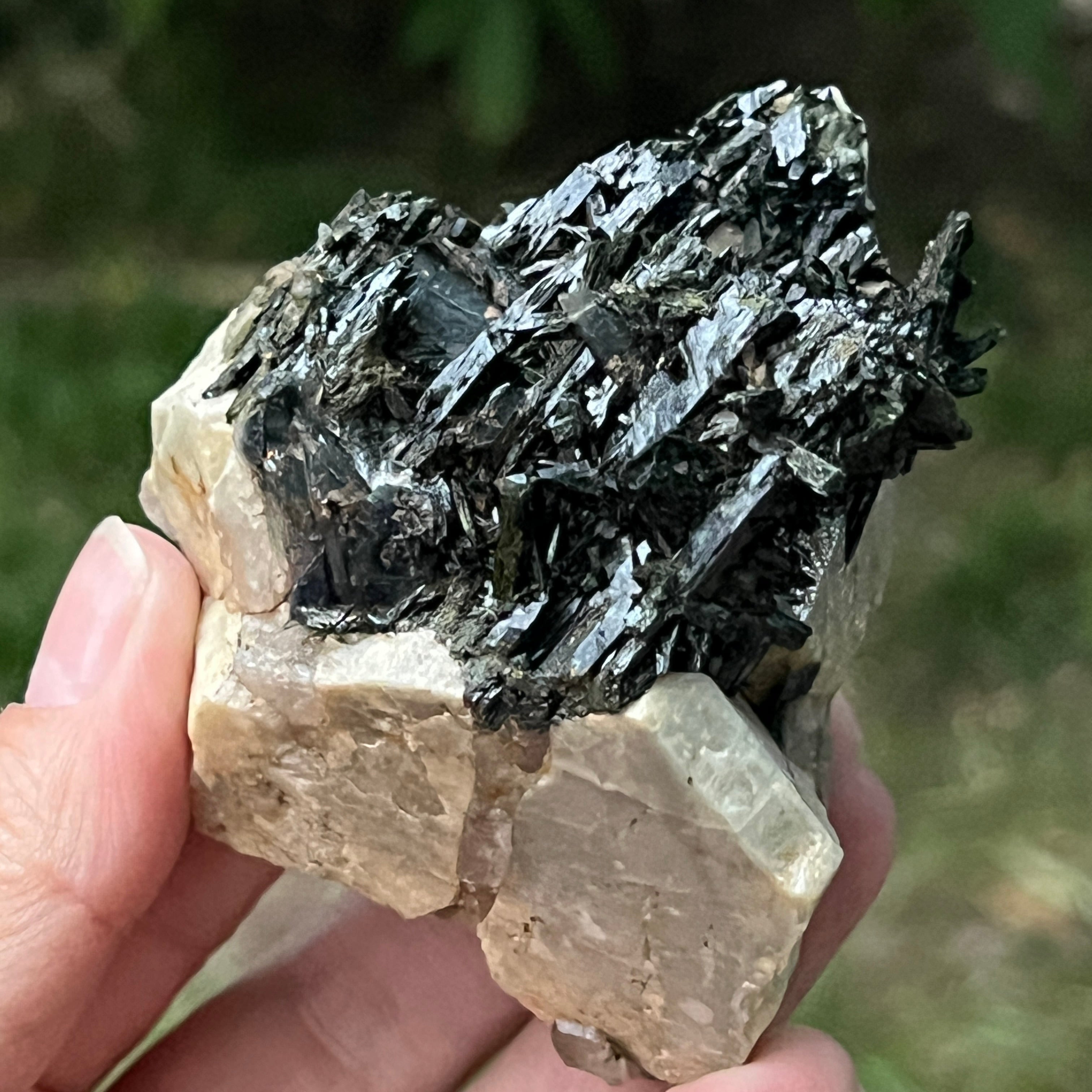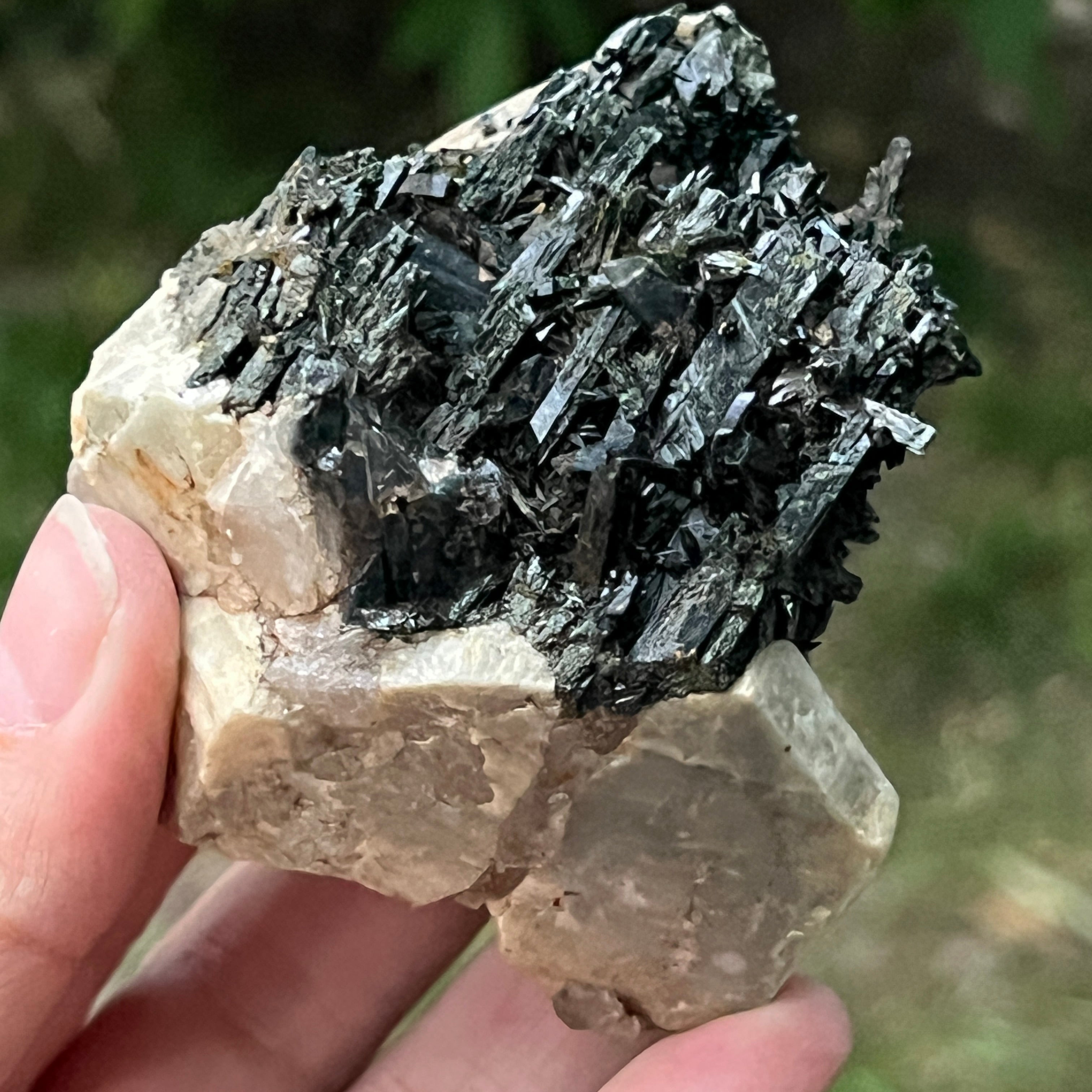 Ревюта – Зомба опушен/черен кварцов клъстер егирин m23