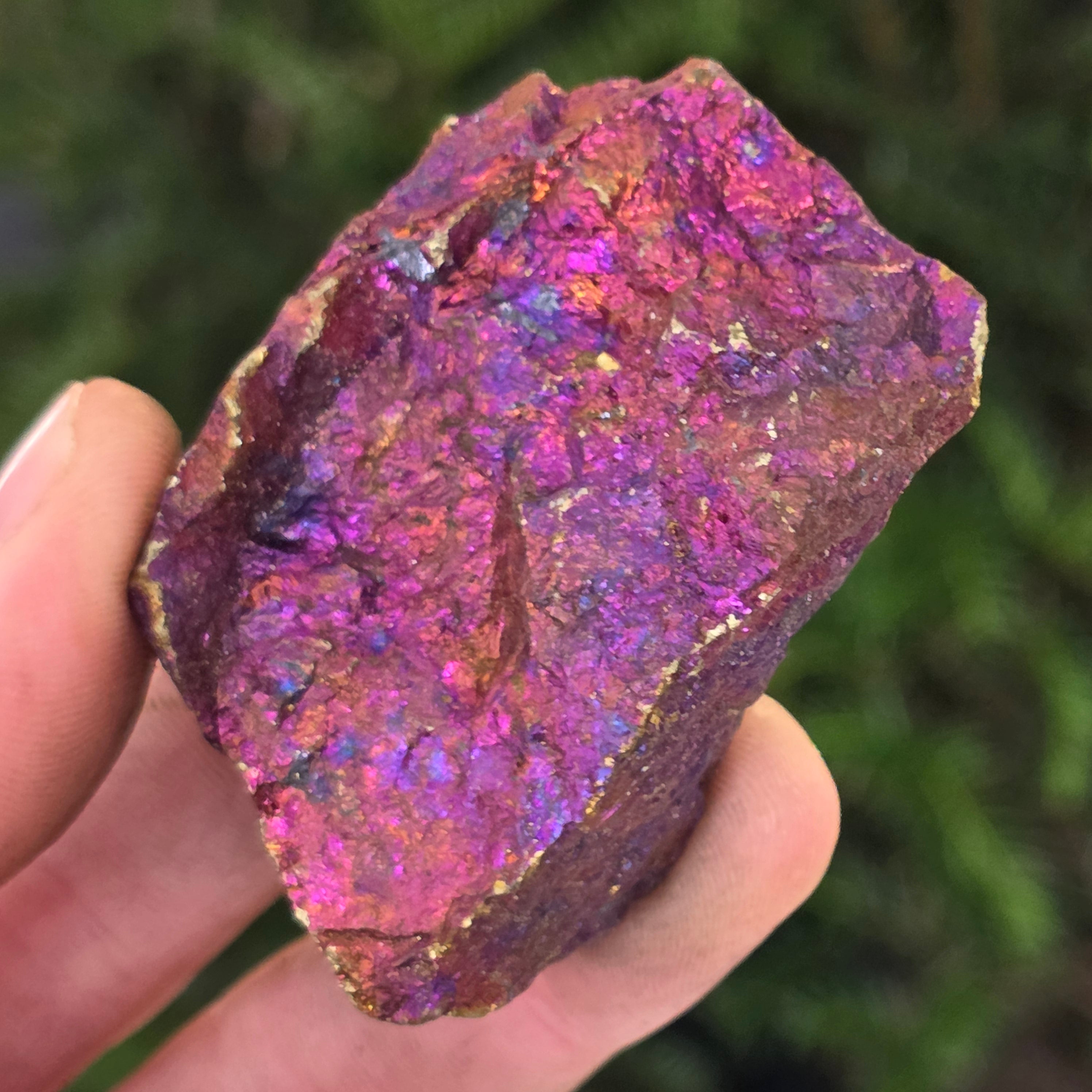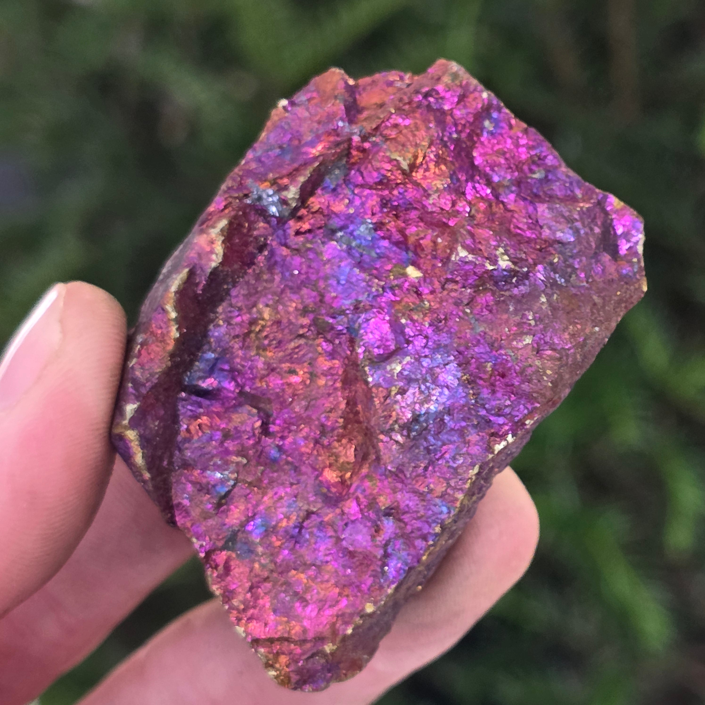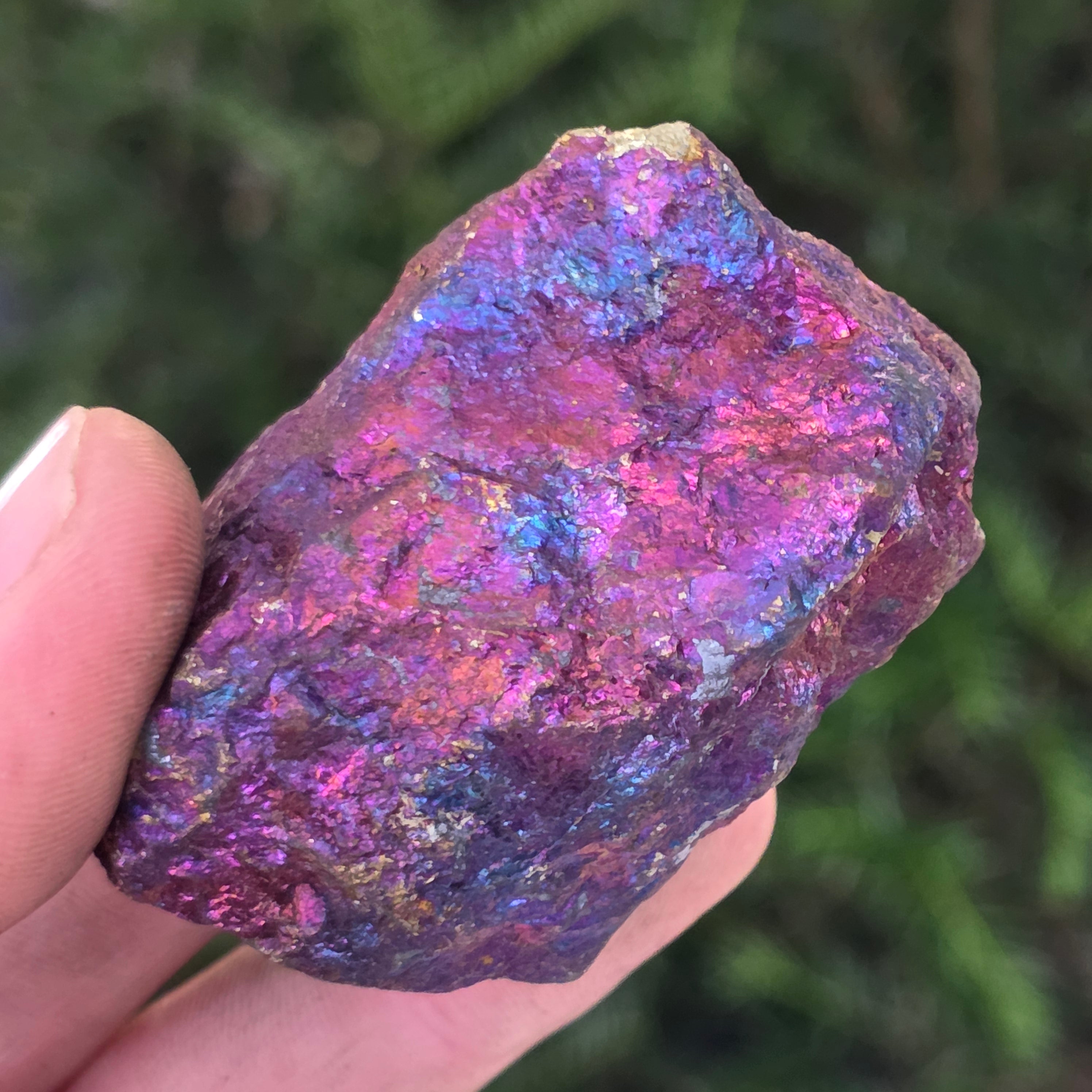 Синята и лилавата калкопирит са свързани с духовното израстване, интуицията и връзката с висши енергии. Смята се, че помагат за успокояване на ума и стимулиране на креативността. Нейните иризиращи оттенъци символично са свързани с баланс и хармония.