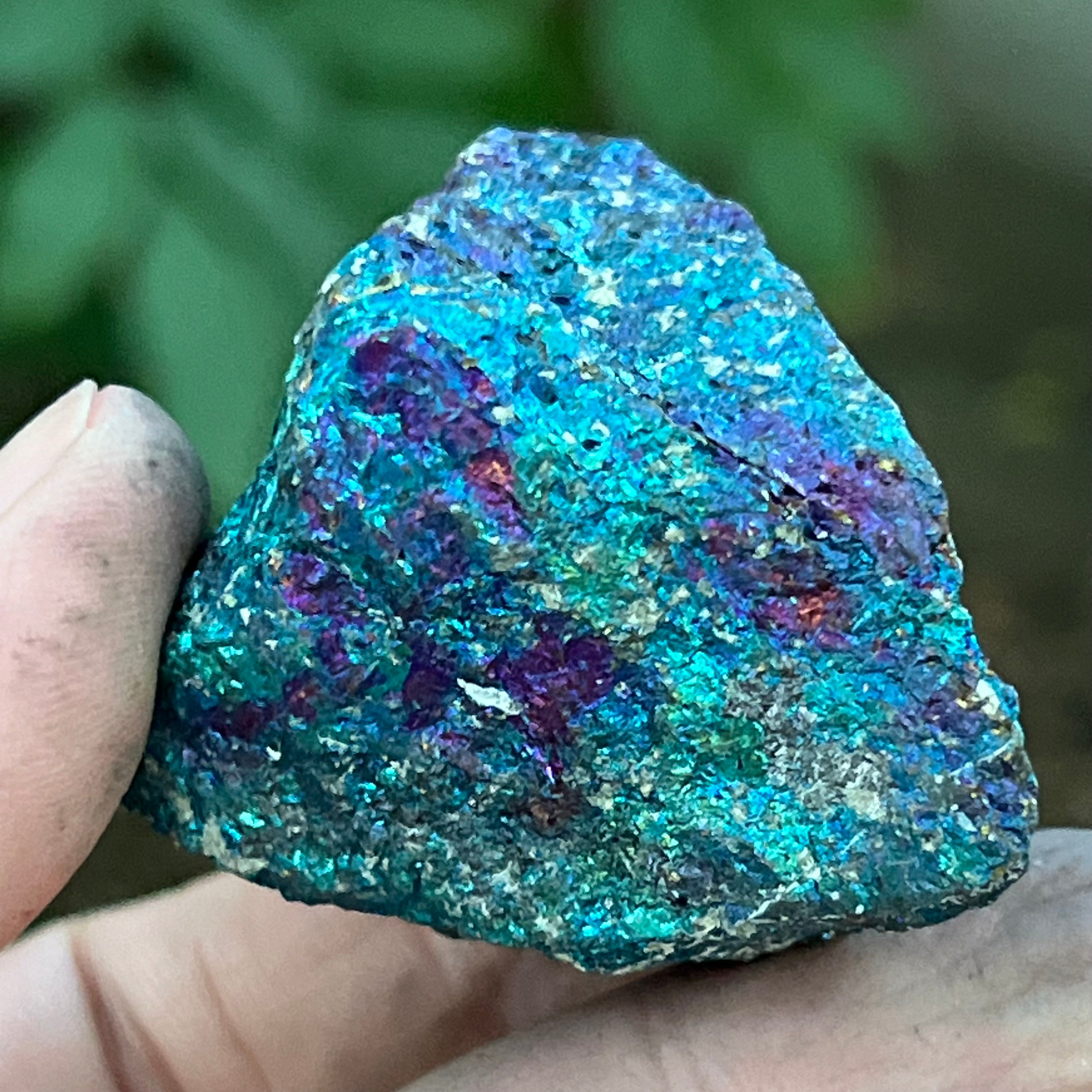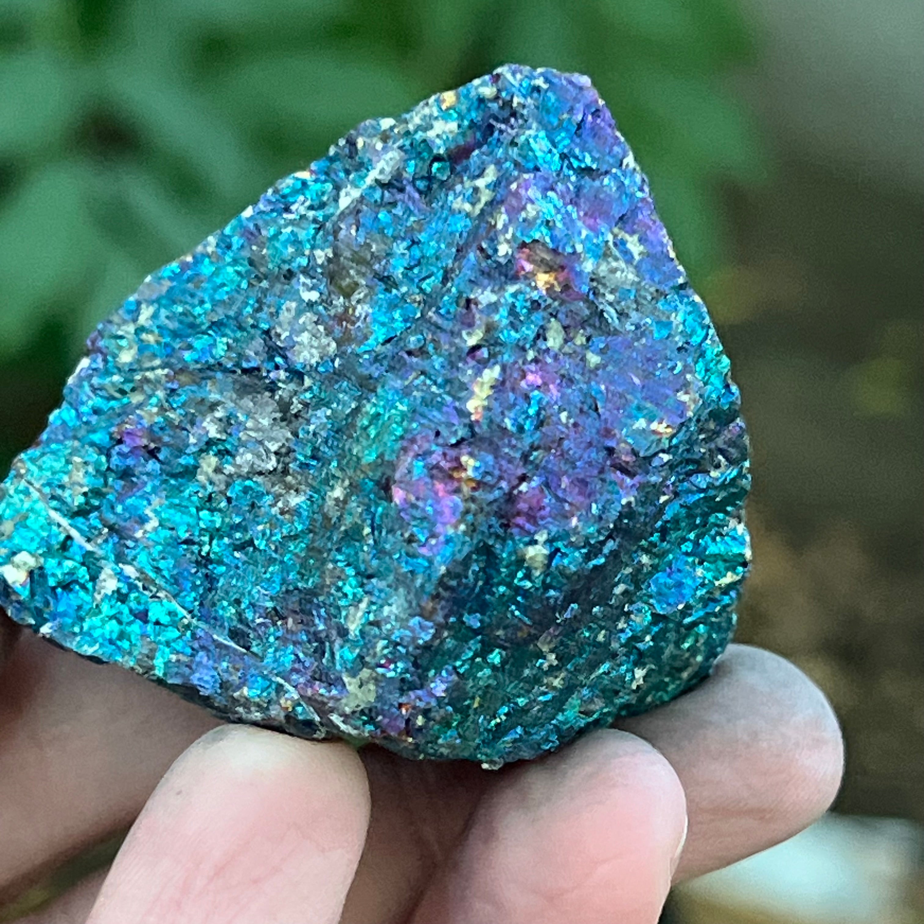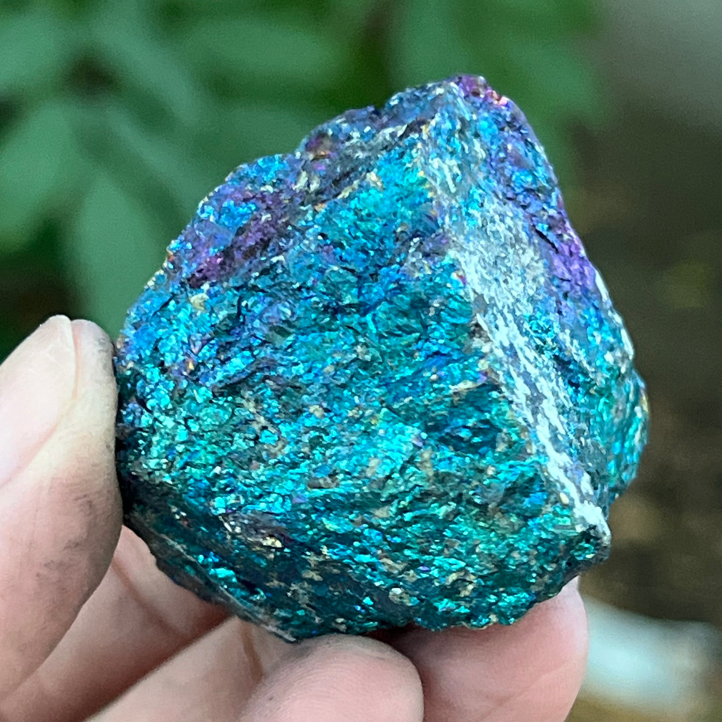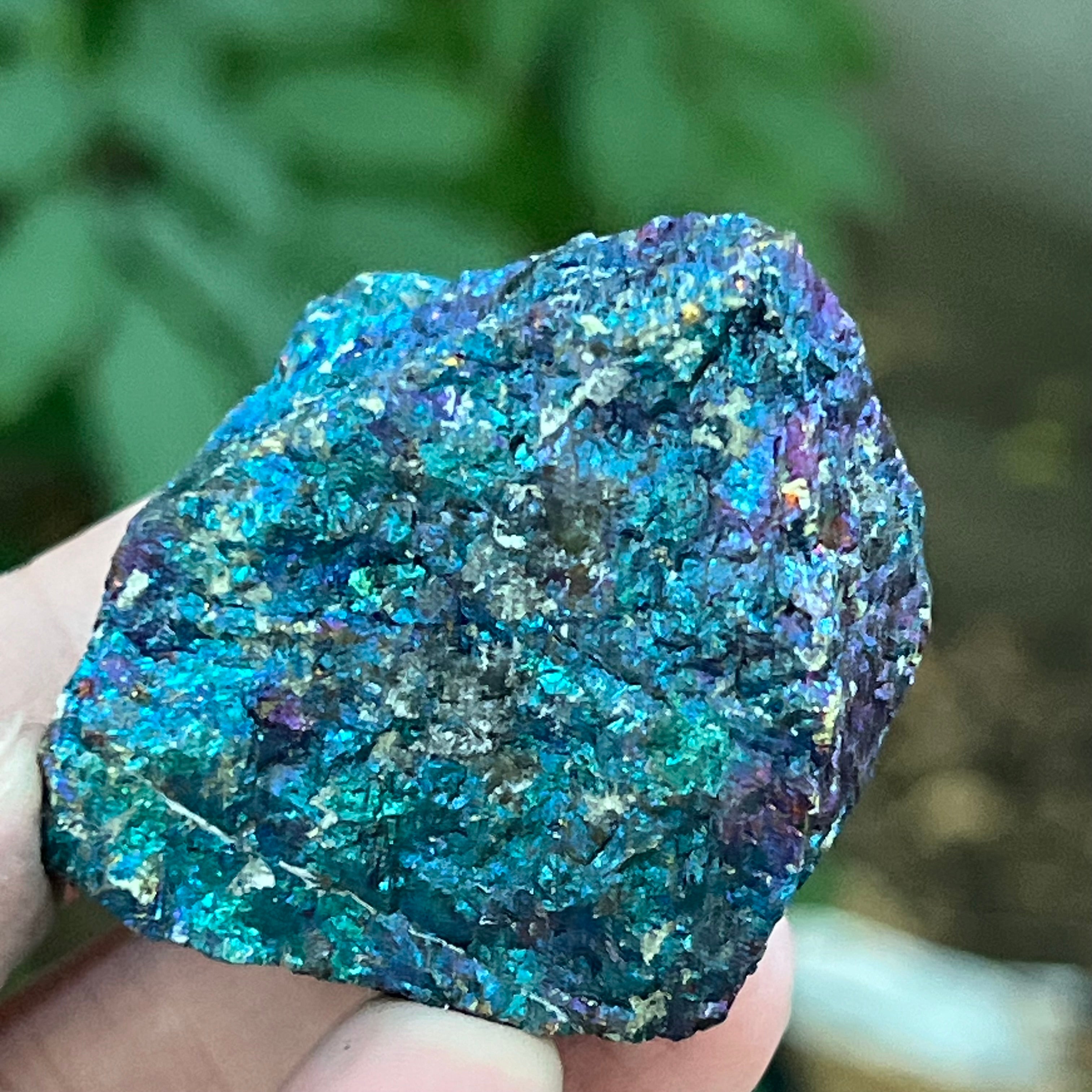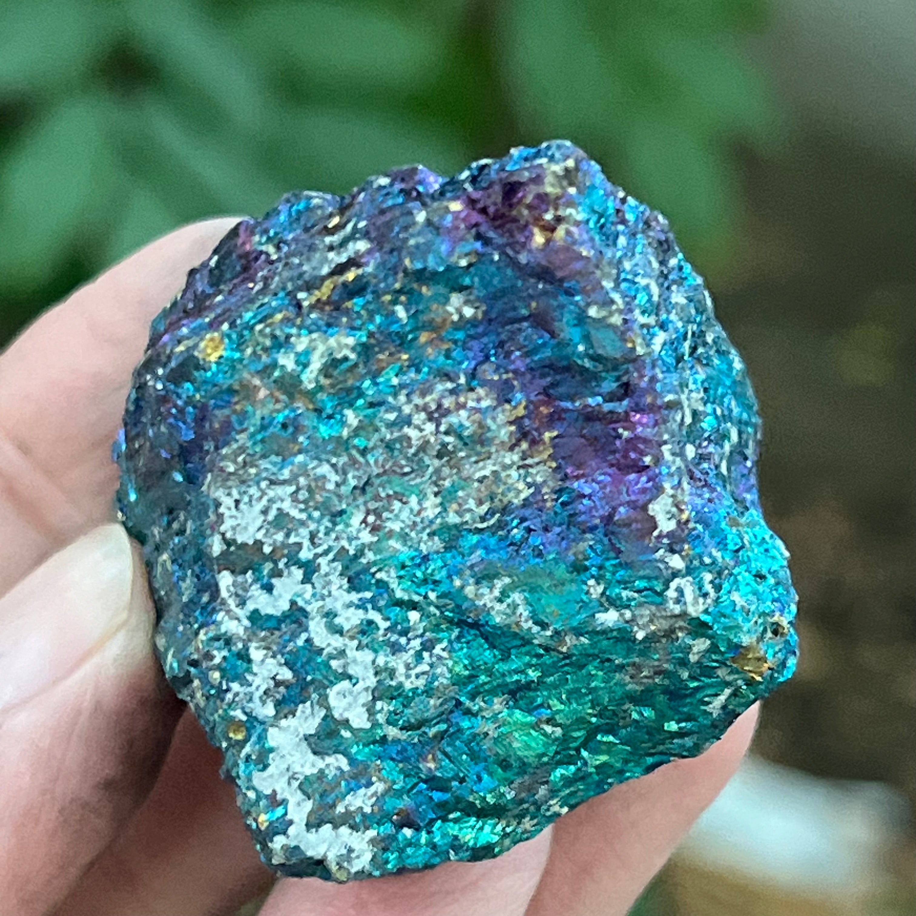 Синята халенита, известна и като иридесцентна халенита, е вид халенита, която проявява блестящи цветове като синьо, лилаво, зелено или други иризиращи нюанси. Тази иризация се дължи на тънък слой окисляване на повърхността на минерала, естествен процес, който се появява, когато халенитът е изложен на въздух и влага за продължителен период.