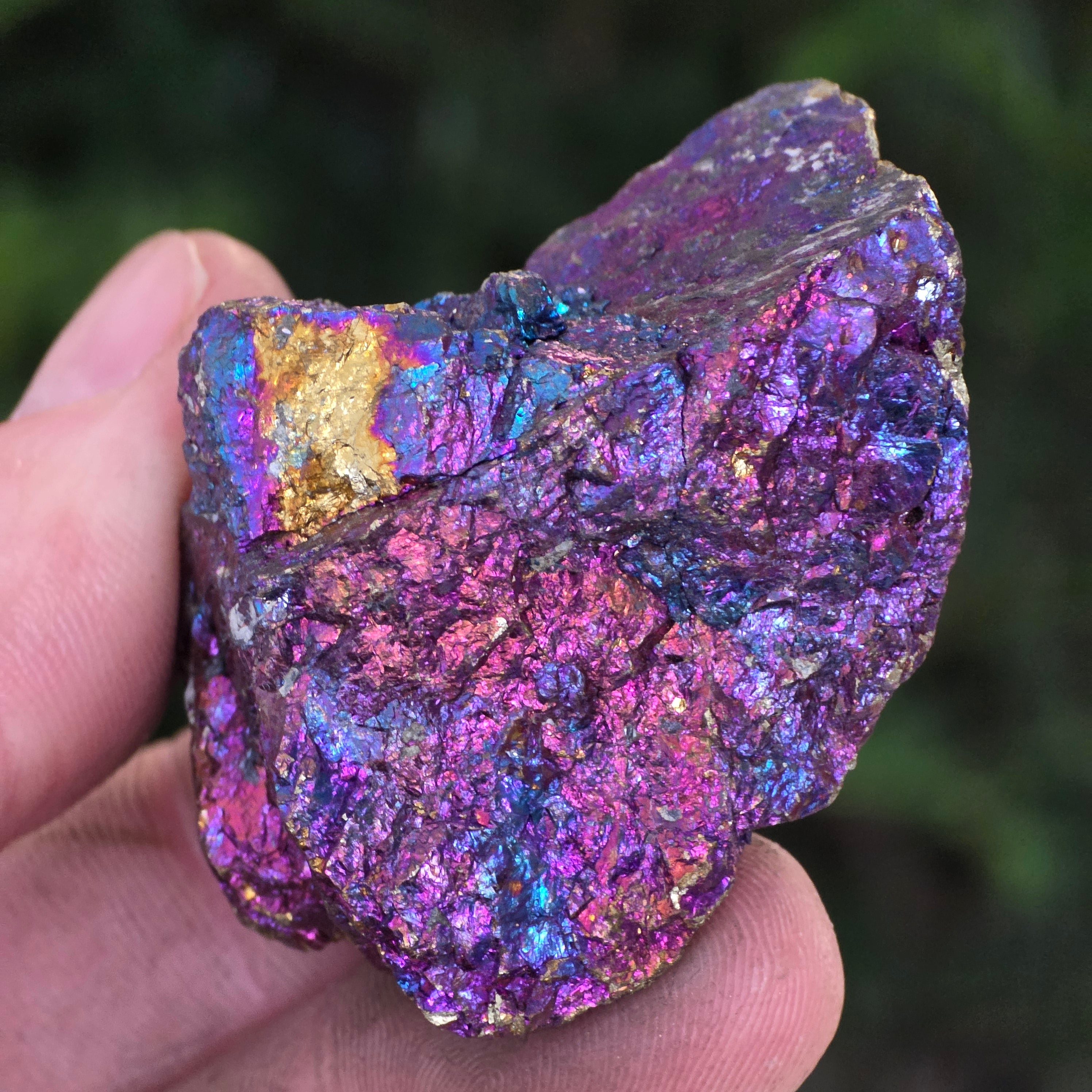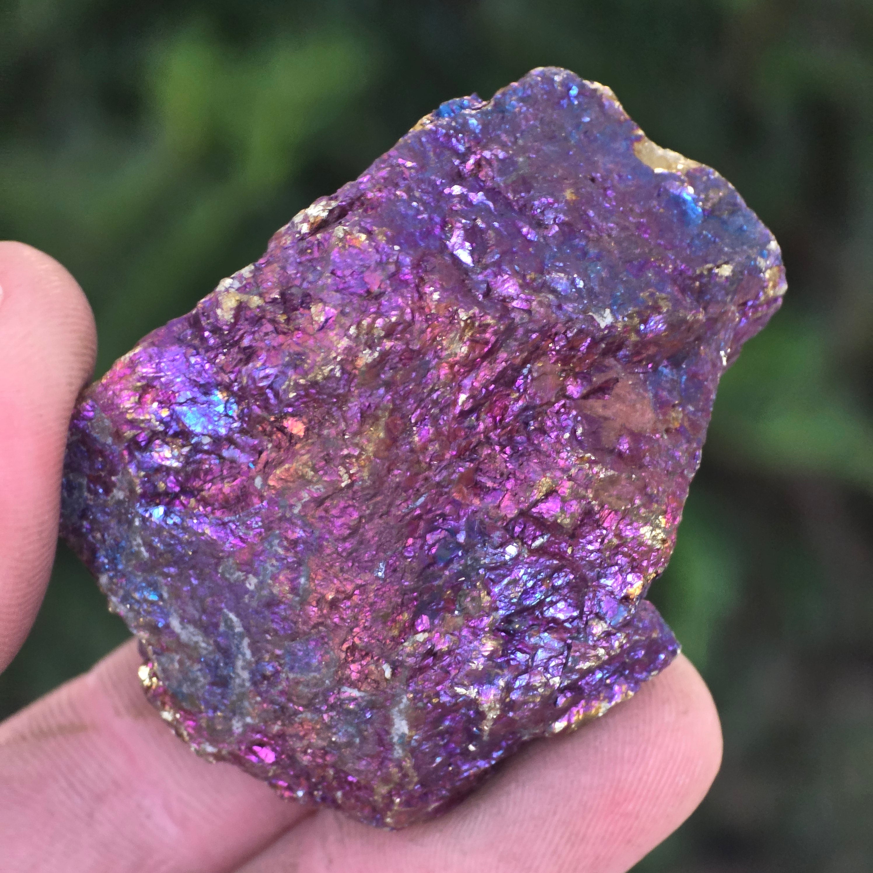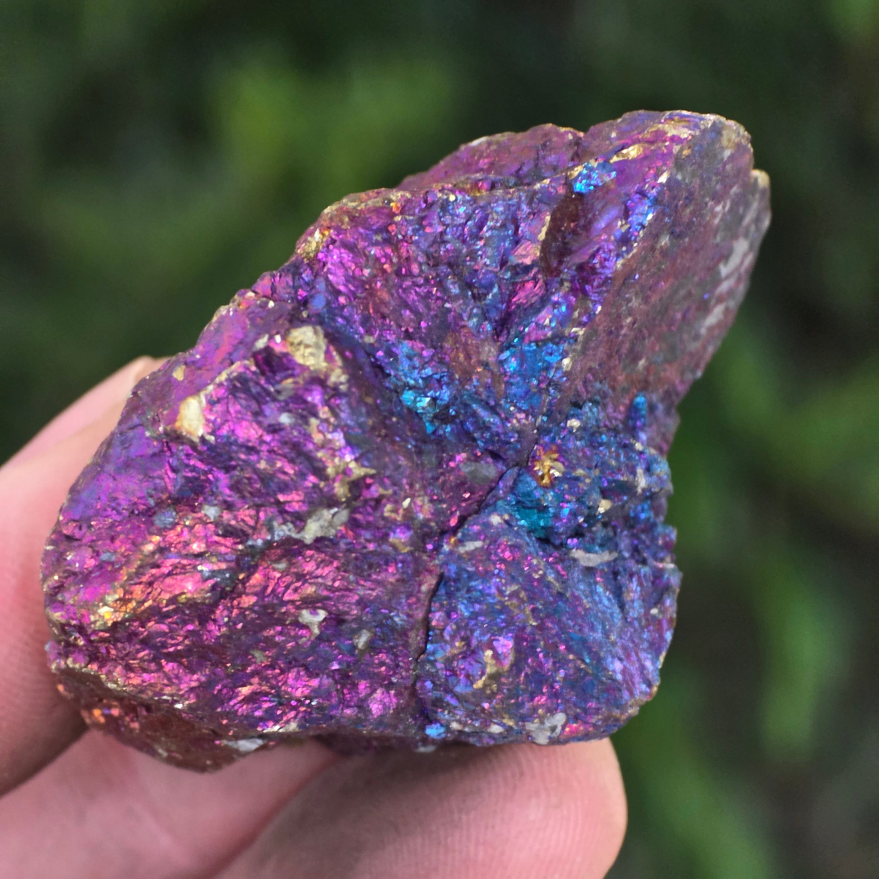 Синята и лилавата халькопирит се свързват с духовното израстване, интуицията и свързването с висши енергии. Смята се, че помагат за успокояване на ума и стимулиране на креативността. Ирисиращите му нюанси символично се свързват с баланс и хармония.