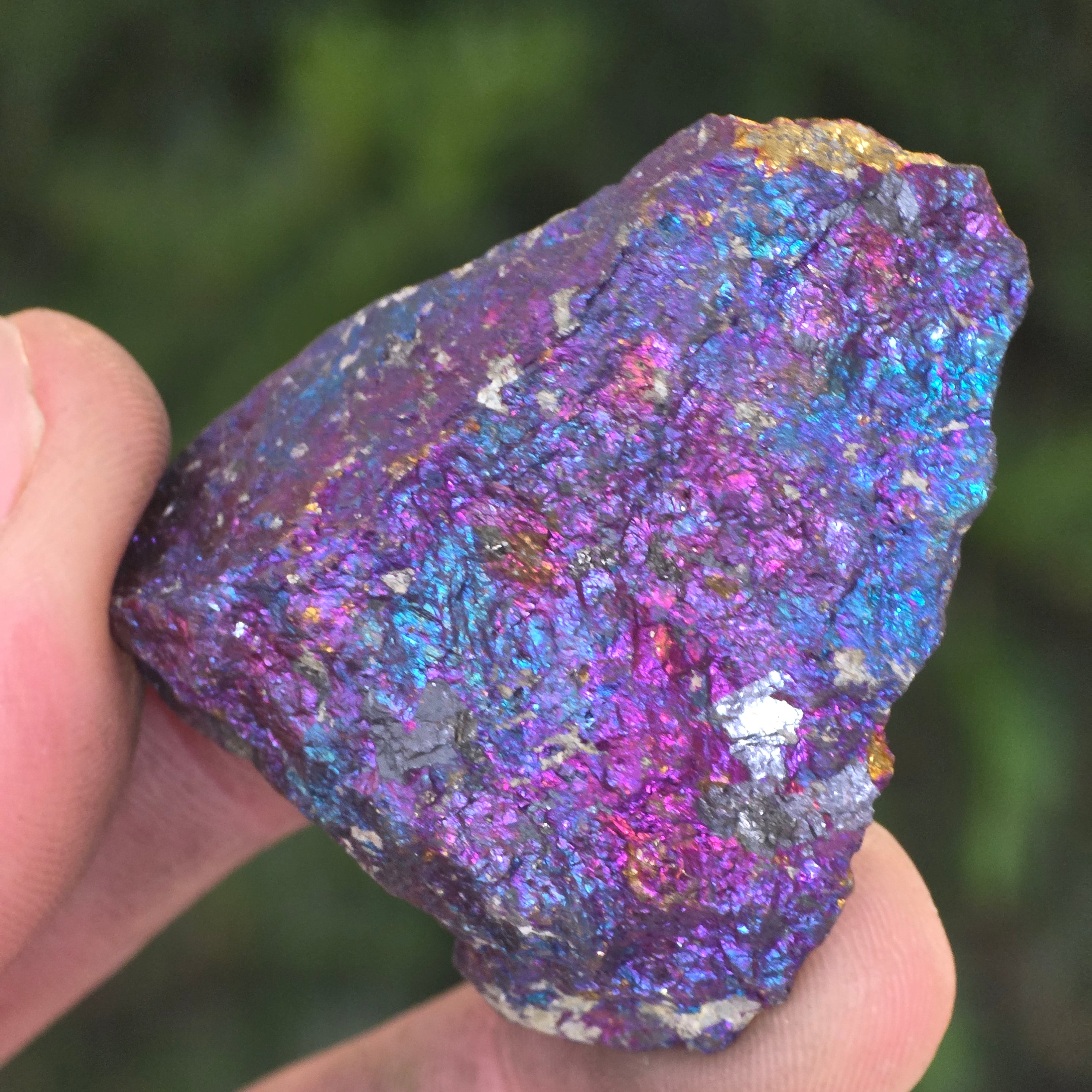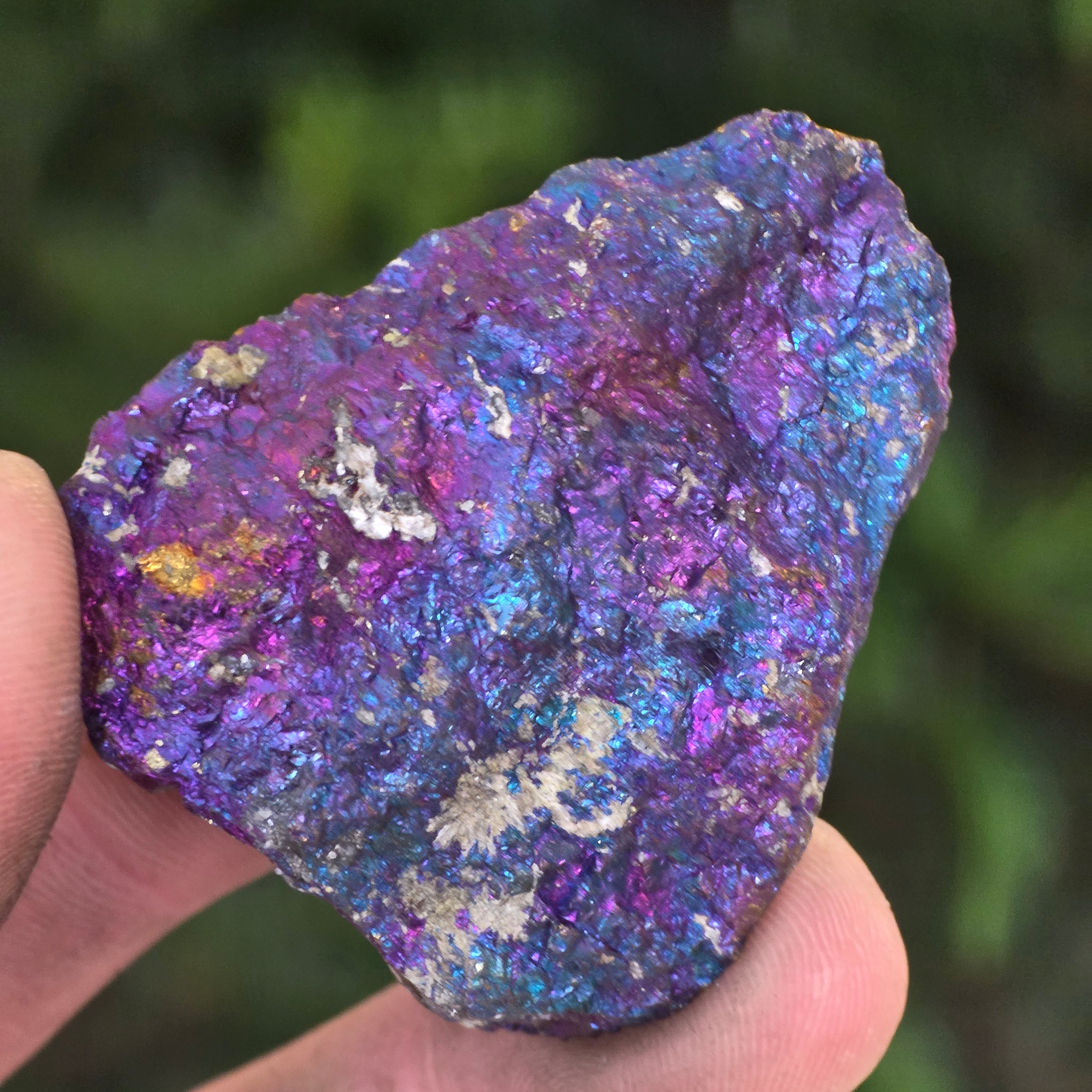Синият и лилавият халкопирит се свързват с духовния растеж, интуицията и връзката с висши енергии. Смята се, че помагат за успокояване на ума и стимулиране на креативността. Неговите ирисцентни нюанси символично се свързват с баланс и хармония.