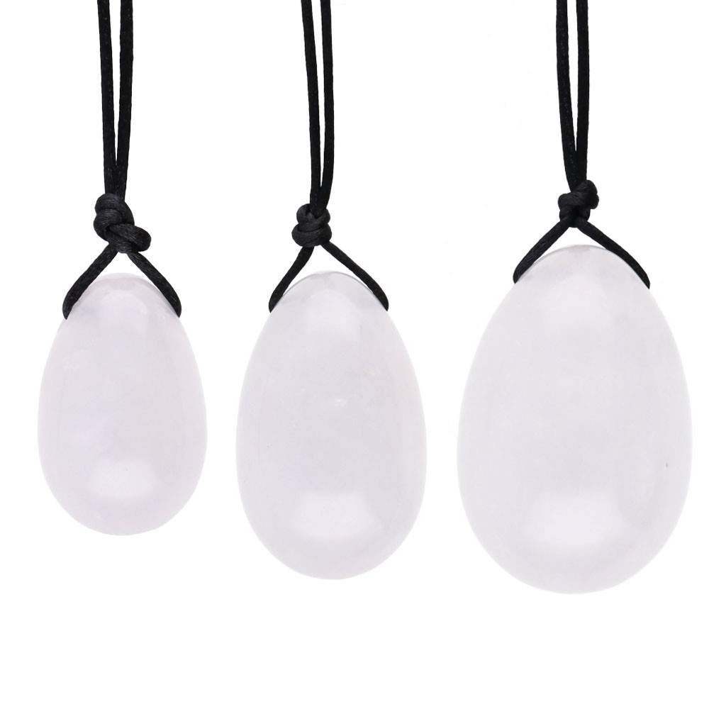 Йони яйца от безцветен кварц (с дупка) - комплект от 3 броя