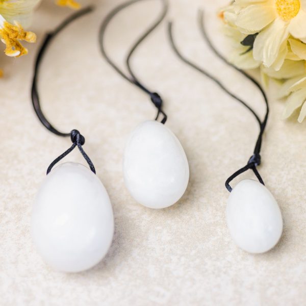 Описание - Йони яйца от бял жад - Комплект от 3 броя, опаковани в подаръчна кутия от естествени материали