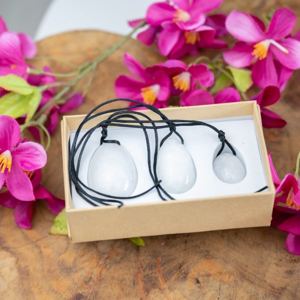 Яйца Йони от бял жад - Комплект от 3 броя, опаковани в подаръчна кутия от натурален материал