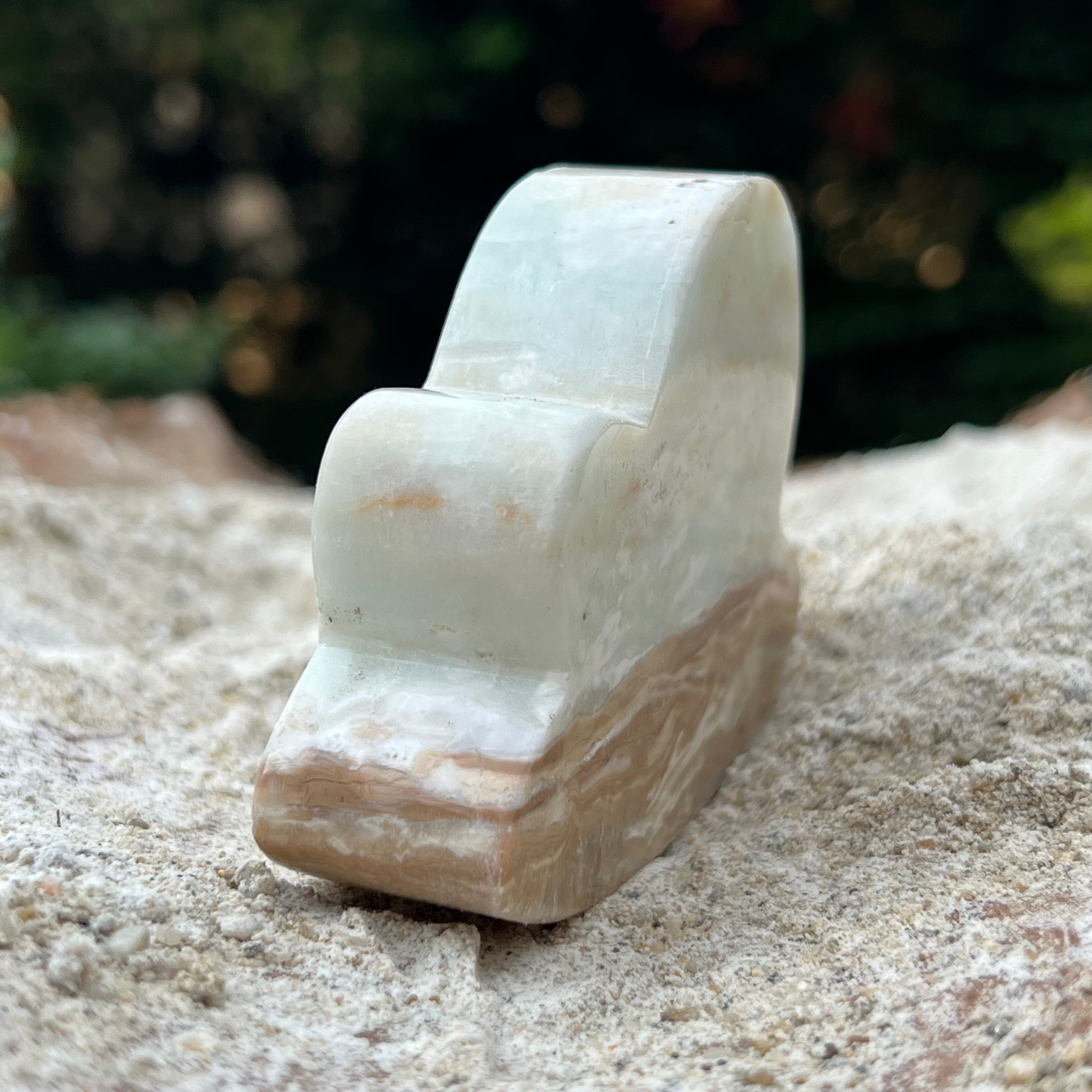 Карибски син калцит е рядък полускъпоценен камък, известен със своя интензивен син цвят и шарка на ивици и пръстени. Този камък е известен още като пакистански син калцит. Карибският син калцит се счита за камък на вътрешния мир и умствената яснота. Смята се, че този камък помага за подобряване на комуникацията и личното изразяване, като насърчава яснотата и състраданието в отношенията с другите. Карибският син калцит също се смята за защитен камък срещу дисонансни енергии.