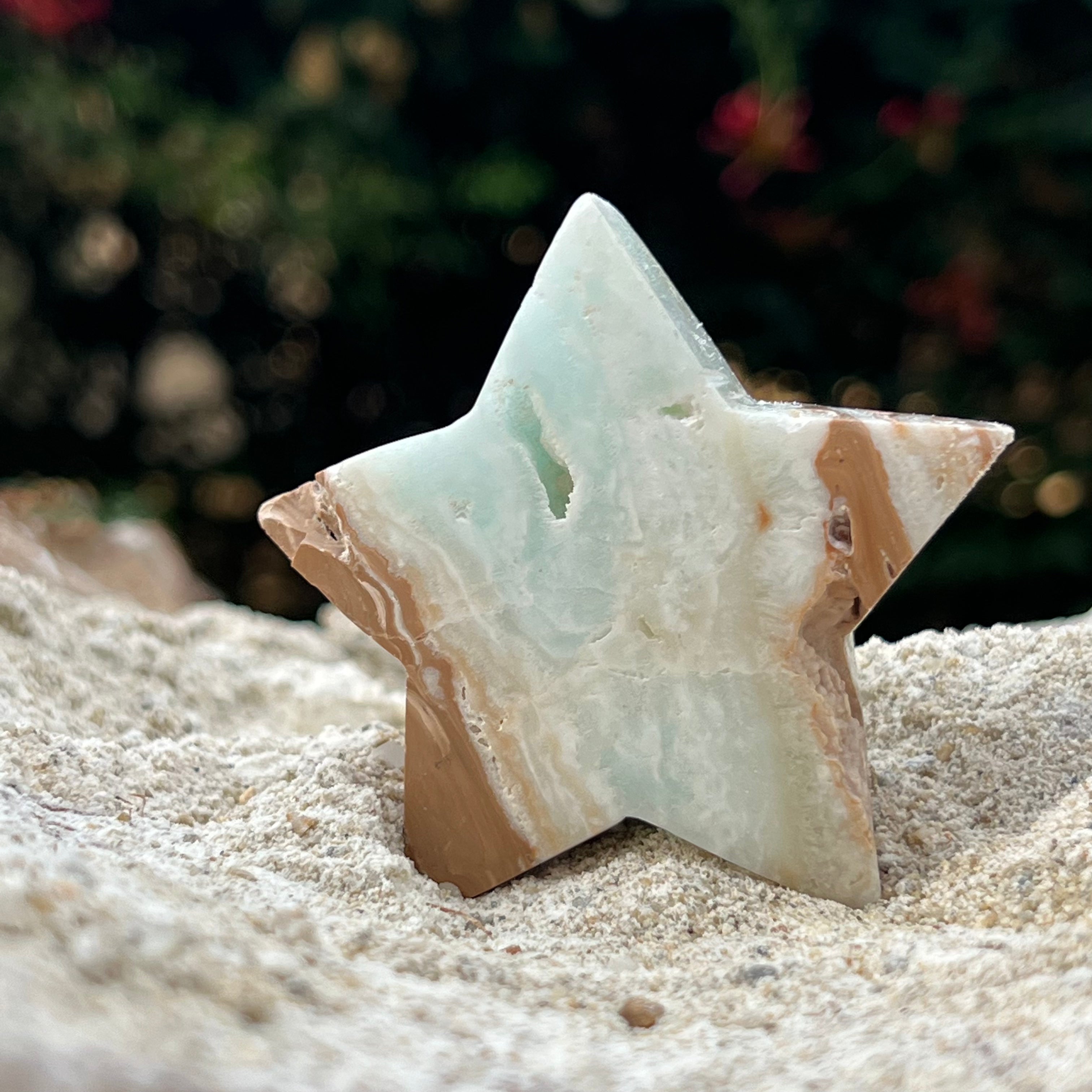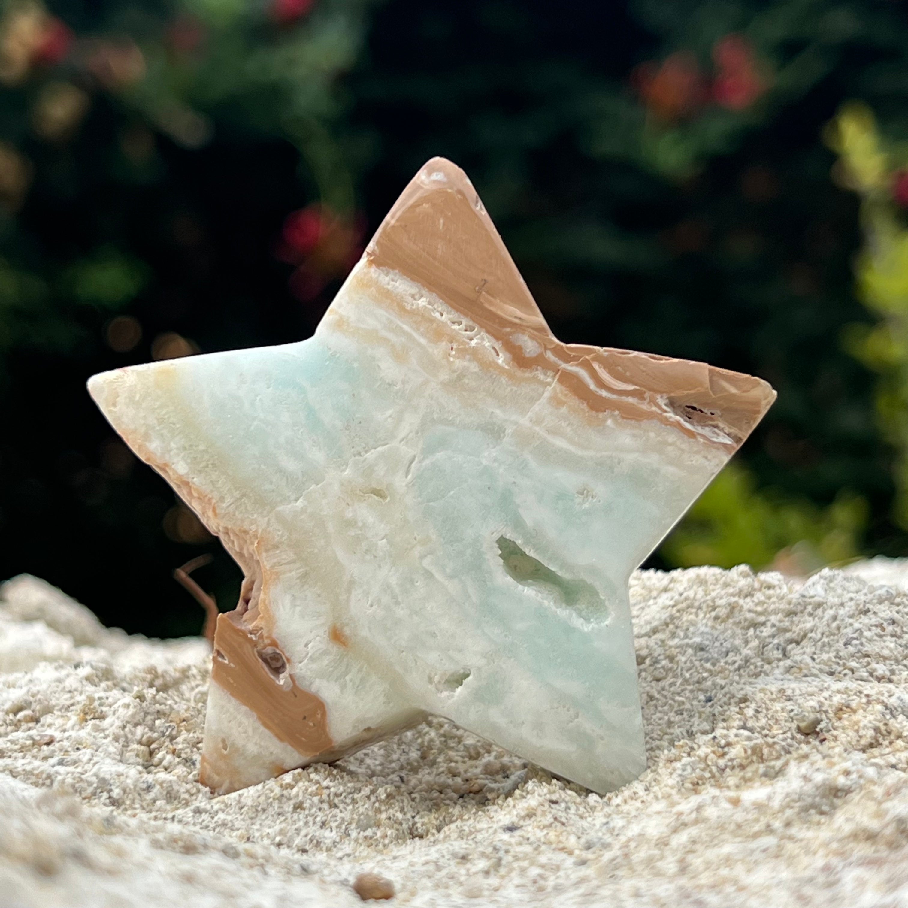 Карибският син калцит е рядък полускъпоценен камък, известен със своя интензивно син цвят и шарките от ивици и кръгове. Този камък е известен и като пакистански син калцит. Карибският син калцит се смята за камък на вътрешния мир и умствената яснота. Смята се, че този камък помага за подобряване на комуникацията и самостоятелното изразяване, насърчавайки яснота и състрадание в отношенията с другите. Също така се казва, че карибският син калцит е камък за защита срещу дисхармонични енергии.