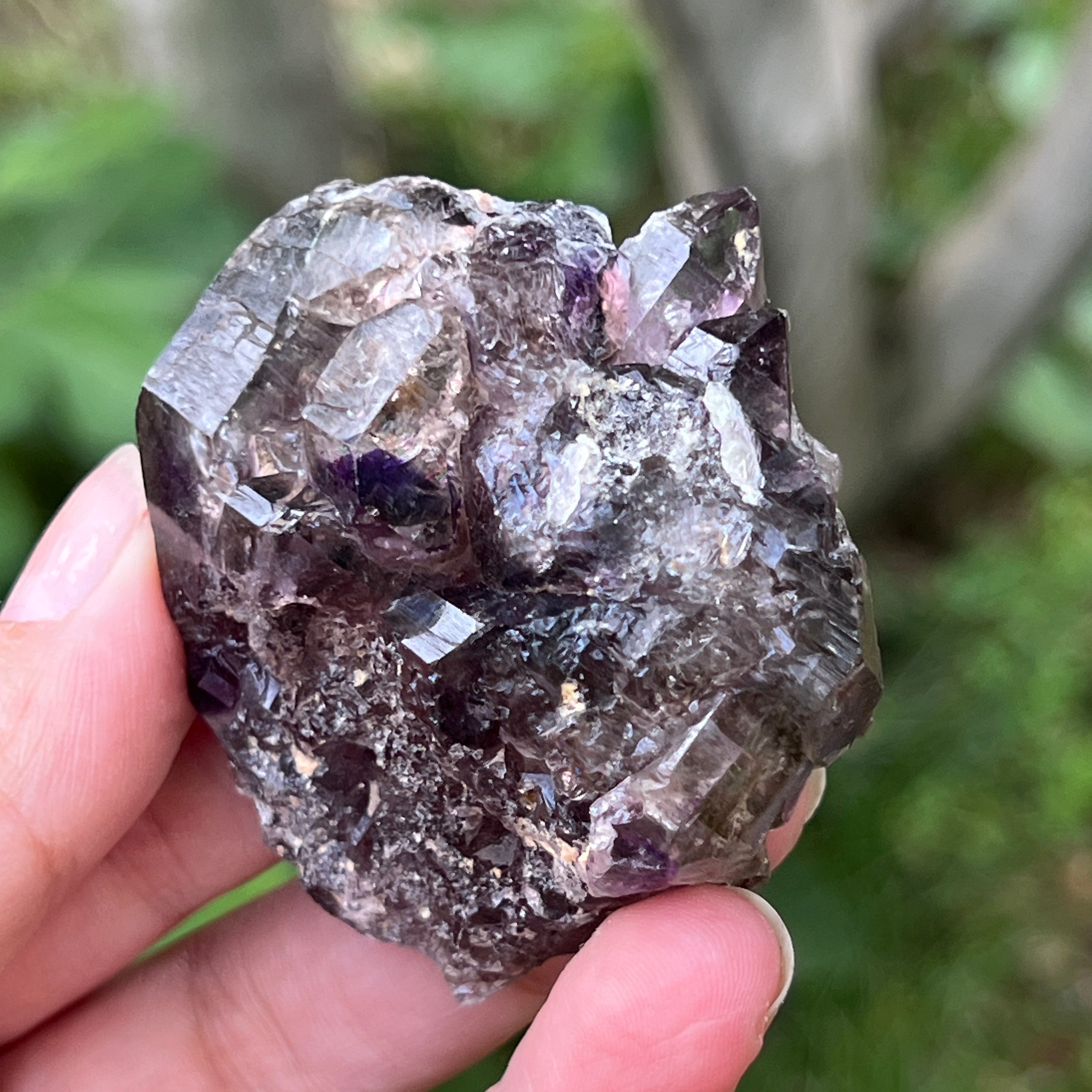 Формиран в сърцето на планините Брандберг в западната част на Намибия, този екземпляр димящ кварц е резултат от милиони години дълбоки геоложки процеси. Брандберг е изолиран гранитен масив, издигнал се по време на магматичните дейности в юрската ера, където хидротермални разтвори, богати на силиций, са запълнили пукнатините в скалата, създавайки впечатляващи кварцови кристали.