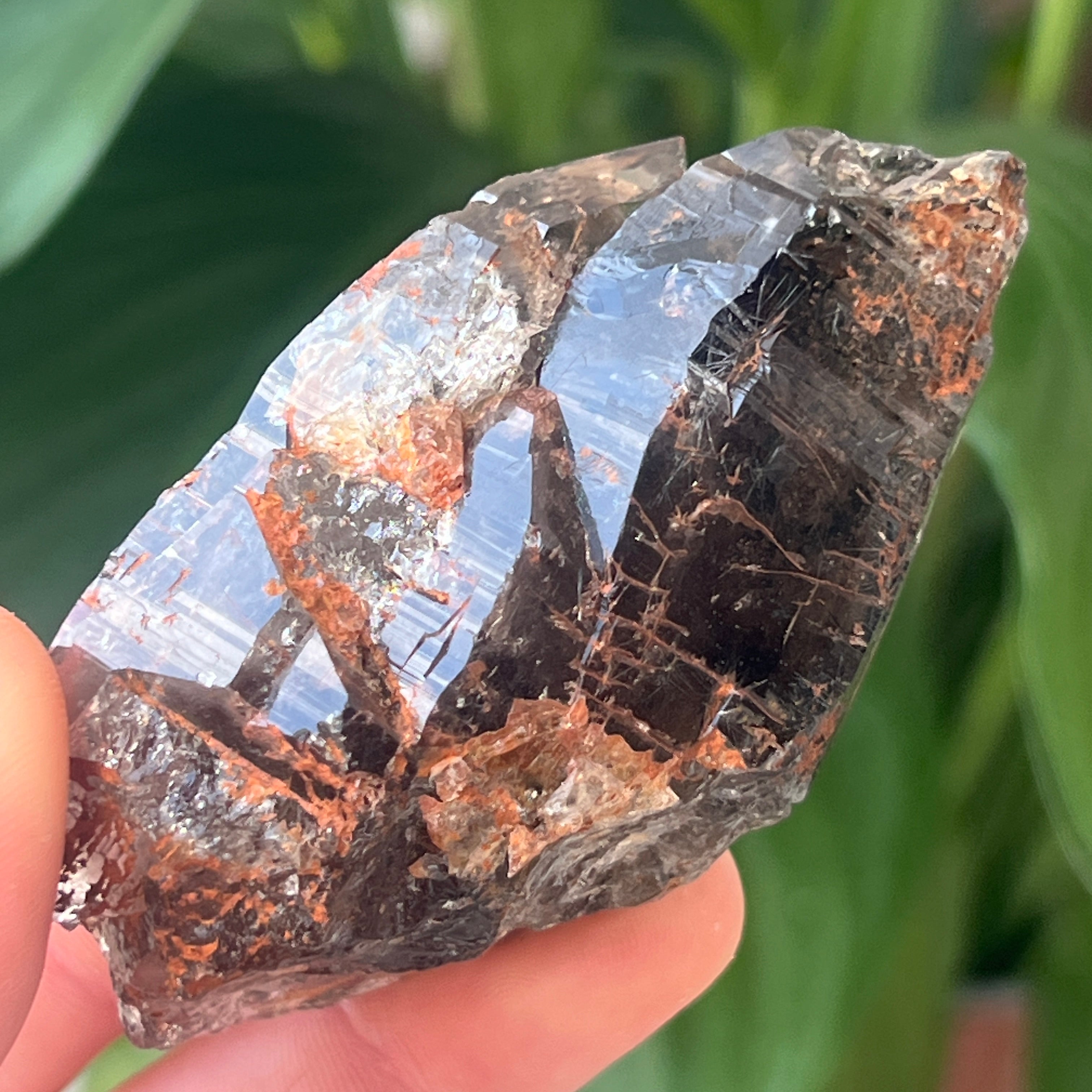 Екземплярът е ръчно събран, директно от трудно достъпни части на масива, а липсата на индустриална експлоатация прави всяка частица наистина рядка. Това съчетание на уникален геологичен произход и сурова естетика превръща димния кварц от Брандберг в колекционерски кристал, търсен от минералолози, геолози и почитатели на автентичността.