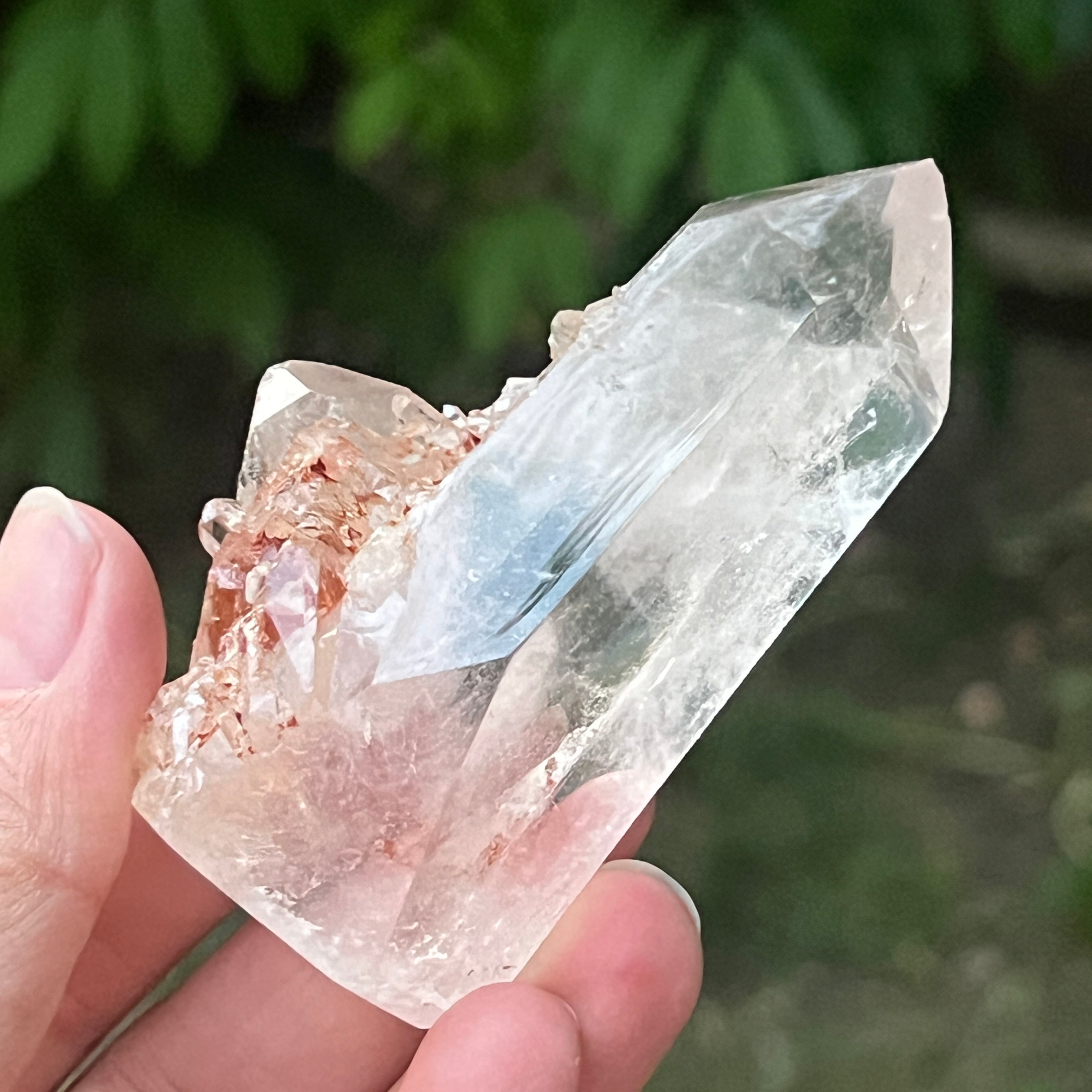 Кварцът с гьотитови включвания е живо свидетелство за бавните движения на Земята, където яснотата се съчетава с минералната плътност, а желязото оставя следи от ръжда в сърцето на кристала.