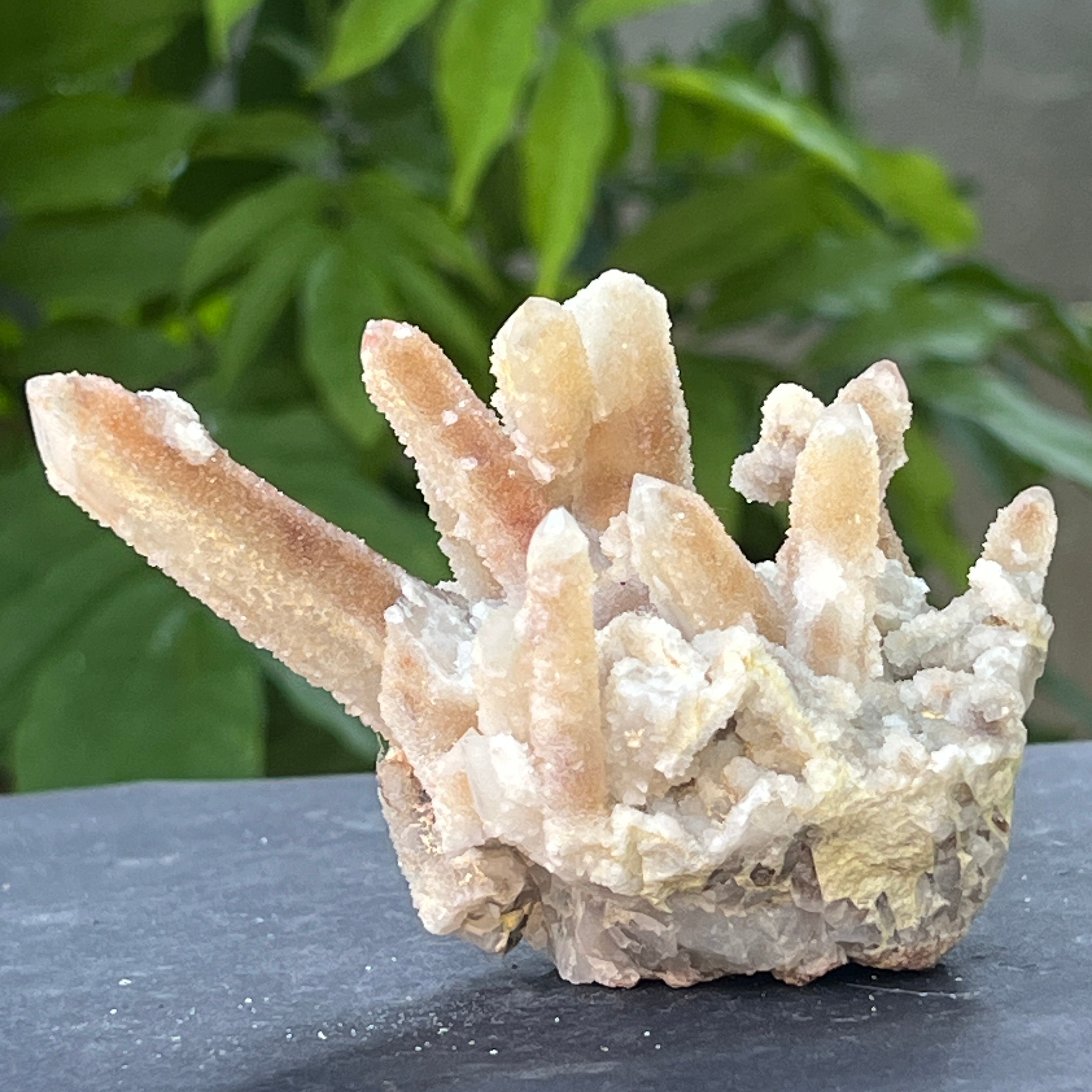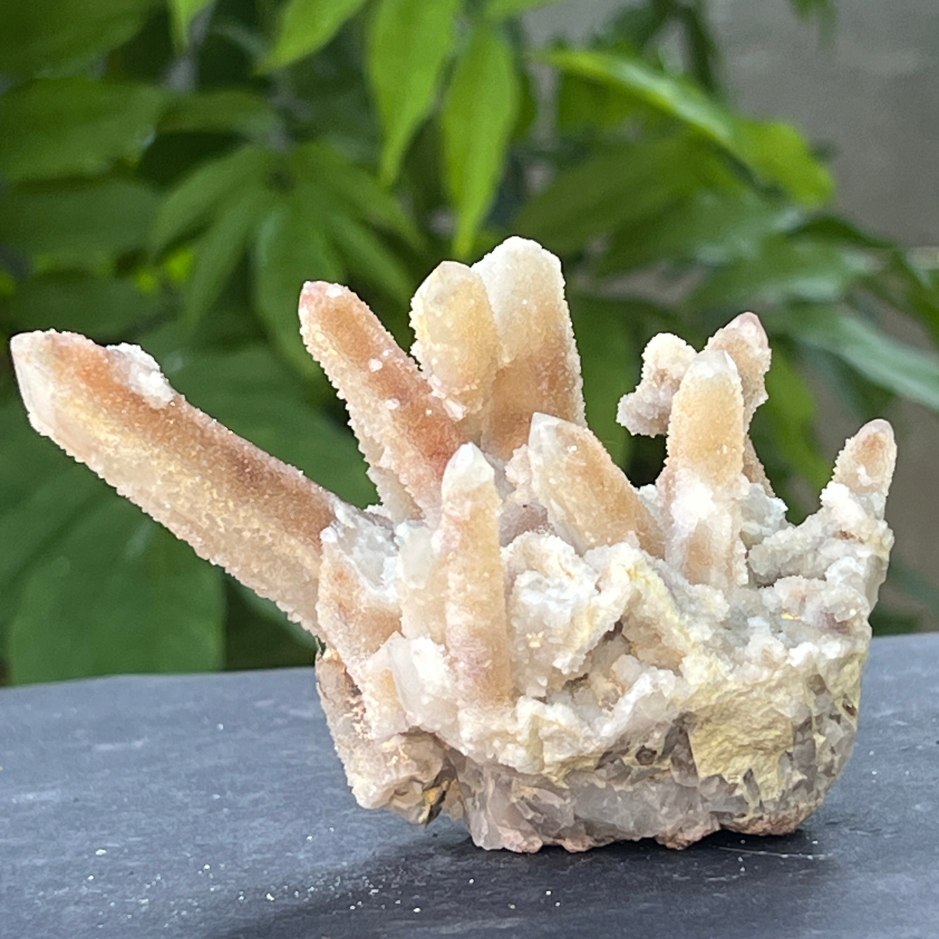 Формиран в дълбоки кухини на земната кора, на места, където условията на температура, влажност и минерализация са се съчетали перфектно, кристализацията е приела вертикална, колумнарна форма, подобна на минерални сталактити. По празните стени на пещерата, силициевите молекули се натрупват капка по капка, образувайки радиални и компактни агрегати от фини кристали, като жички светлина, застинали в издигащо се движение.
