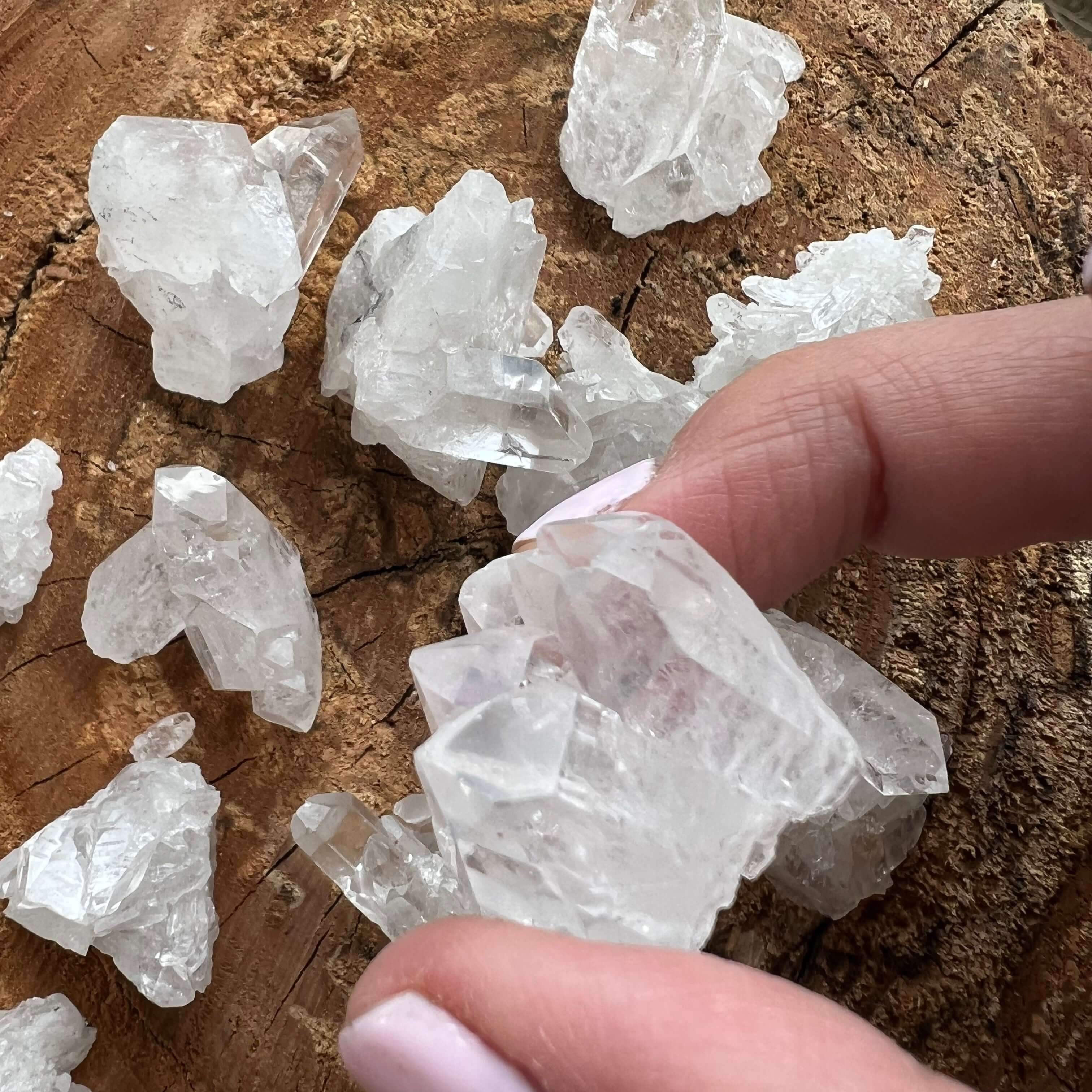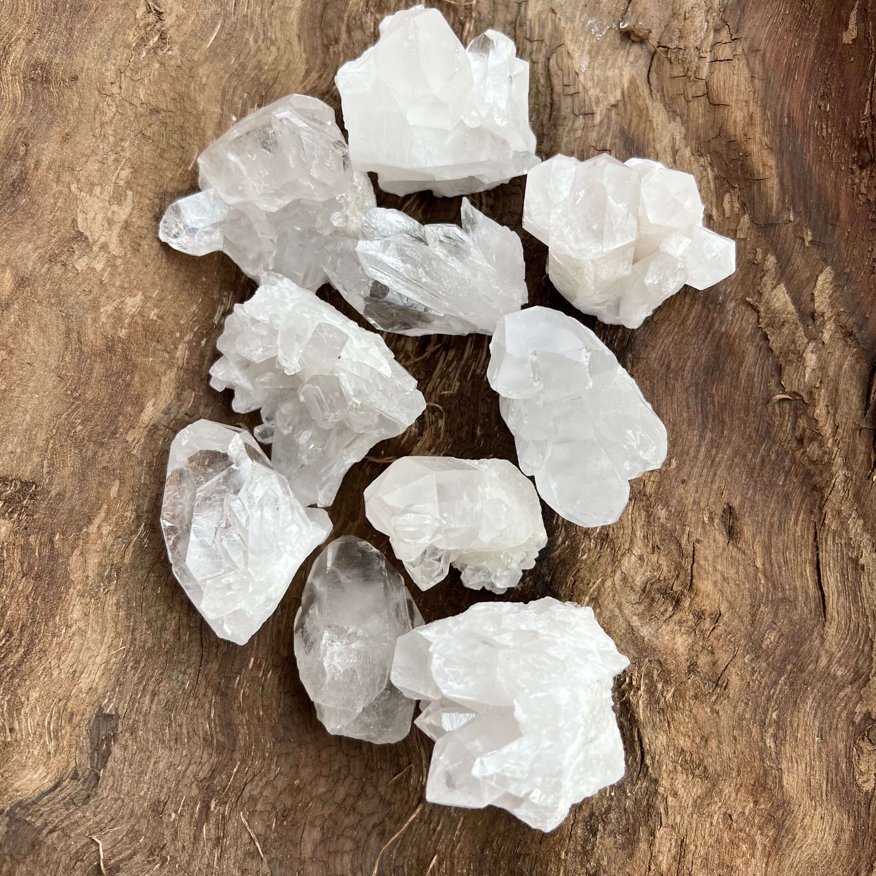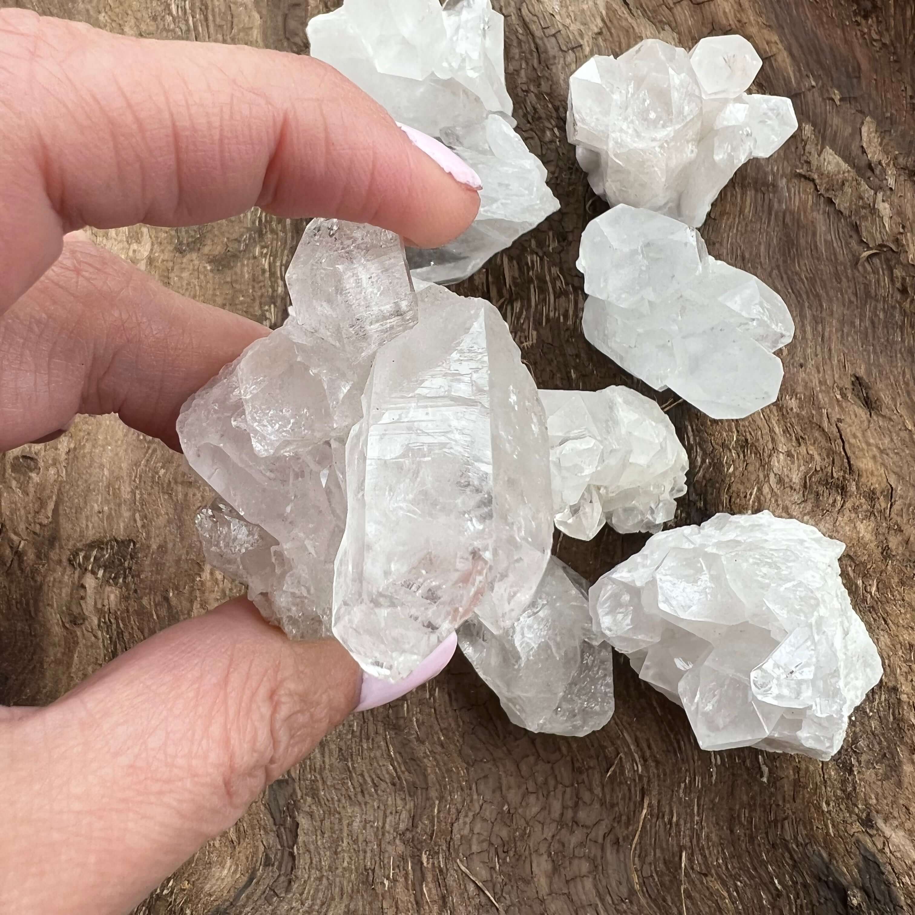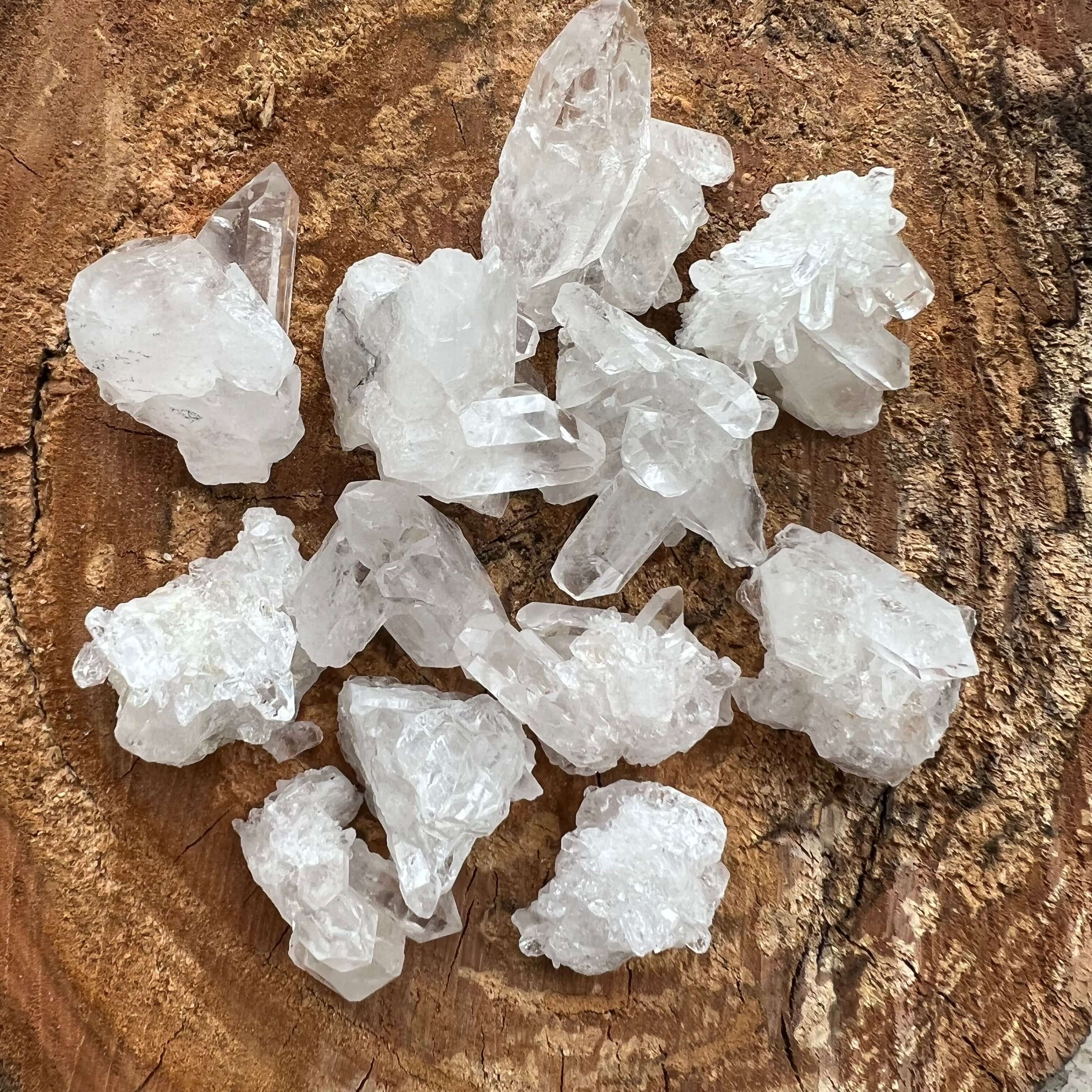 Клъстер безцветен кварц/скъпоценен кристал друзи S, размери между 2,5 - 4 см. Цената варира в зависимост от размера на камъка, моля изберете желания размер.