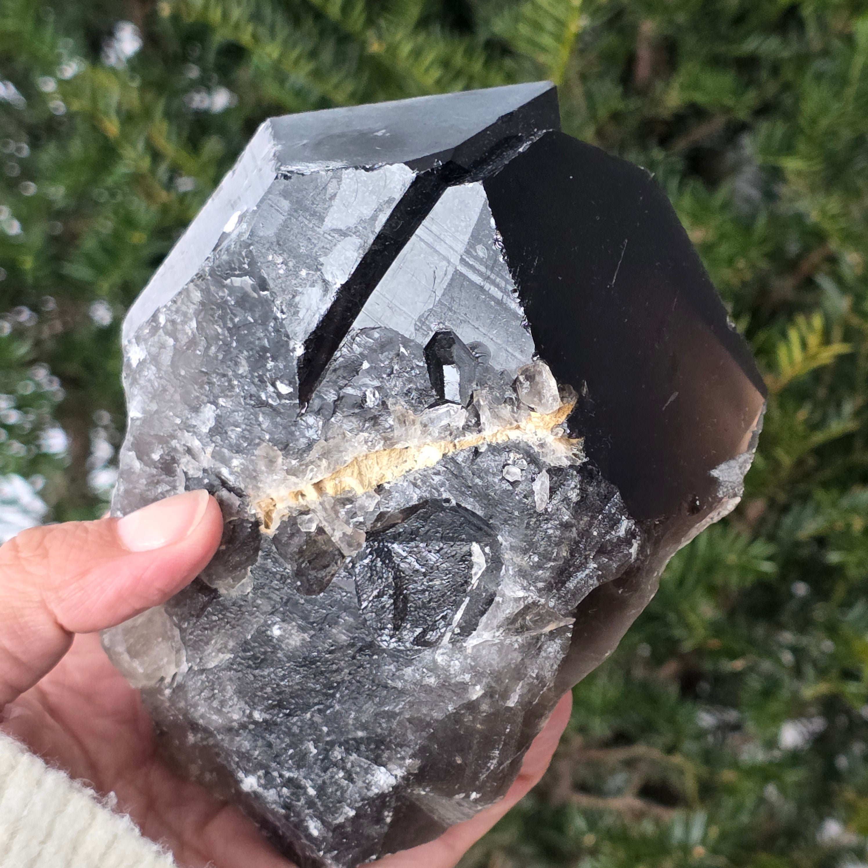 Цветът на димчиния кварц е резултат от естествено облъчване или от наличието на алуминиеви примеси по време на неговото формиране. Този процес може да произведе широка гама от нюанси, от светли до интензивни.