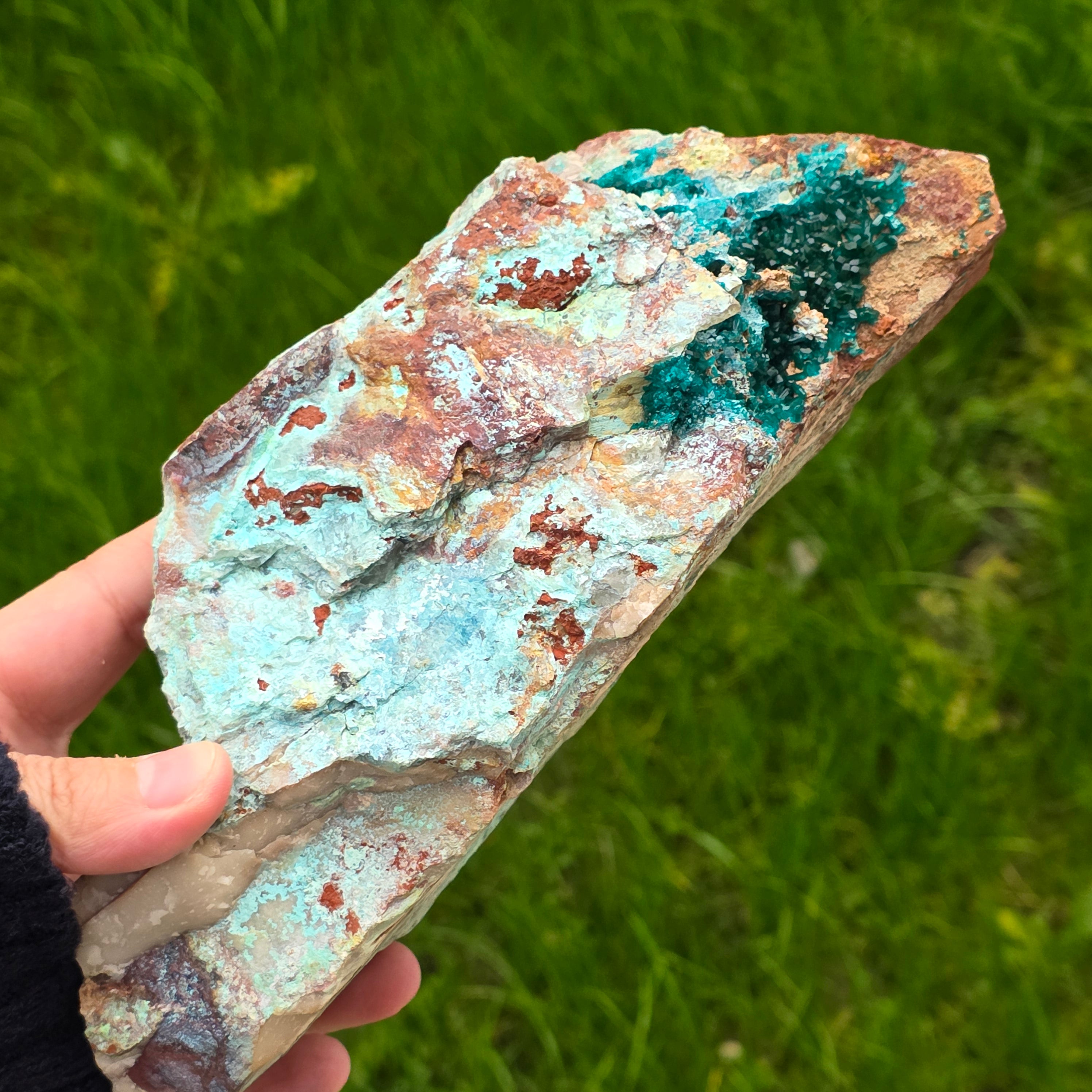 Descriere - Клъстер диоптаз в хризоколова матрица M1