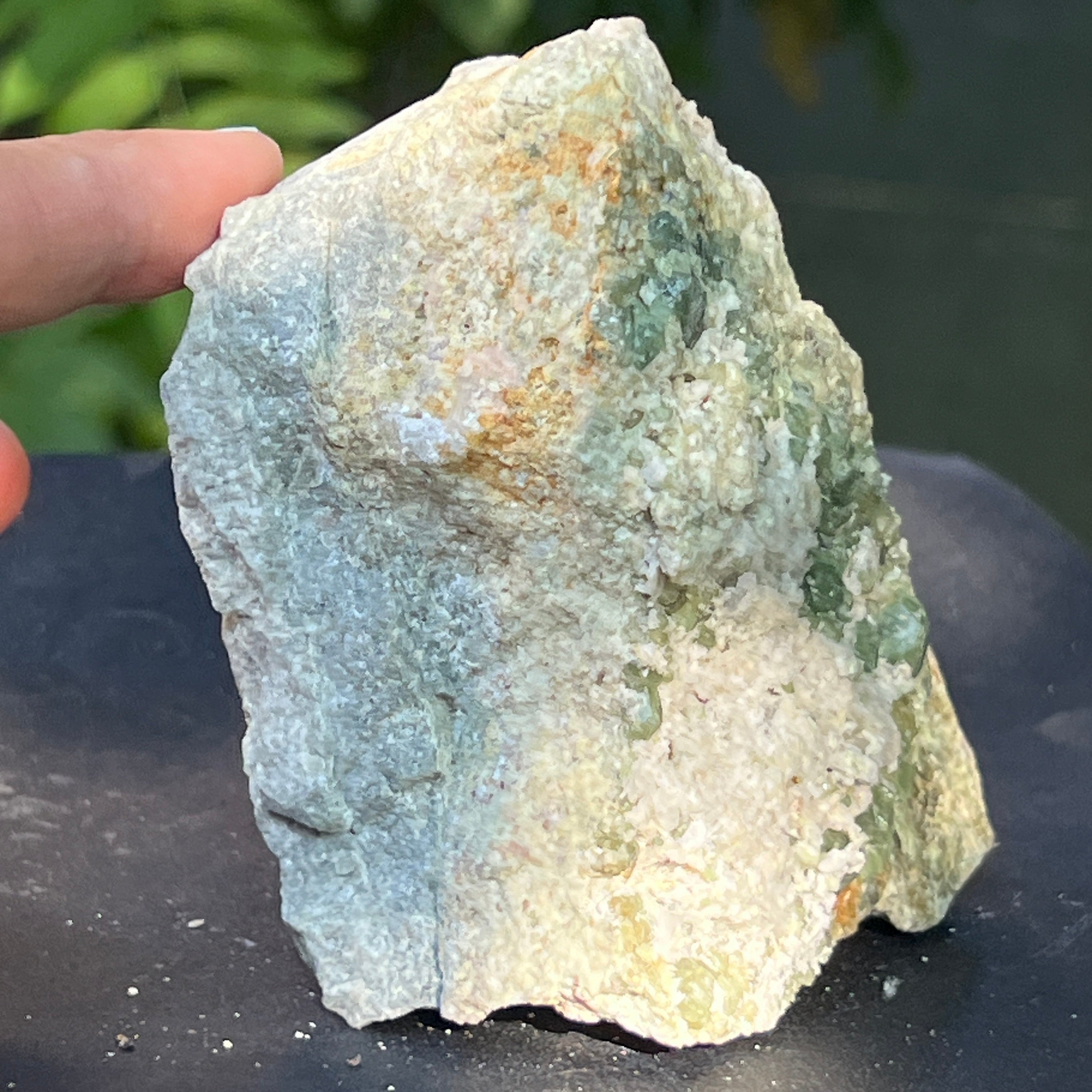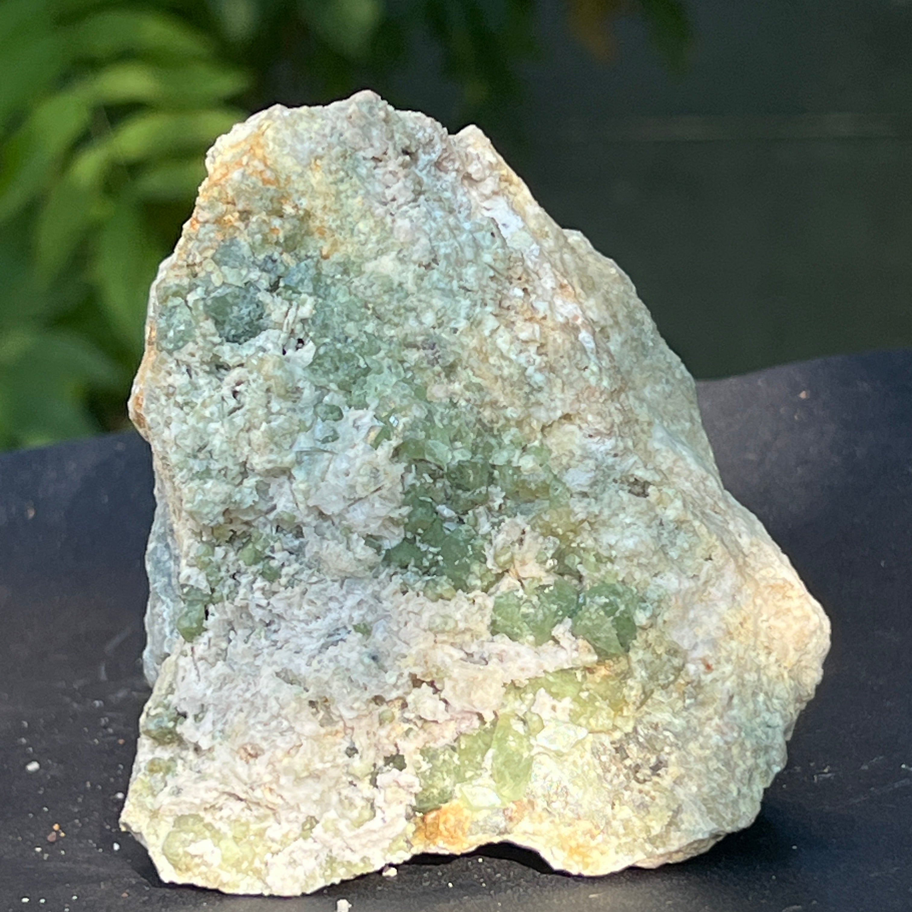 🟢 Демантоидът е една от най-редките и търсени разновидности на граната, ценен заради диамантоподобния си блясък и мощната си енергия. Този екземпляр идва от региона Еронго – Намибия, известен с минералното си богатство, и е напълно естествен, необработен.