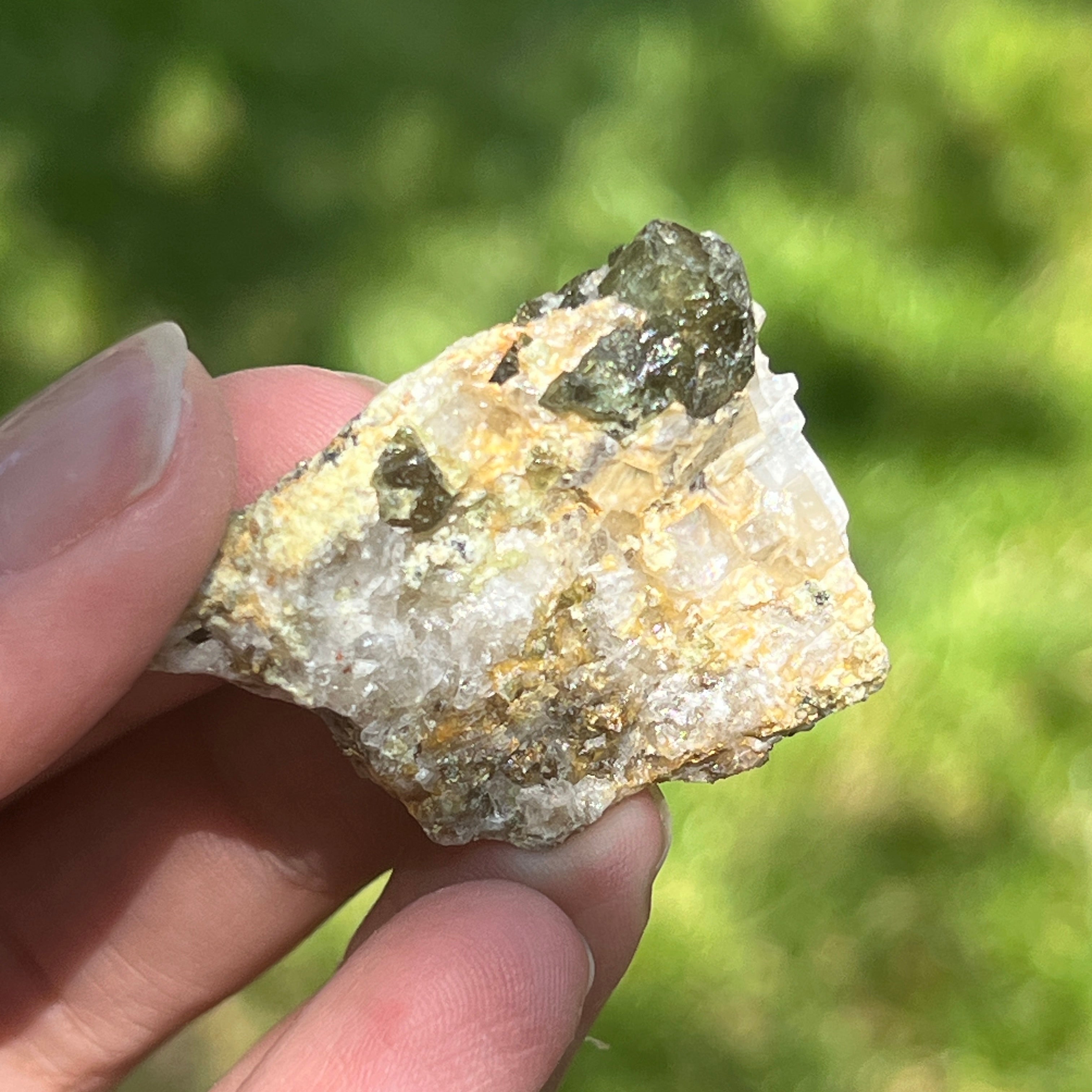🟢 Демантоидът е една от най-редките и търсени разновидности на граната, ценен заради диамантоподобния си блясък и силната си енергия. Този екземпляр идва от региона Еронго – Намибия, известен с минералното си богатство, и е напълно натурален, необработен.