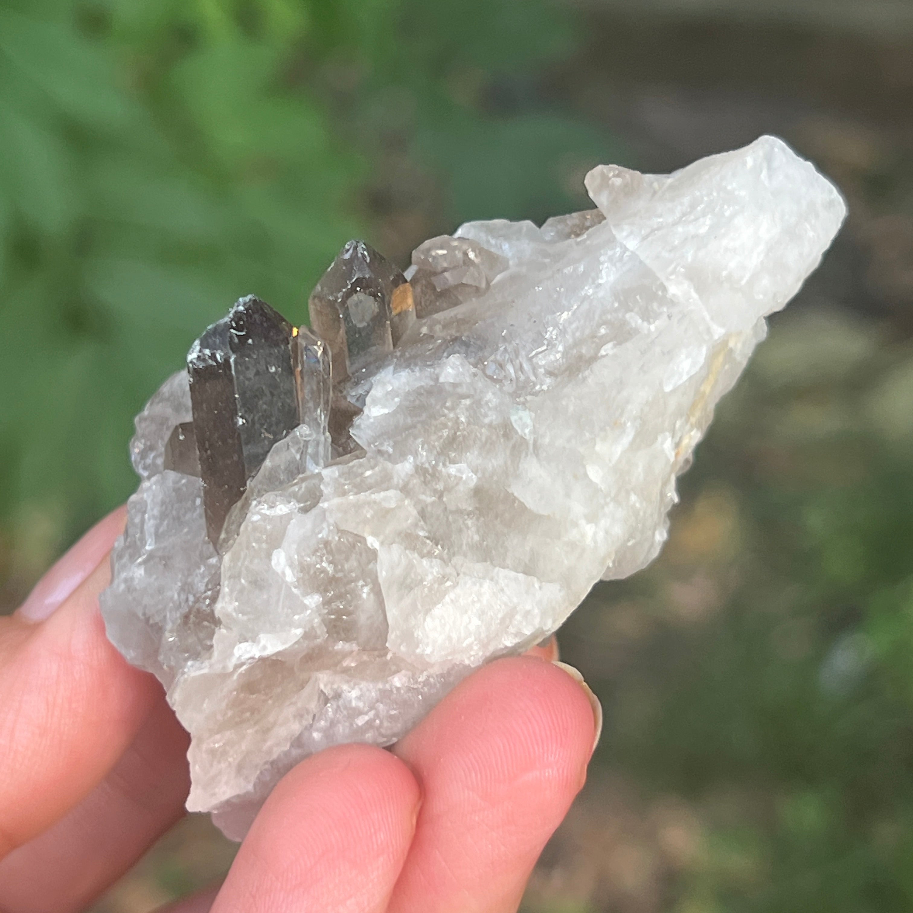 Цветът на димния кварц е резултат от естествено облъчване или наличието на алуминиеви примеси по време на формирането му. Този процес може да произведе широка гама от нюанси, от бледи до интензивни.