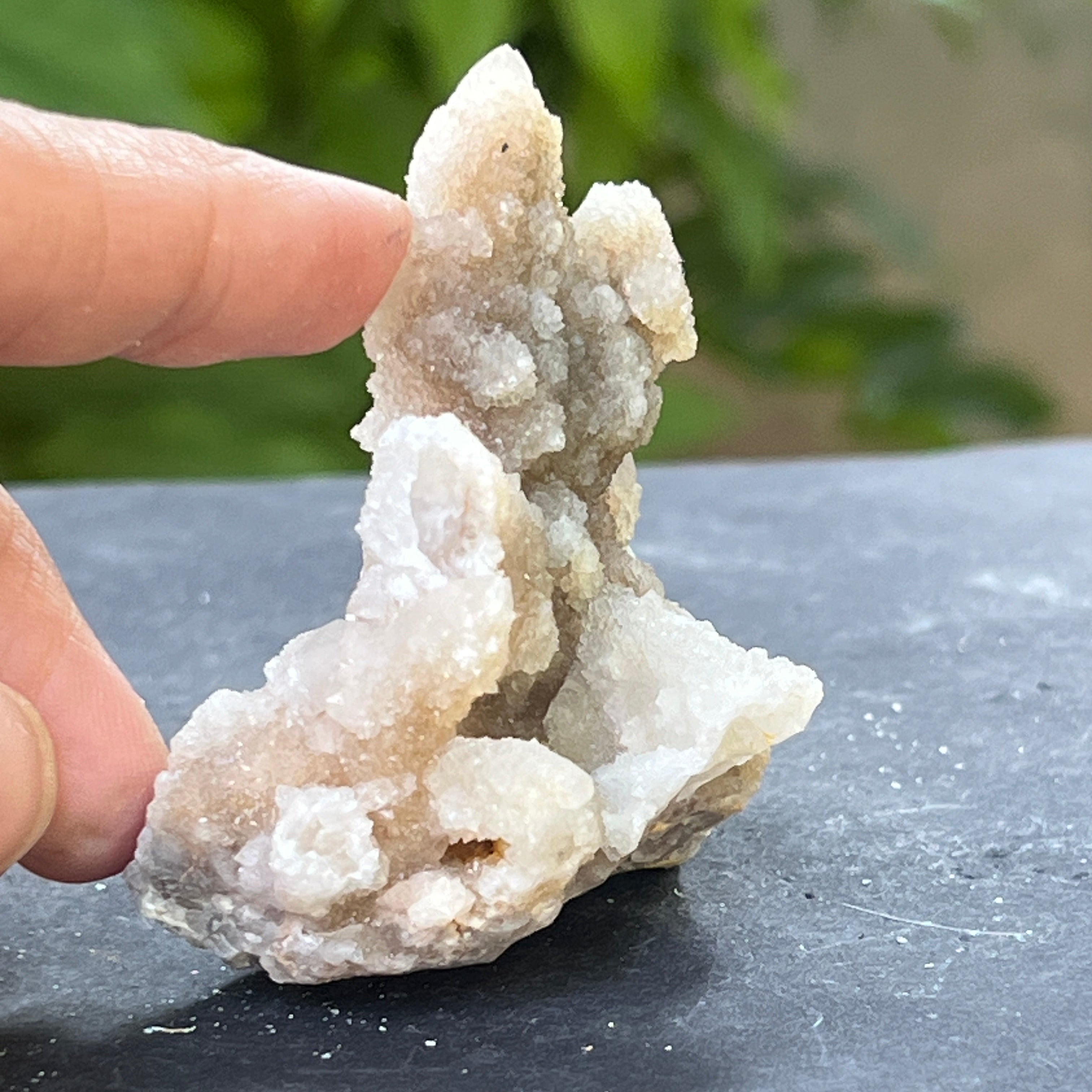Образуван в дълбоките кухини на земната кора, на места, където температурните, влажностните и минерални условия са се подредили перфектно, кристализацията е придобила вертикална, колоноподобна форма, подобно на минерални сталактити. От голите стени на пещерата, силициевите молекули се събират капка по капка, формирайки радиални и компактни агрегати от фини кристали, като светлинни игли, застинали в изкачващо се движение.