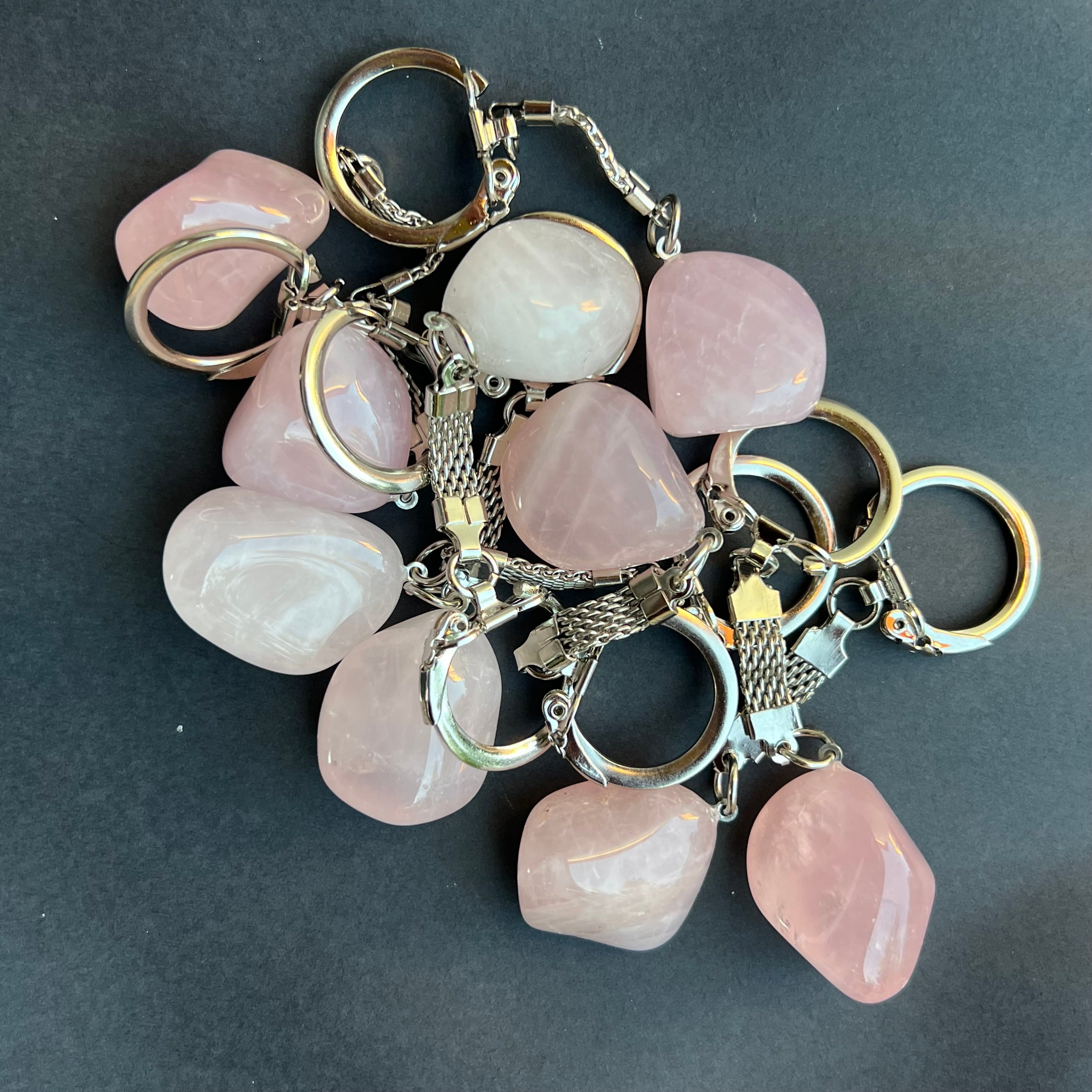 Този ключодържател от розов кварц е деликатен и значим аксесоар, перфектен за тези, които ценят енергията на любовта и състраданието. Розовият кварц е известен като камъкът на безусловната любов, привличащ енергии на хармония, доверие и вътрешен мир.