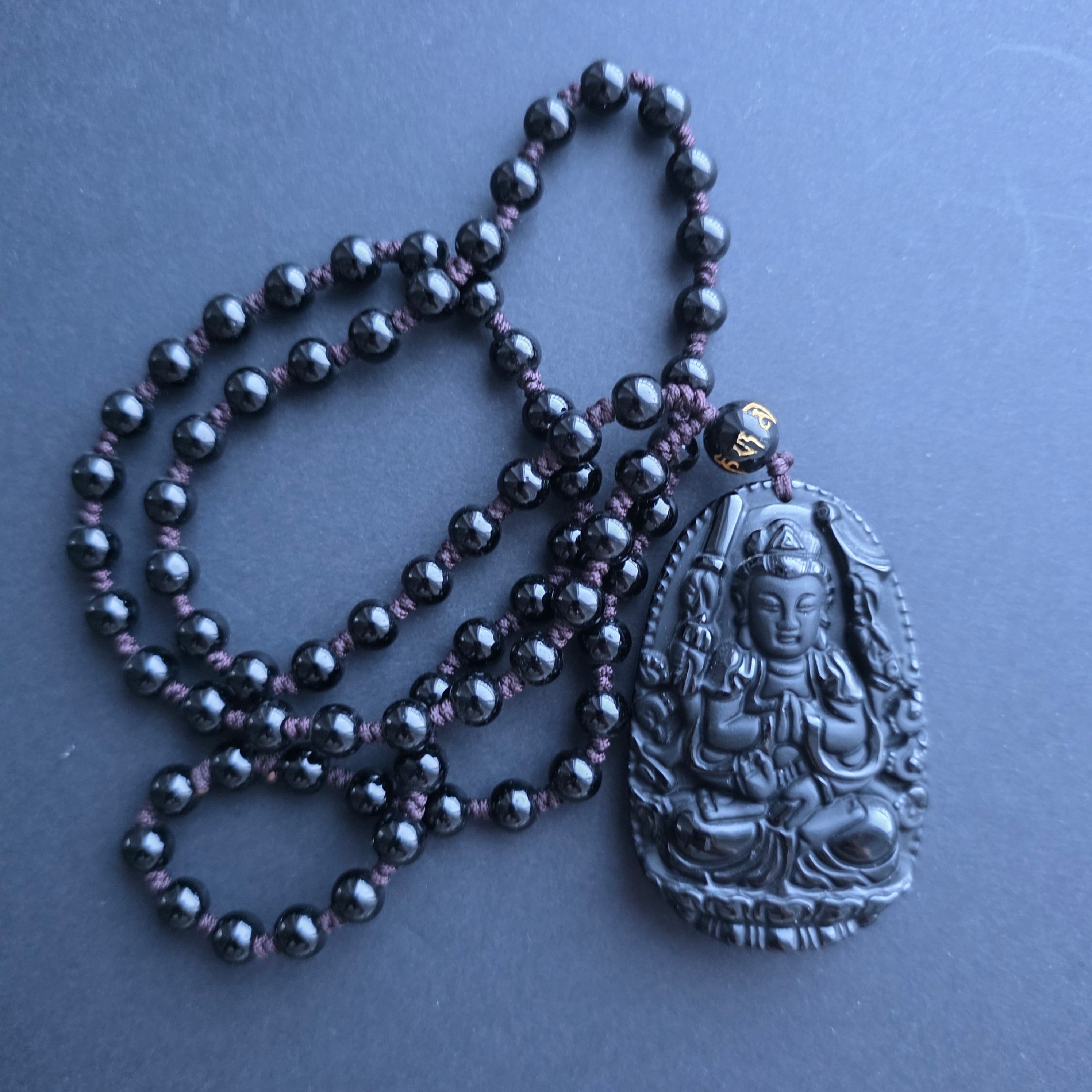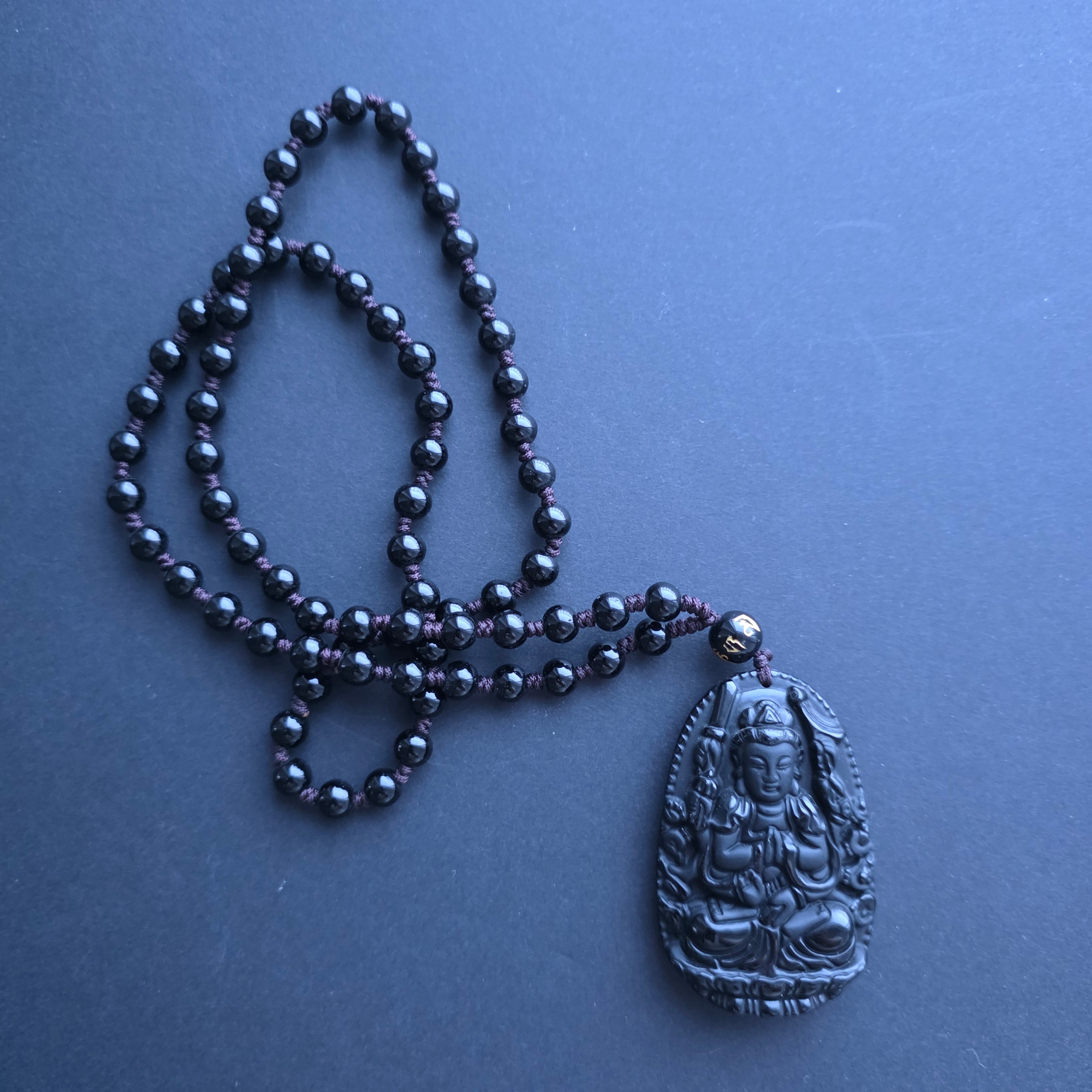 Колие амулет обсидиан черен | Молещият се Буда