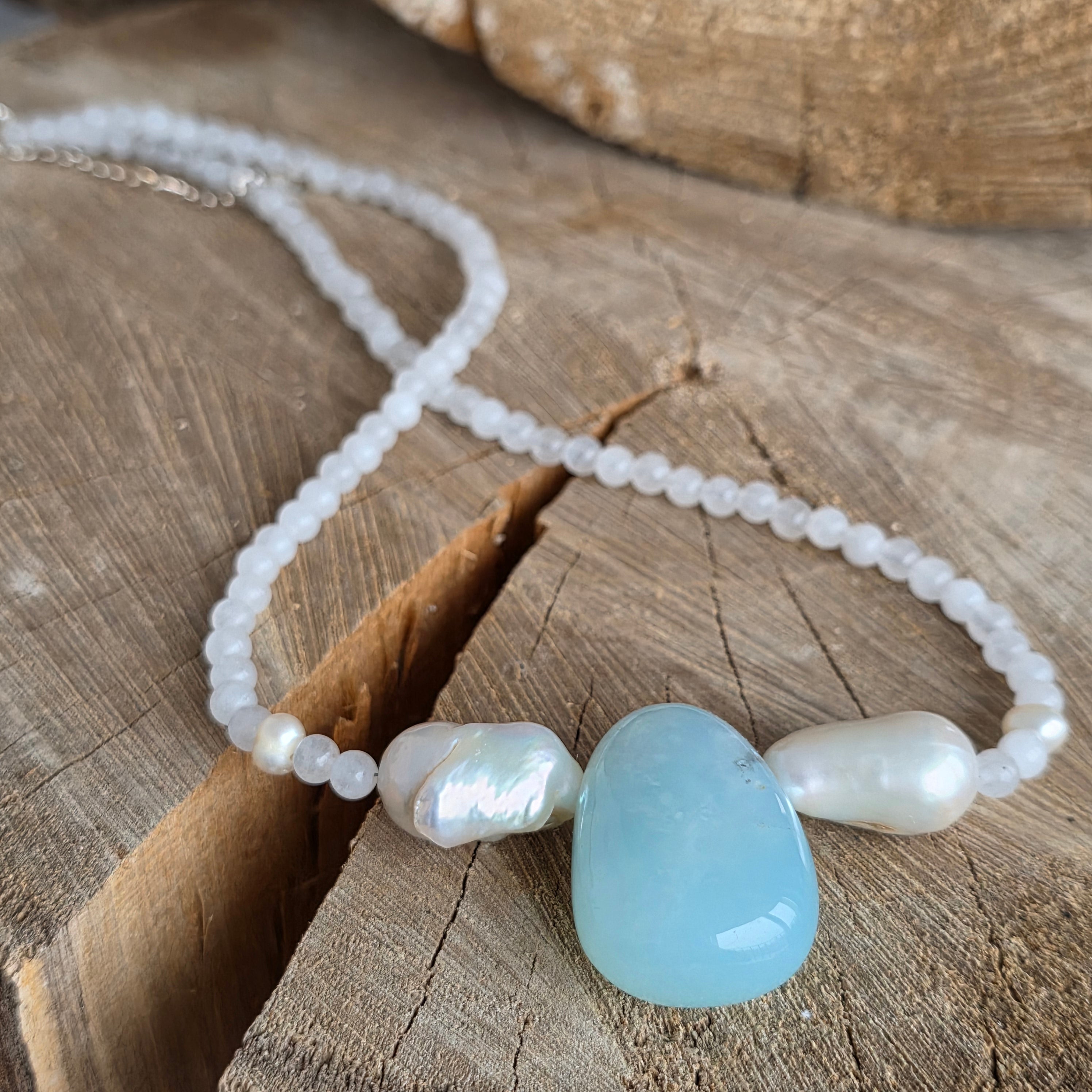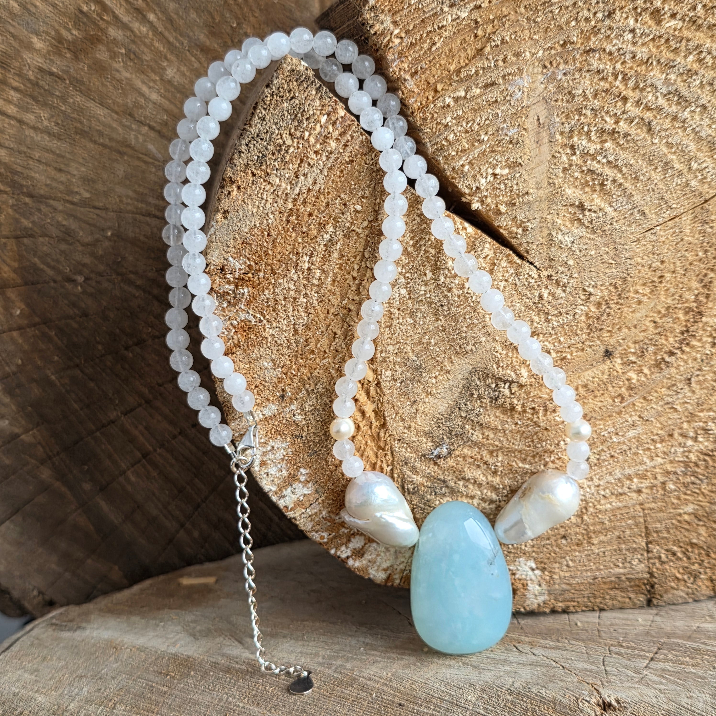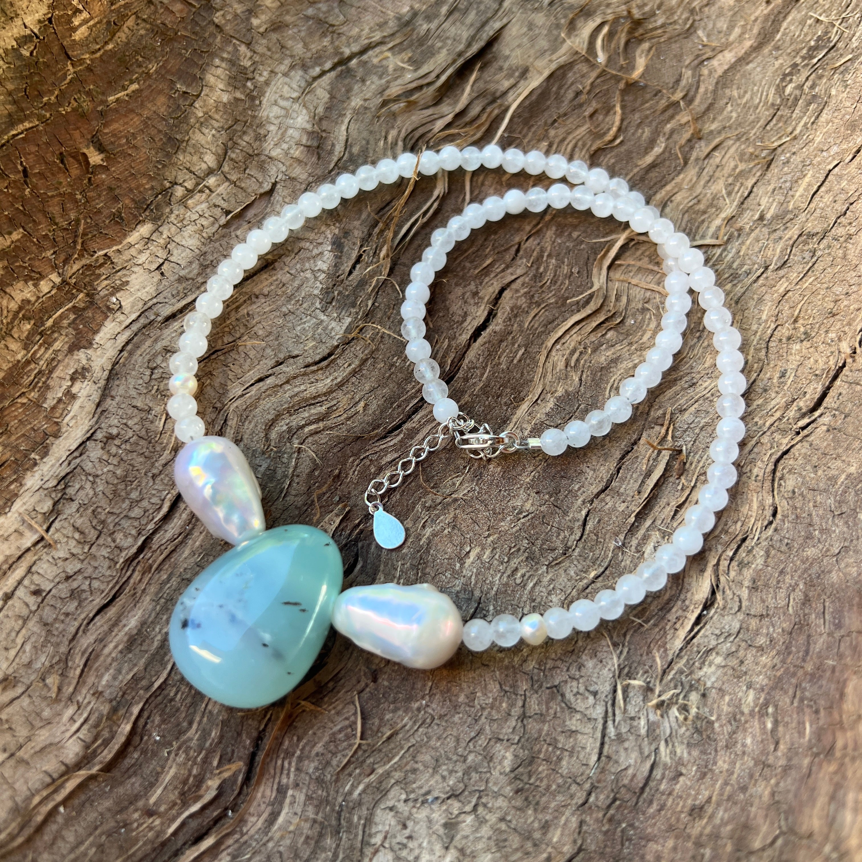 Ревюта – Колие от бял яспис, перли и хризопраз Serene#28