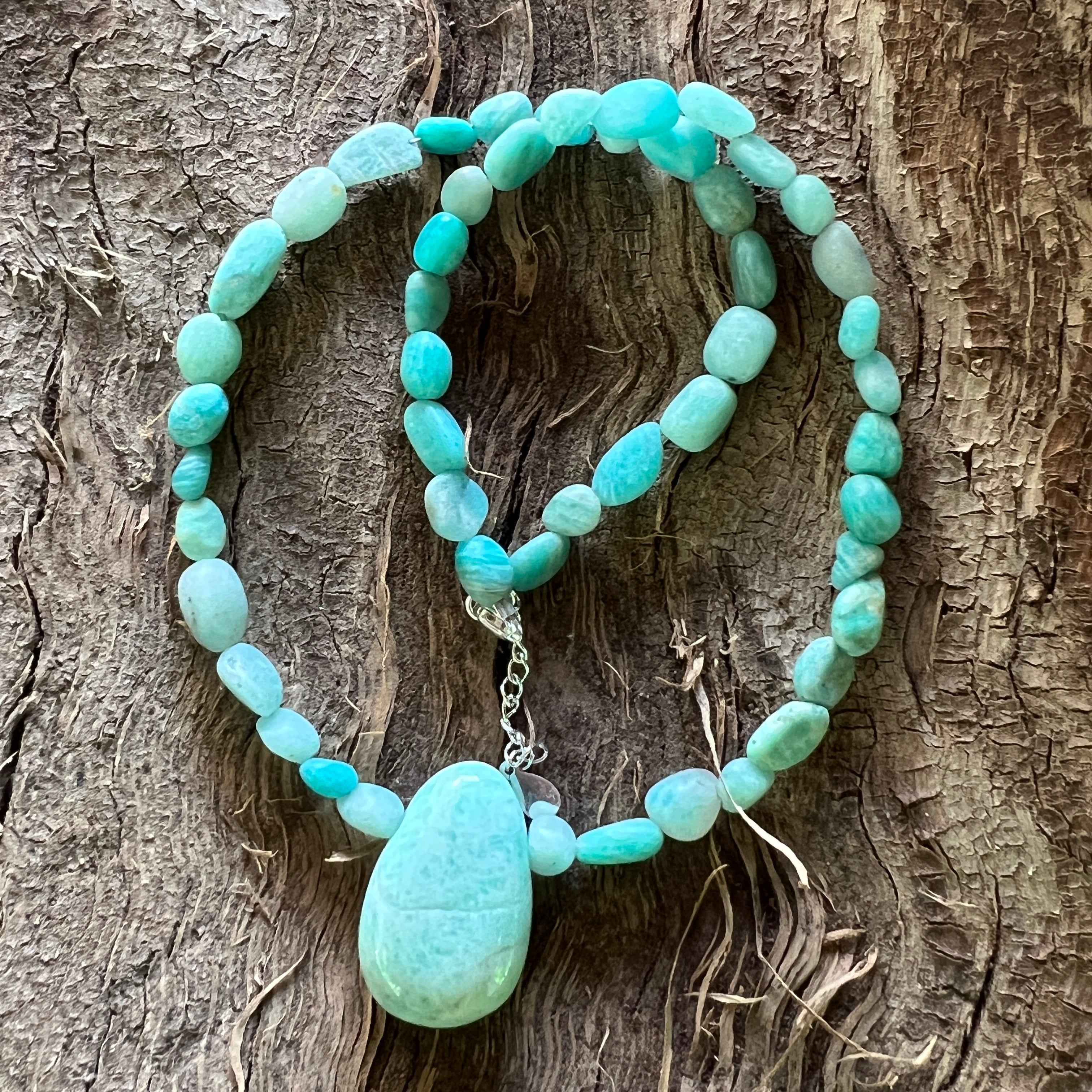 Амазонитът е известен като камък на истината и вътрешната хармония. Казва се, че отваря чакра на гърлото и сърцето, подпомагайки искрената комуникация и смелостта да се изразява това, което е автентично. Това е камък на баланса между емоция и разум, между възприемчивост и изразяване.