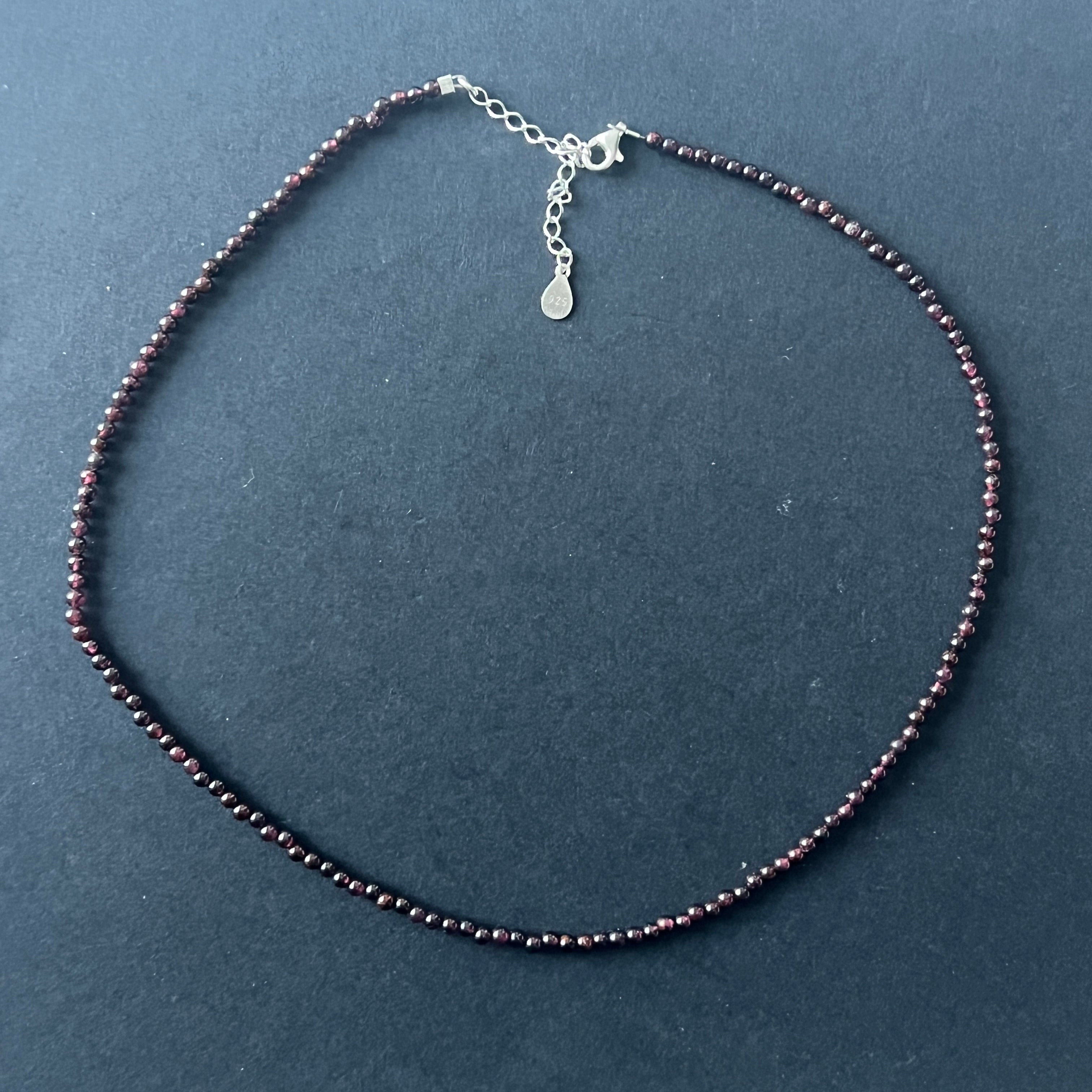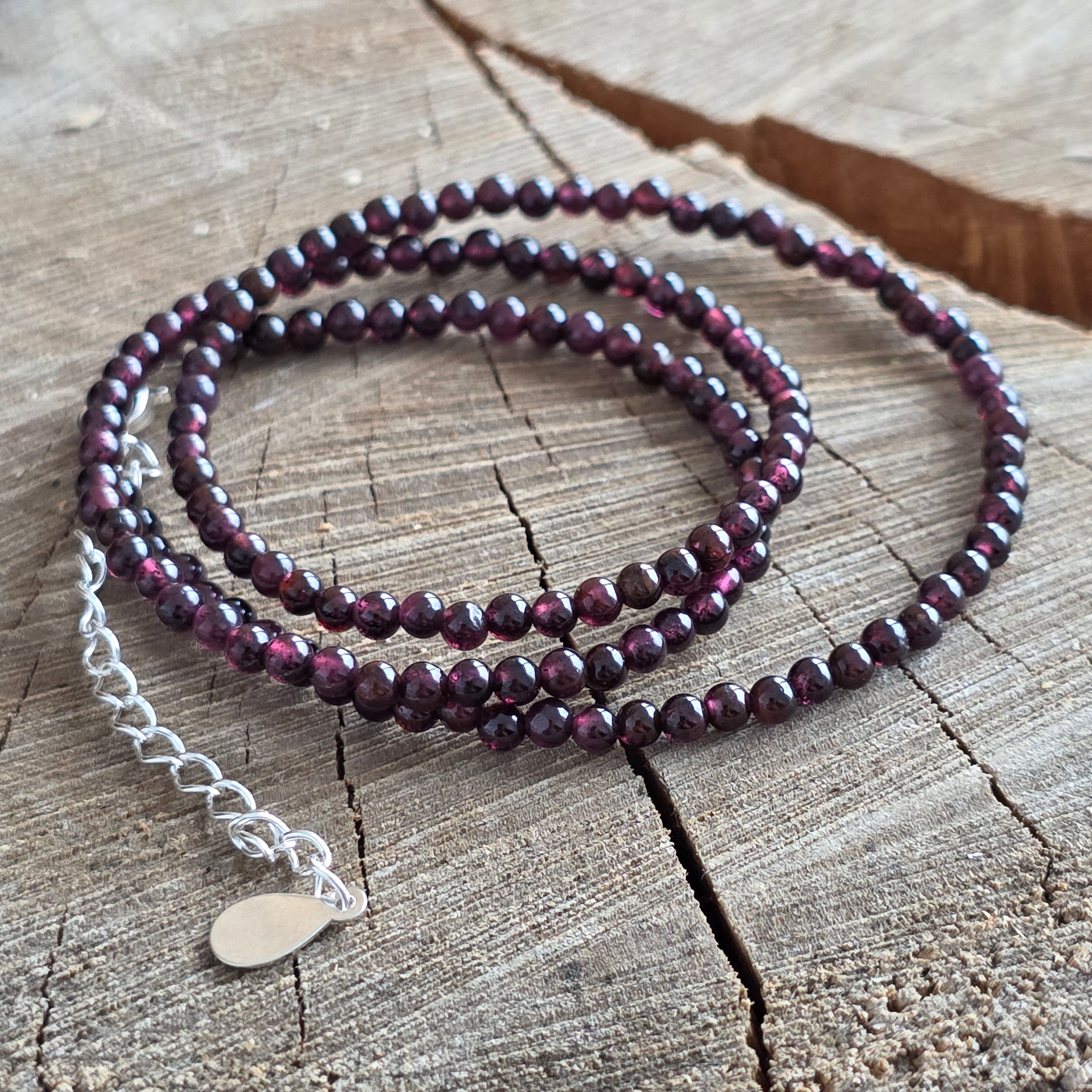 Колие Passion #125 носи живата енергия на граната — камъкът на страстта, смелостта и трансформацията. Всяка сфера от 3 мм улавя светлината като тлеещ жар, вибрирайки в дълбоки нюанси на червено-бордо.