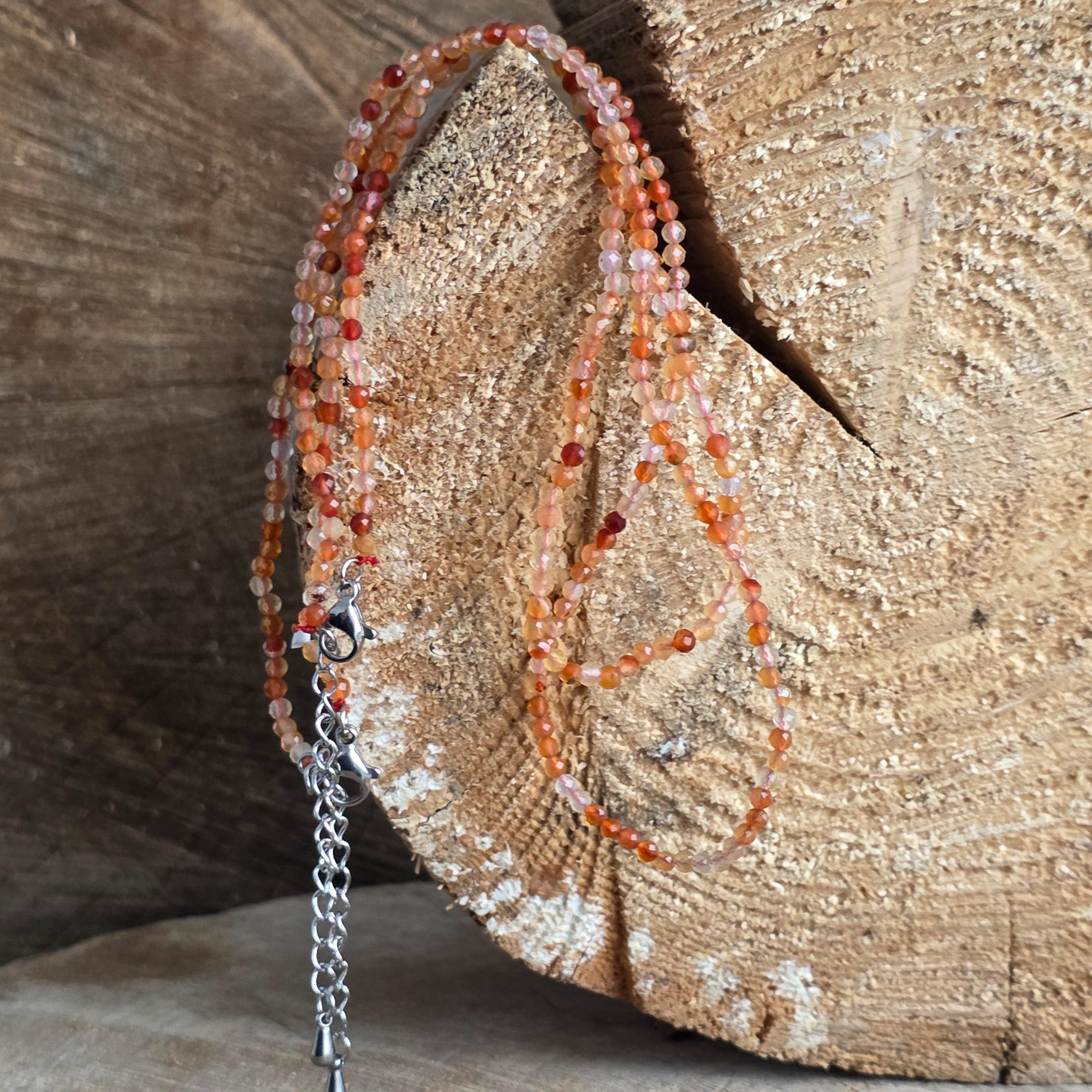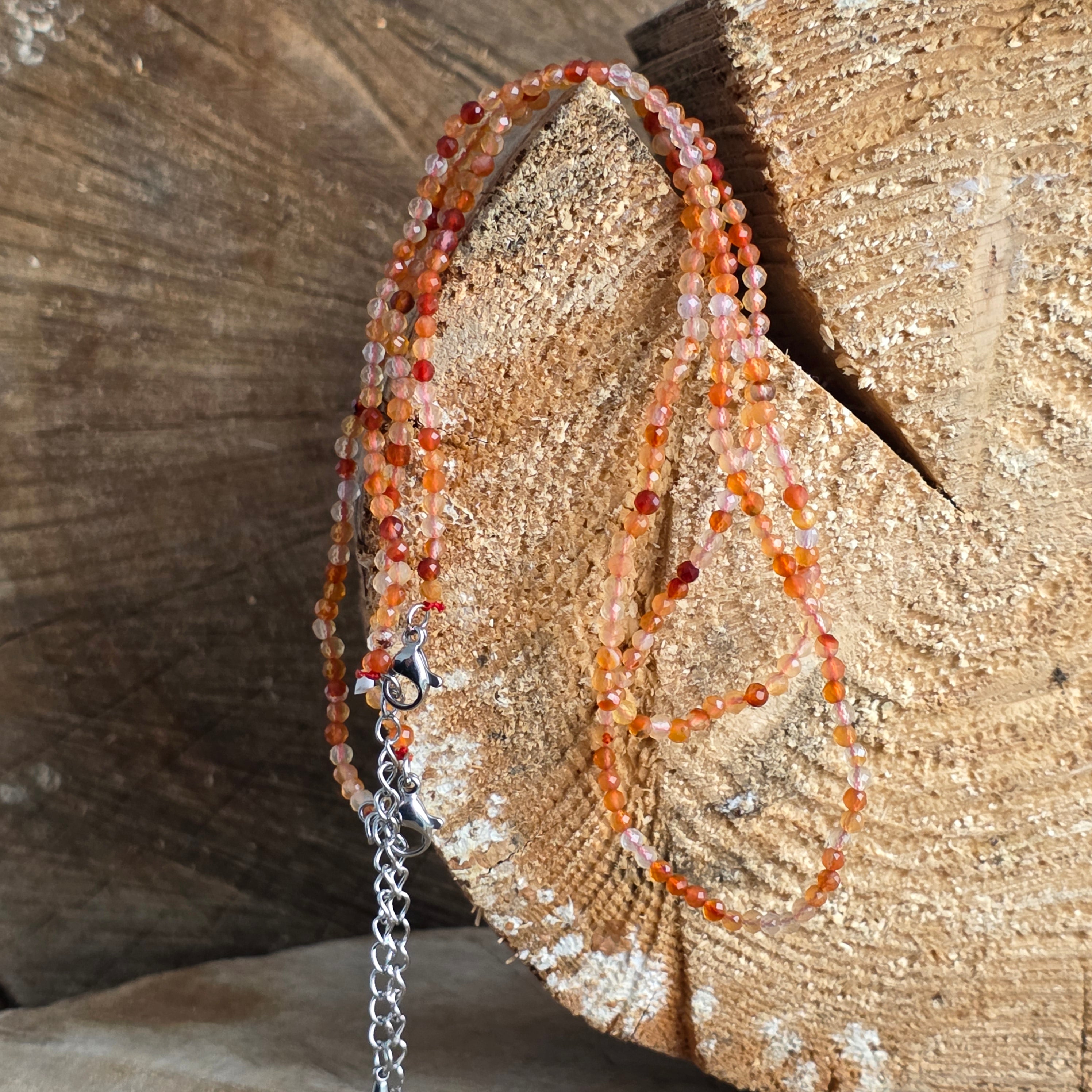 Колие от карнеол, топчета 2 мм, размер: 38 + 5 см (удължител верижка)