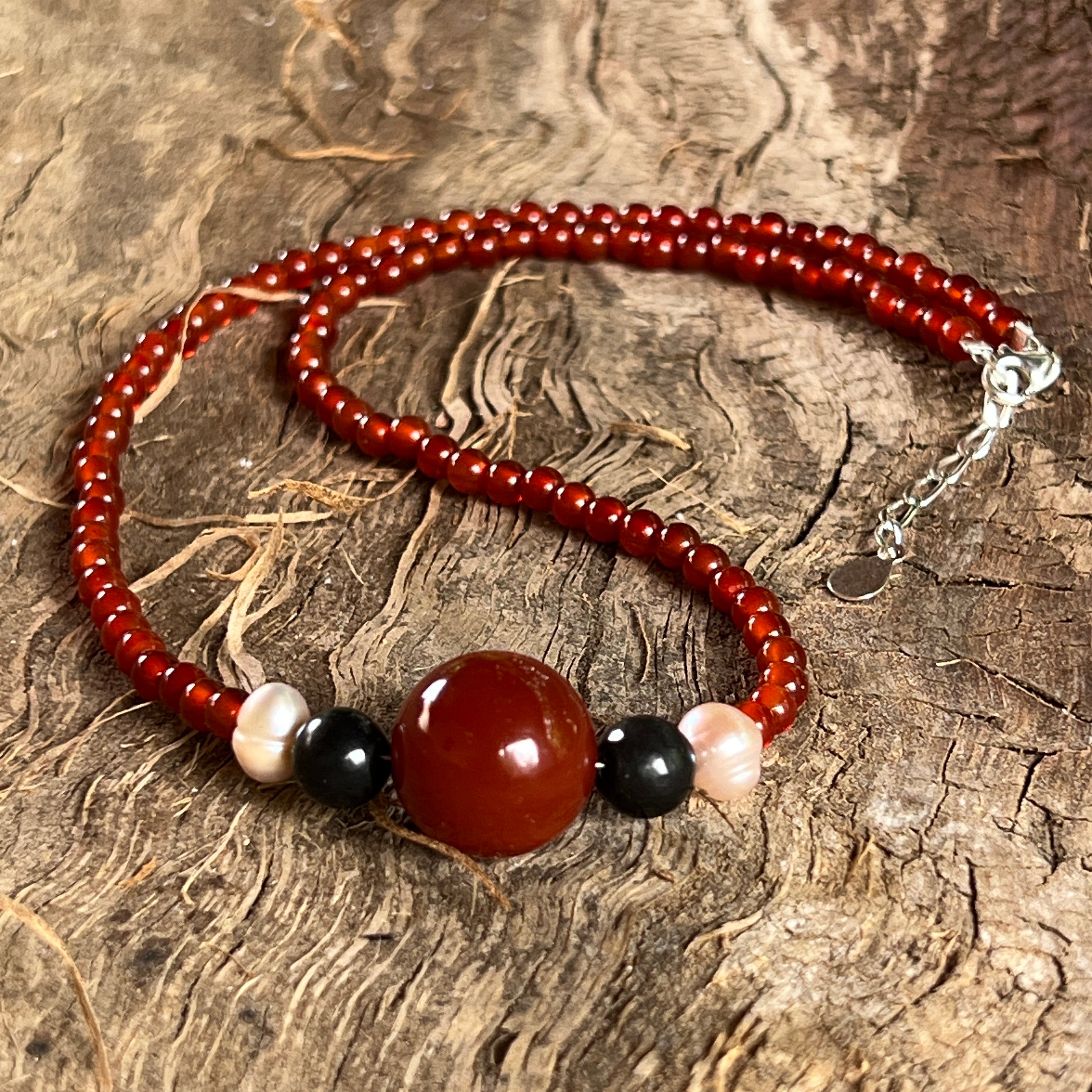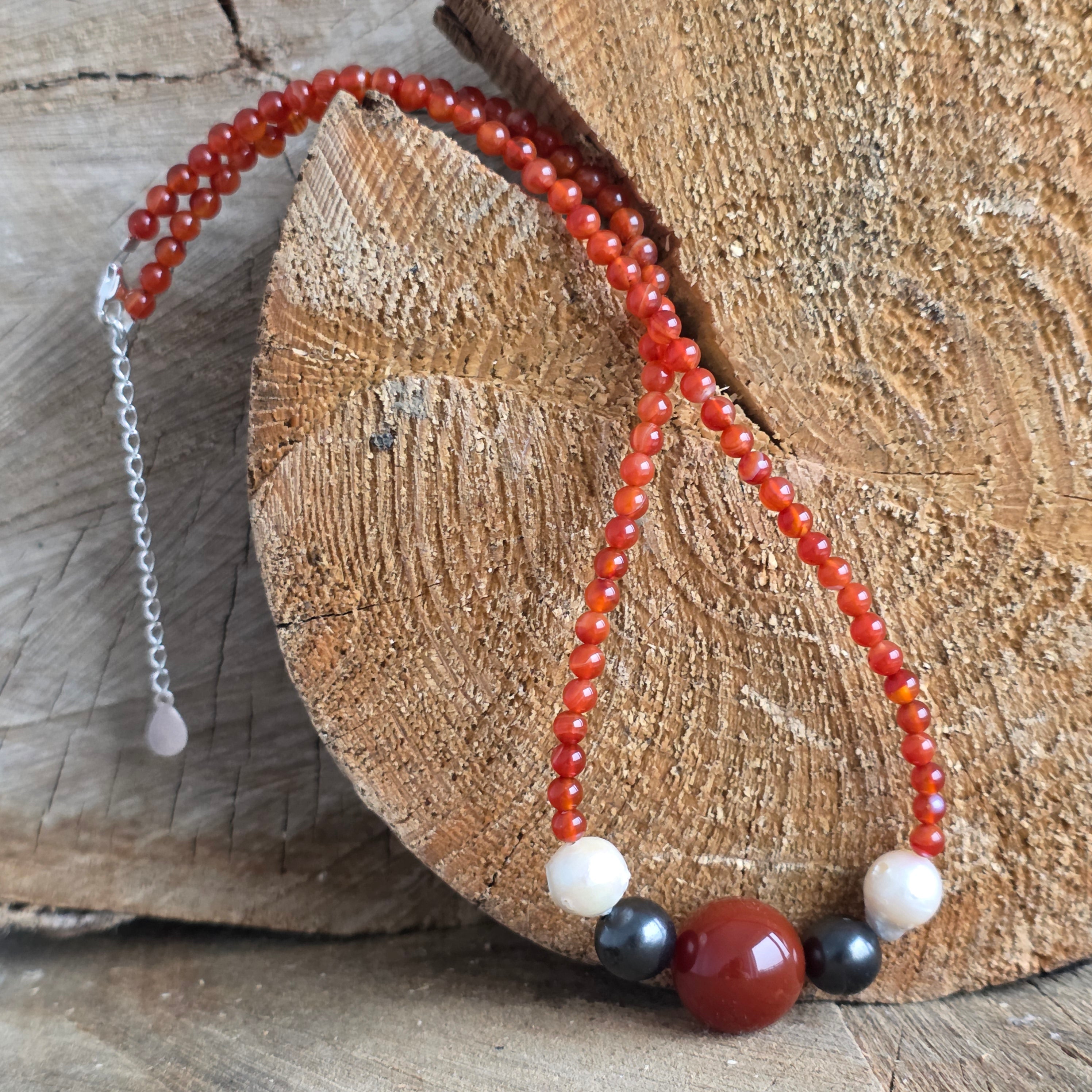 Колие от карнеол, шунгит и перли Rooted Glow#12