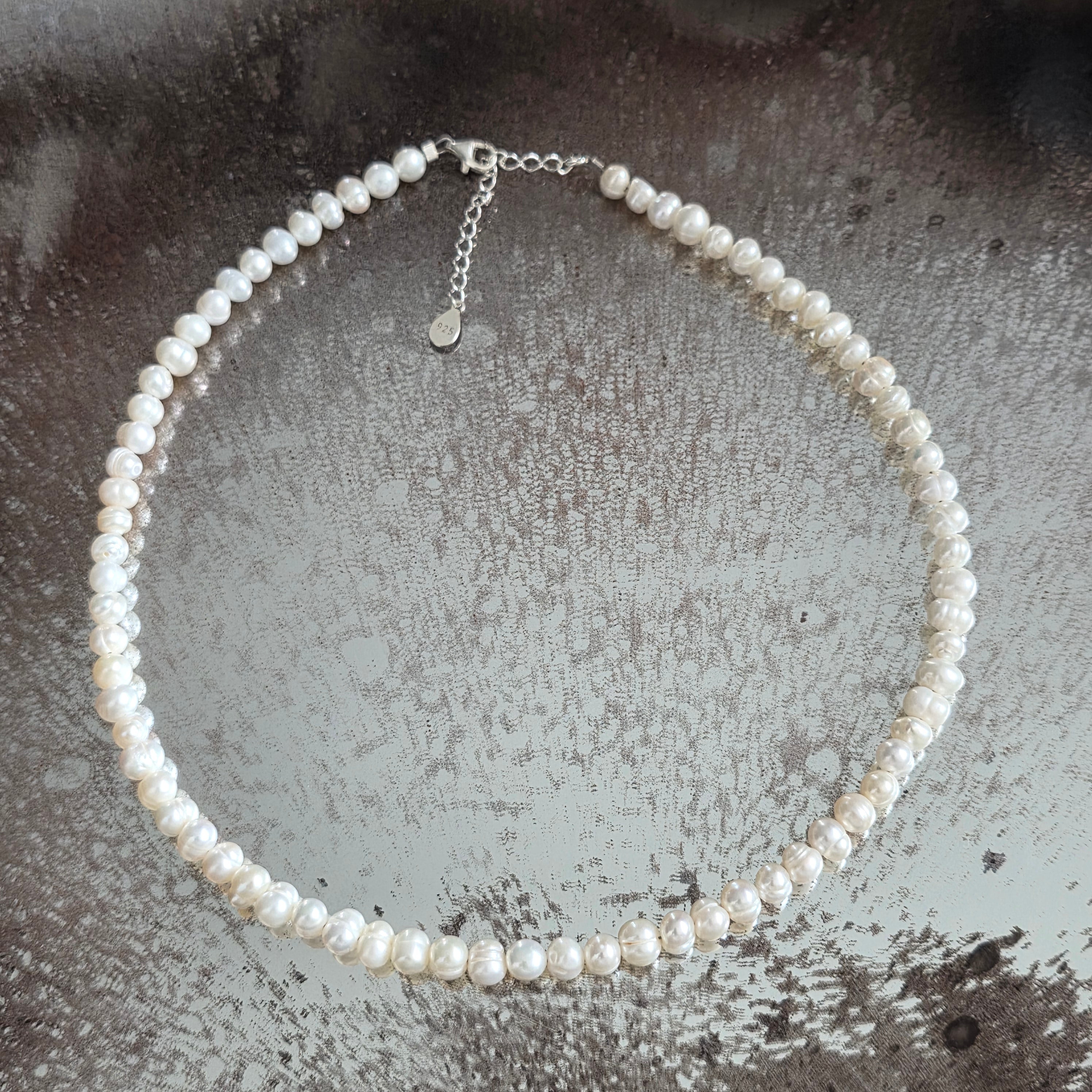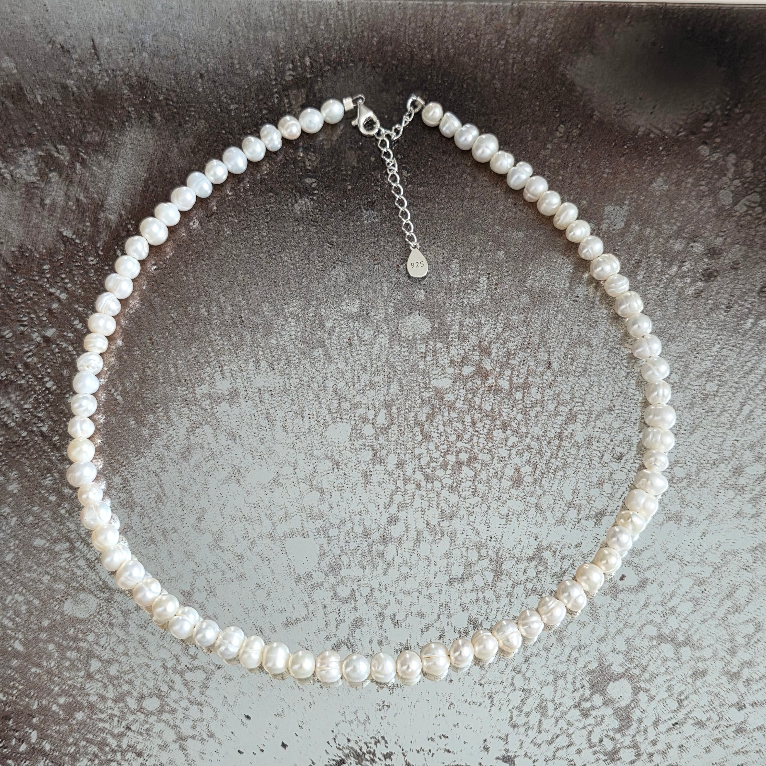 Фино и класическо колие, в което простотата се превръща в чиста елегантност. Белите перли с диаметър 6 мм създават деликатна, дискретна, но перфектно балансирана линия – бижу, което допълва без да доминира.
