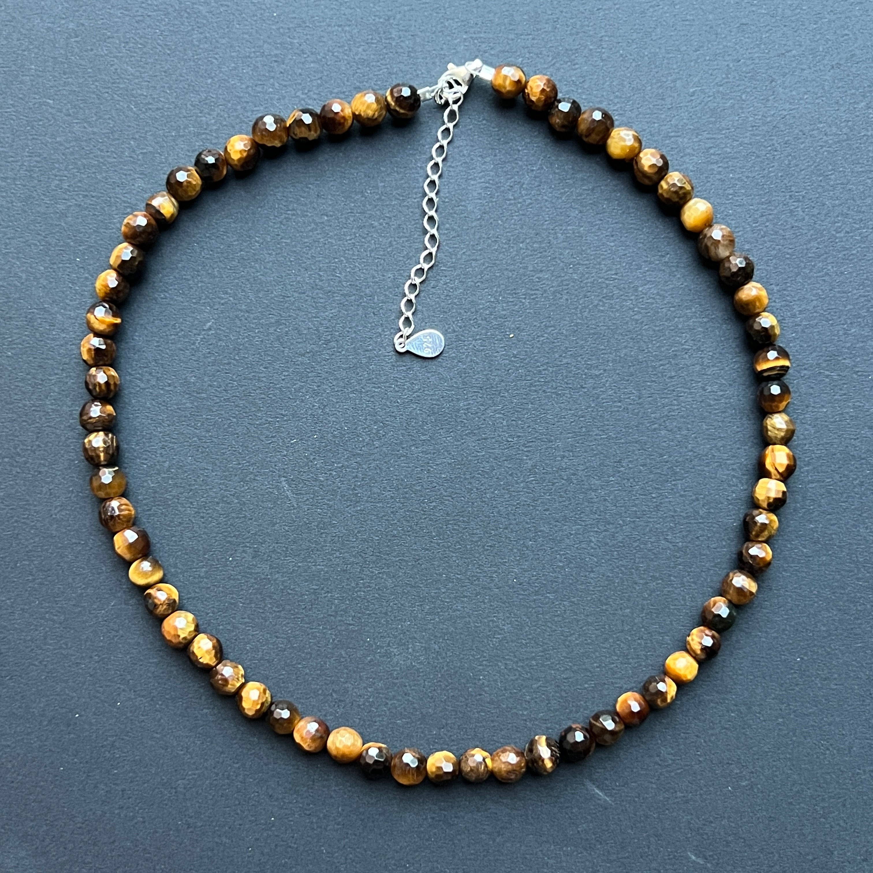 Материали: натурален тигрово око, фасетирано (6 мм), сребро 925