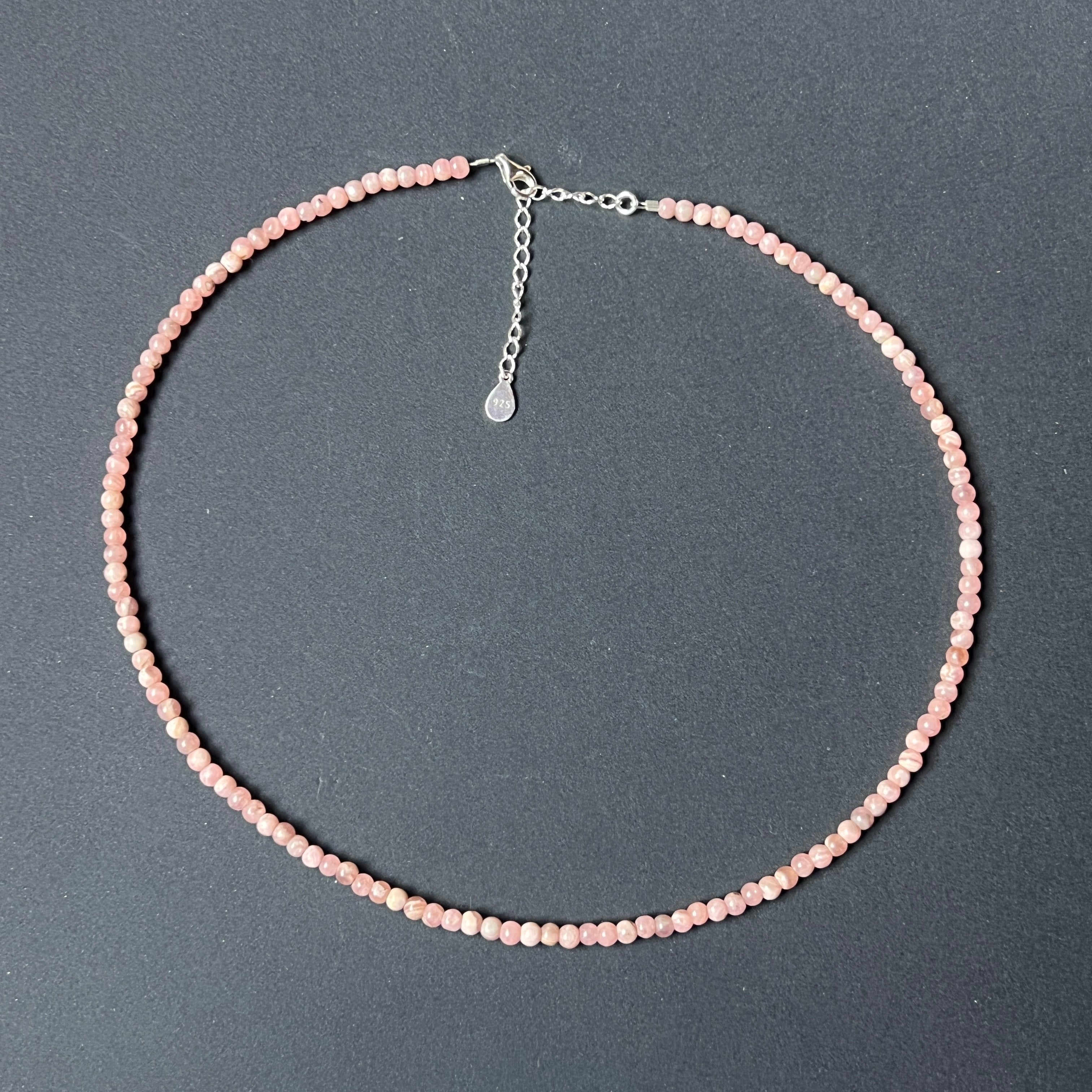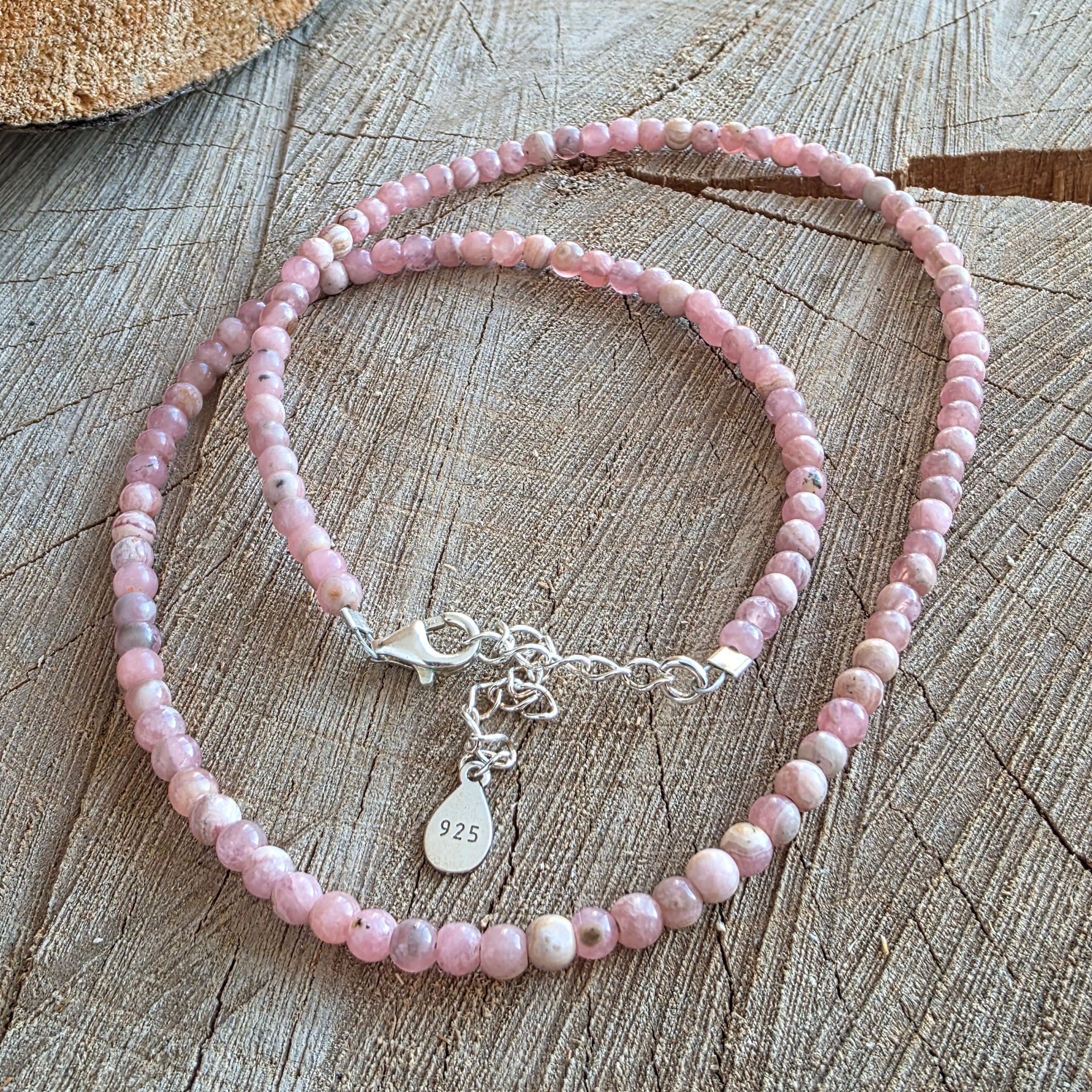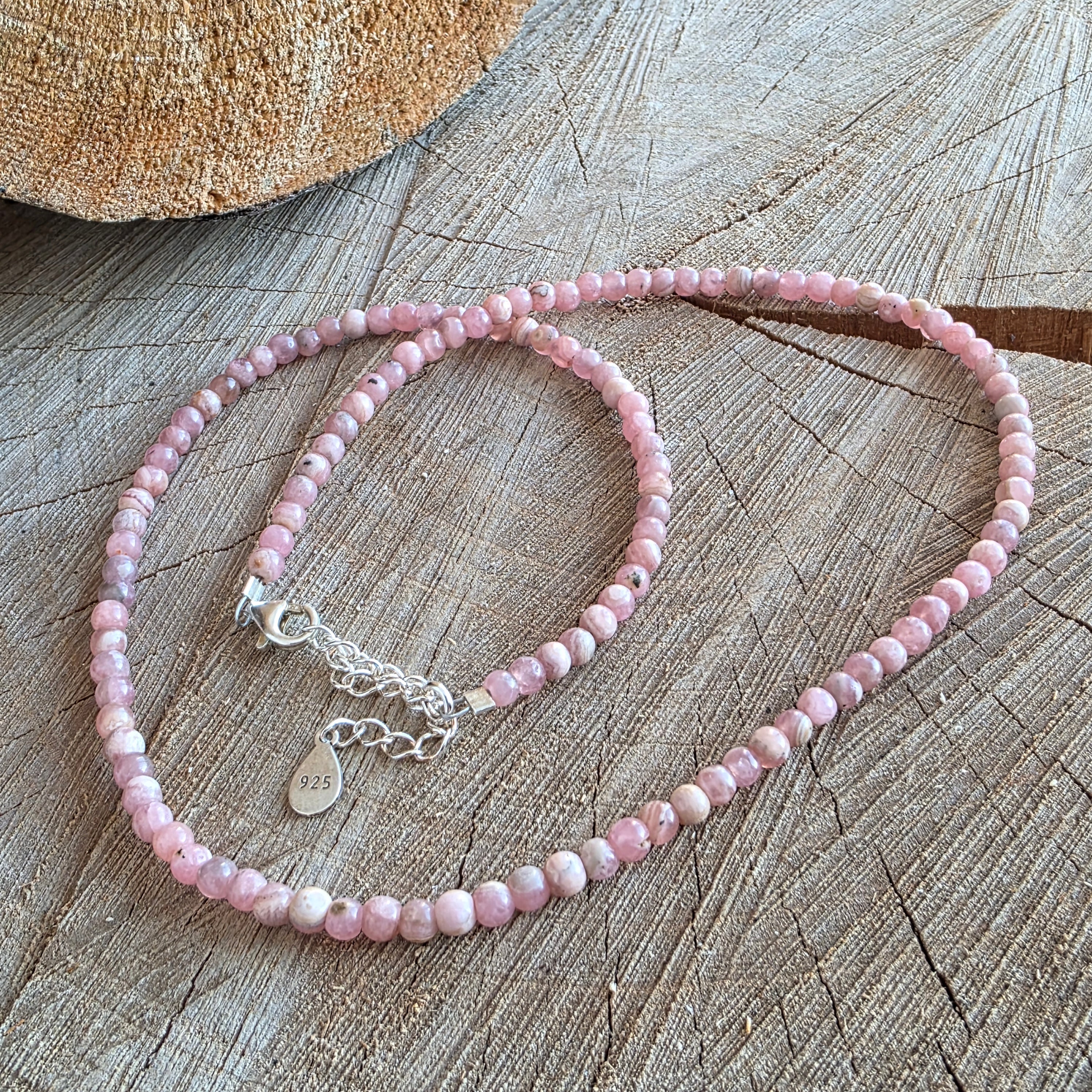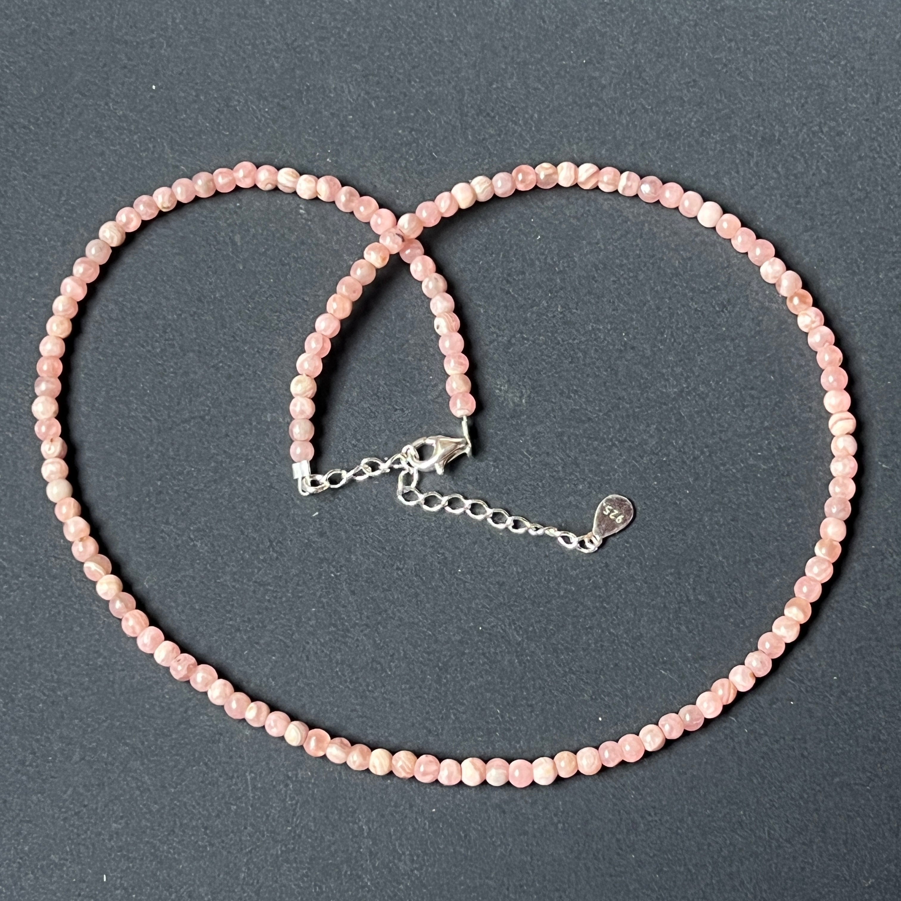 Материали: естествен родохрозит (сфери 4 мм), верижка и закопчалка от сребро 925
