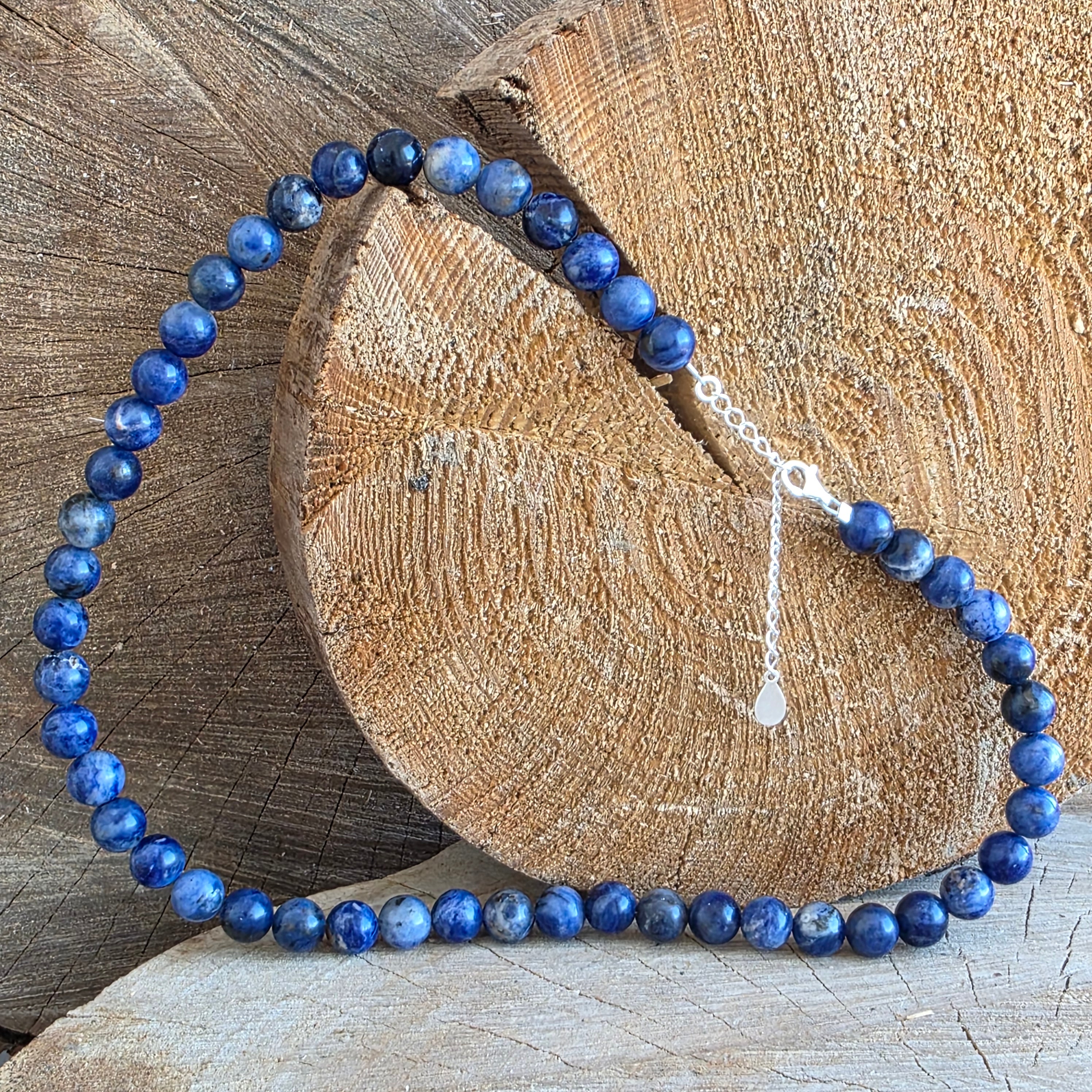Синята перла се свързва с спокойствие, емоционална яснота и балансирана комуникация. Това е материал, ценен за способността си да подкрепя вътрешното успокояване и хармонизиране на емоционалните състояния, предоставяйки нежно и стабилно присъствие. Неговата енергия е спокойна, подходяща за ежедневно носене и за моменти, когато е необходим баланс и яснота.
