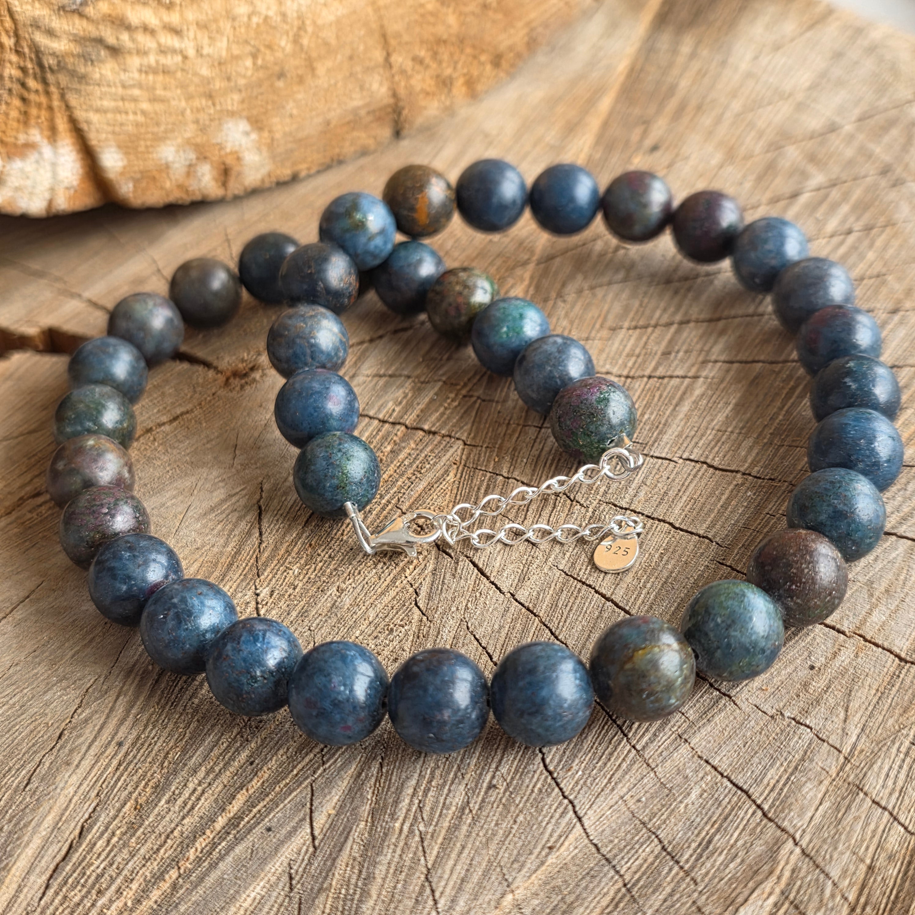 Колие с внушително присъствие, в което дълбочината на сапфира и интензивността на рубина създават царствен контраст, пълен с сила и елегантност. Сферите от 10 мм придават обем и видимост, превръщайки този аксесоар в централна точка на всяко облекло.
