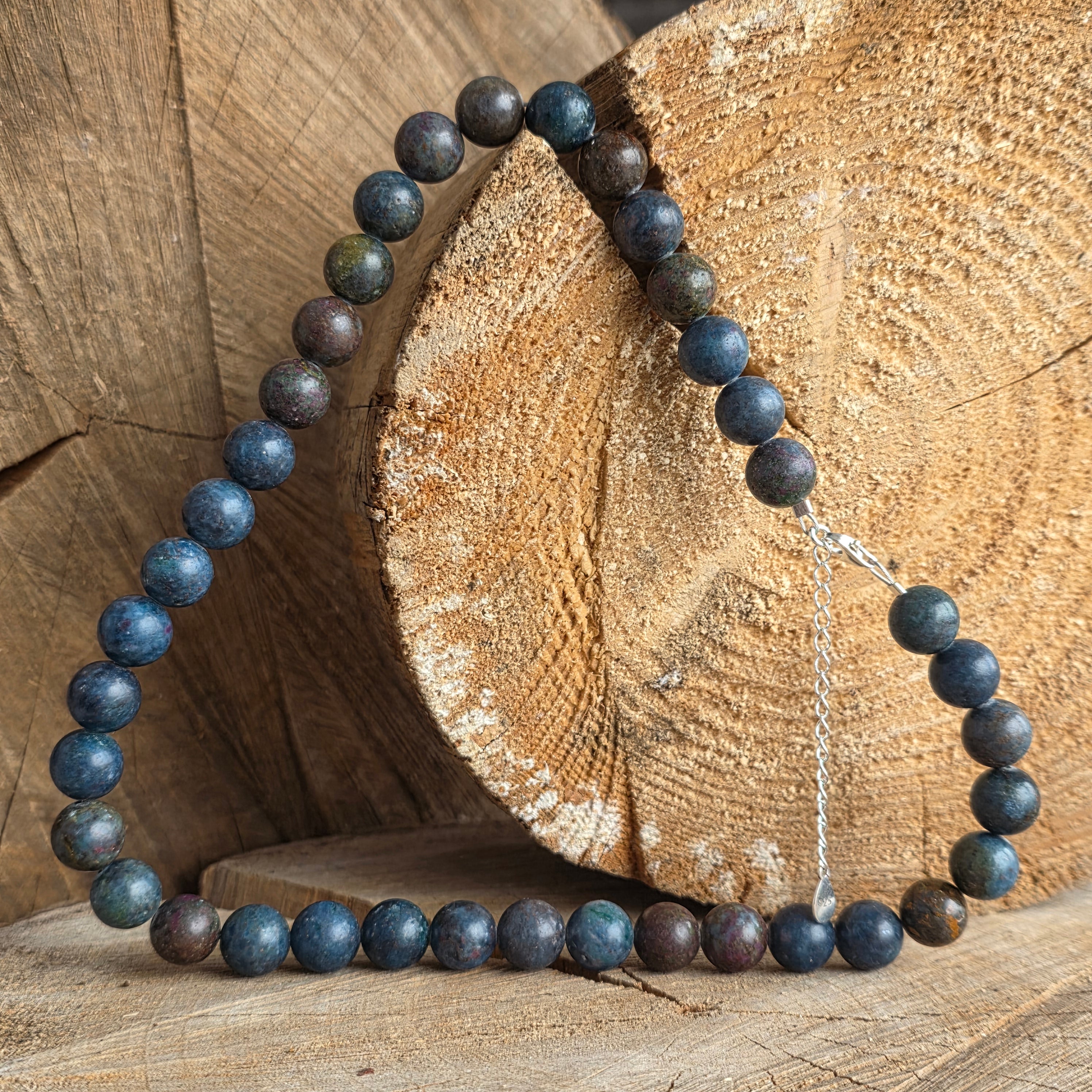 Материали: естествен сапфир и рубин (сфери 10 мм), сребро 925, закопчаване тип лобстер от сребро