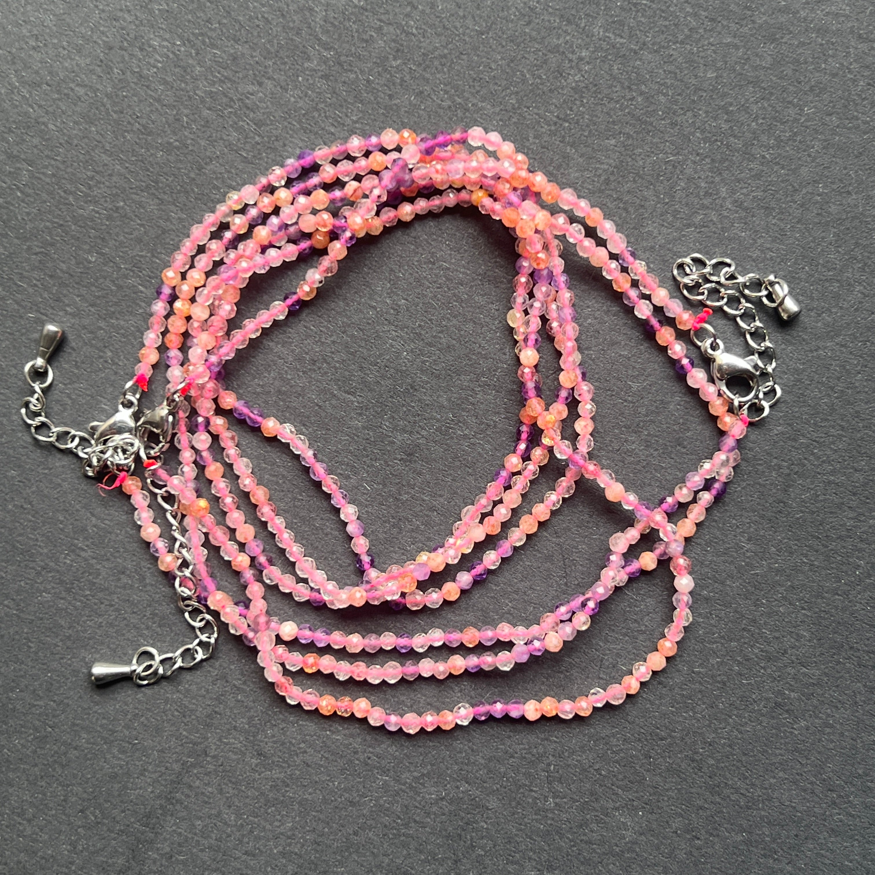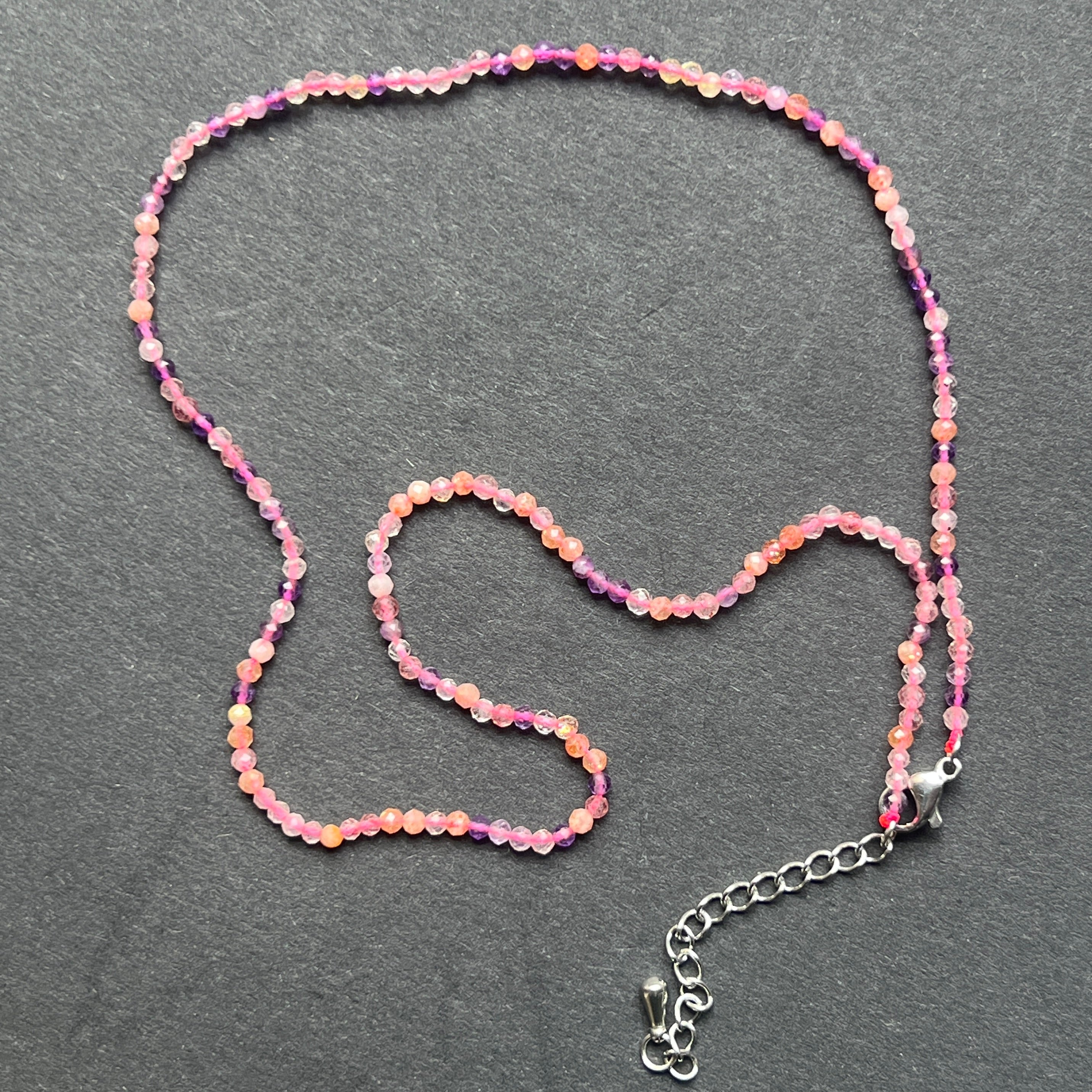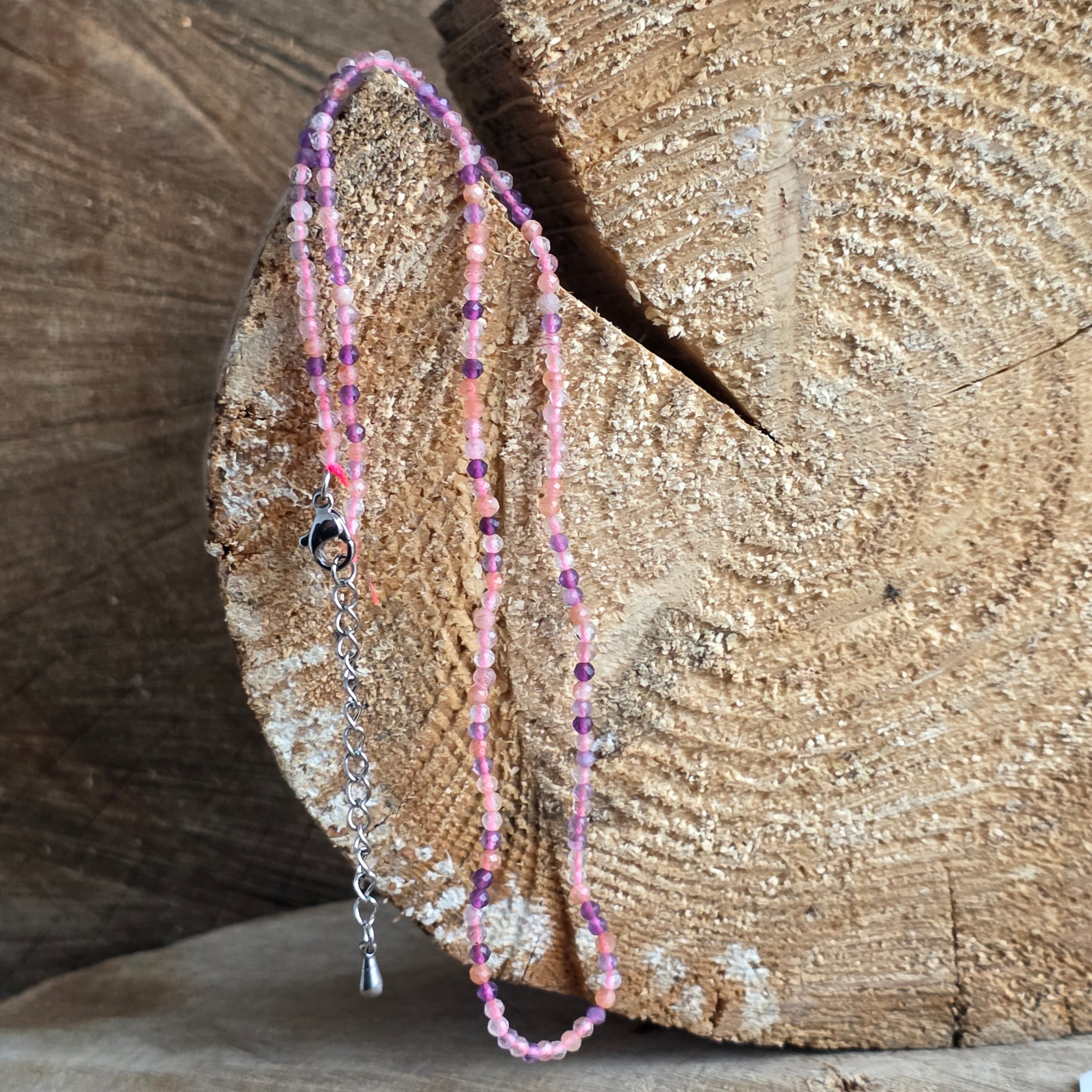Колие с аметист, розов кварц и цитрин, топчета 2 мм, размер: 38 + 5 см (удължителна верижка)