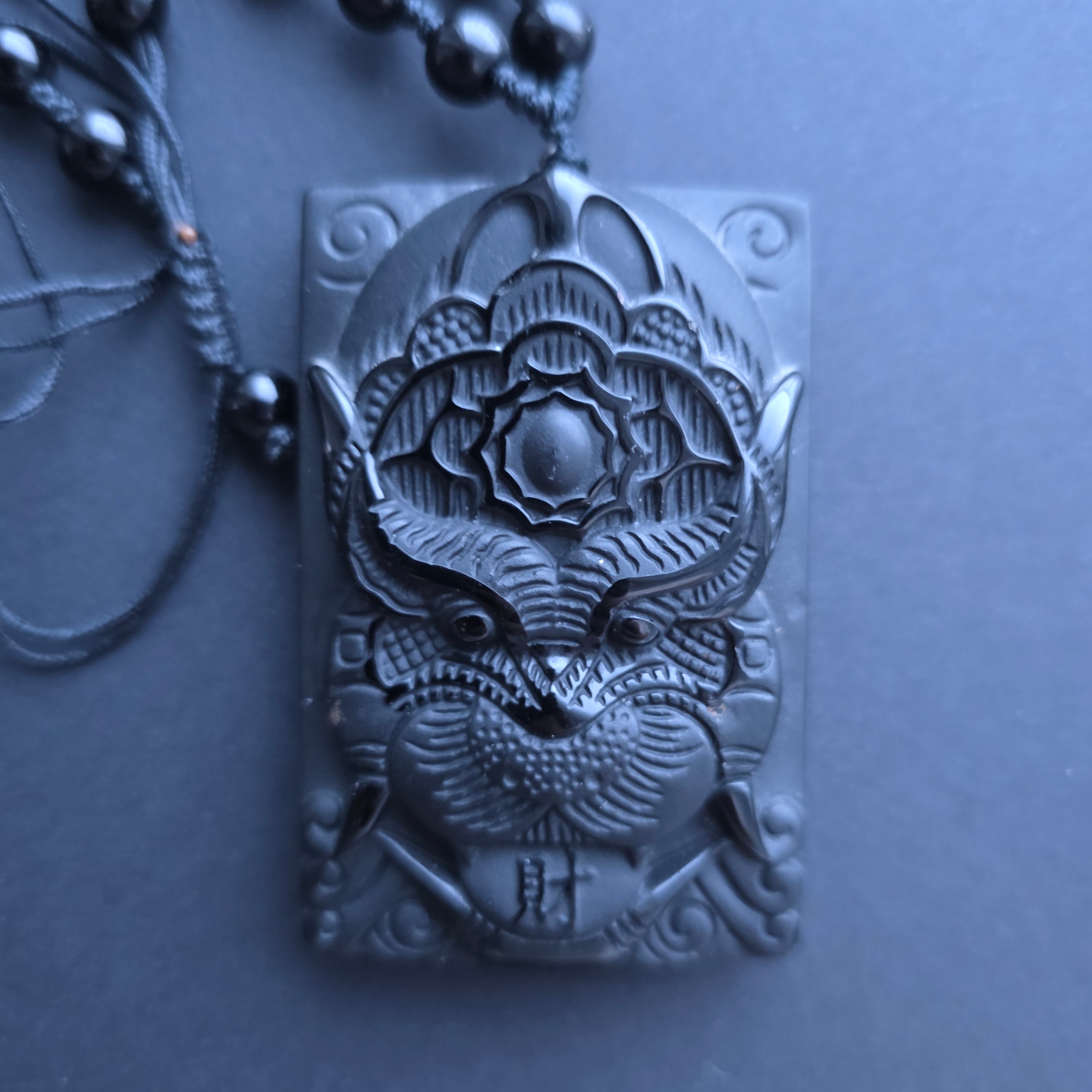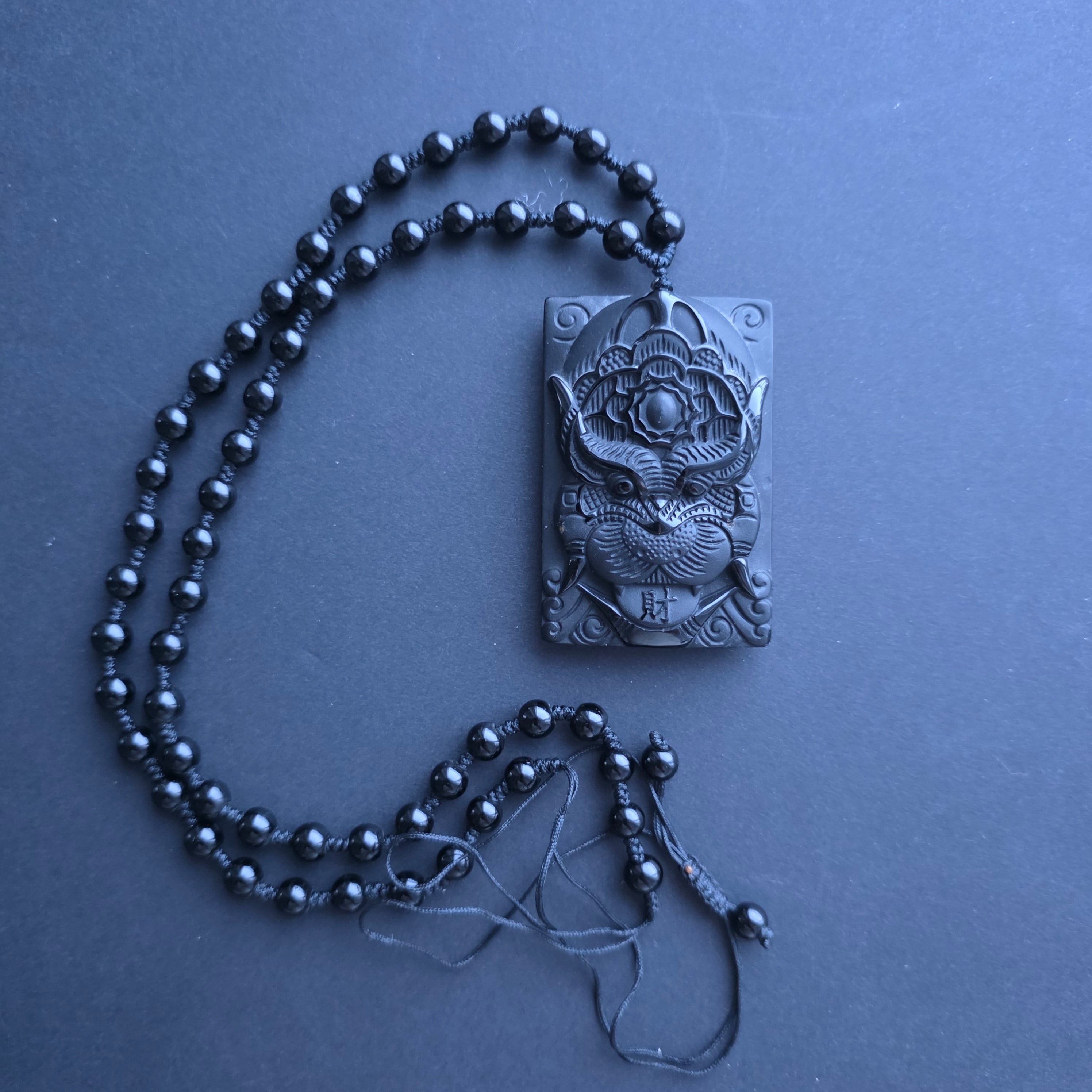 Описание - Колие с амулет от черен обсидиан | Дракон