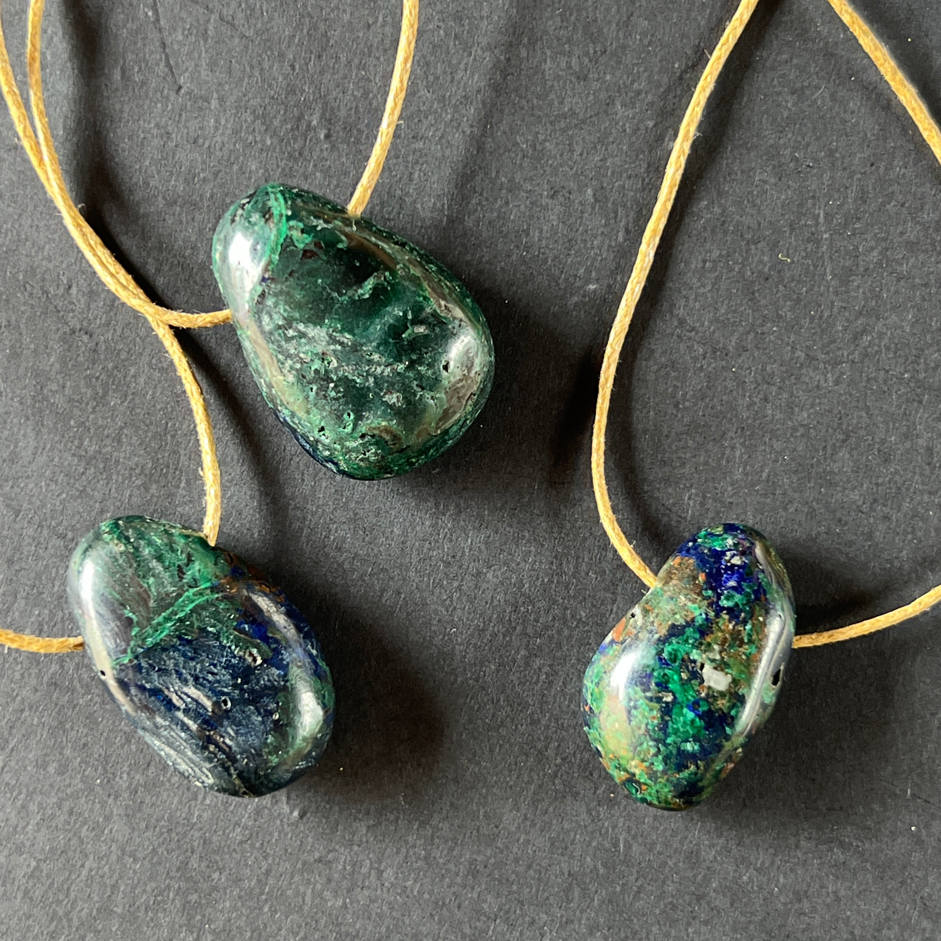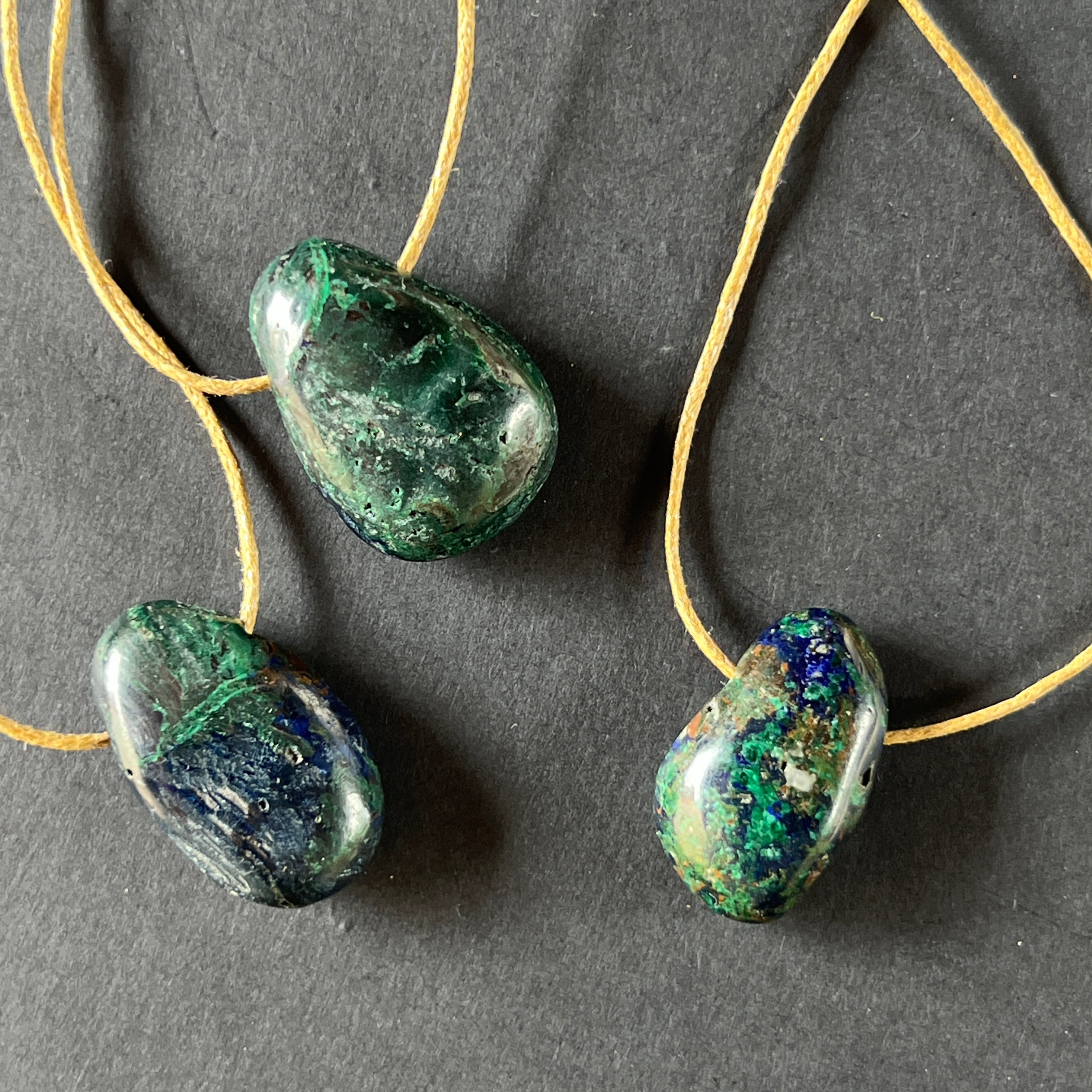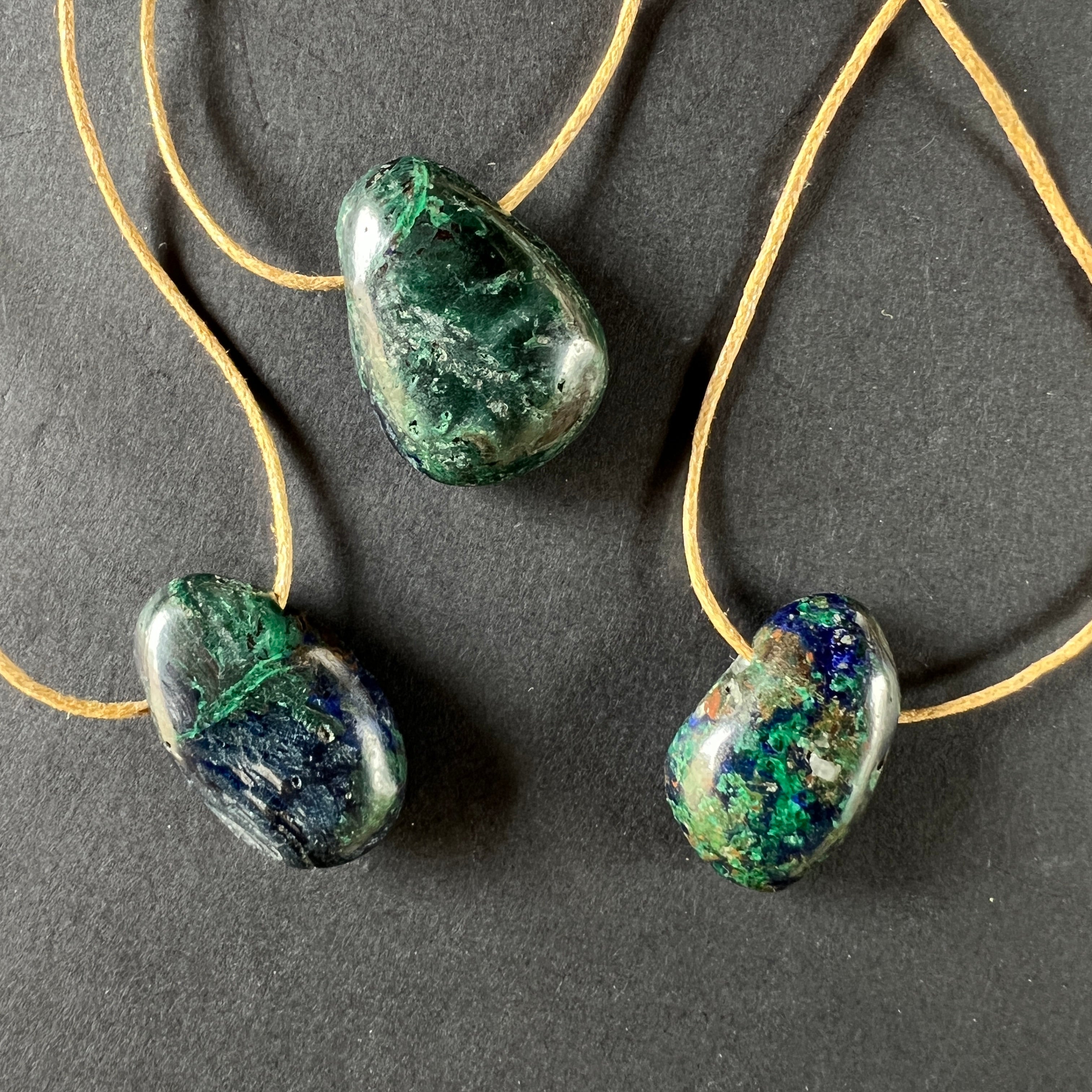 Азурит-малахитът е впечатляващ полускъпоценен камък, който съчетaва наситено синьото на азурита с живото зелено на малахита.