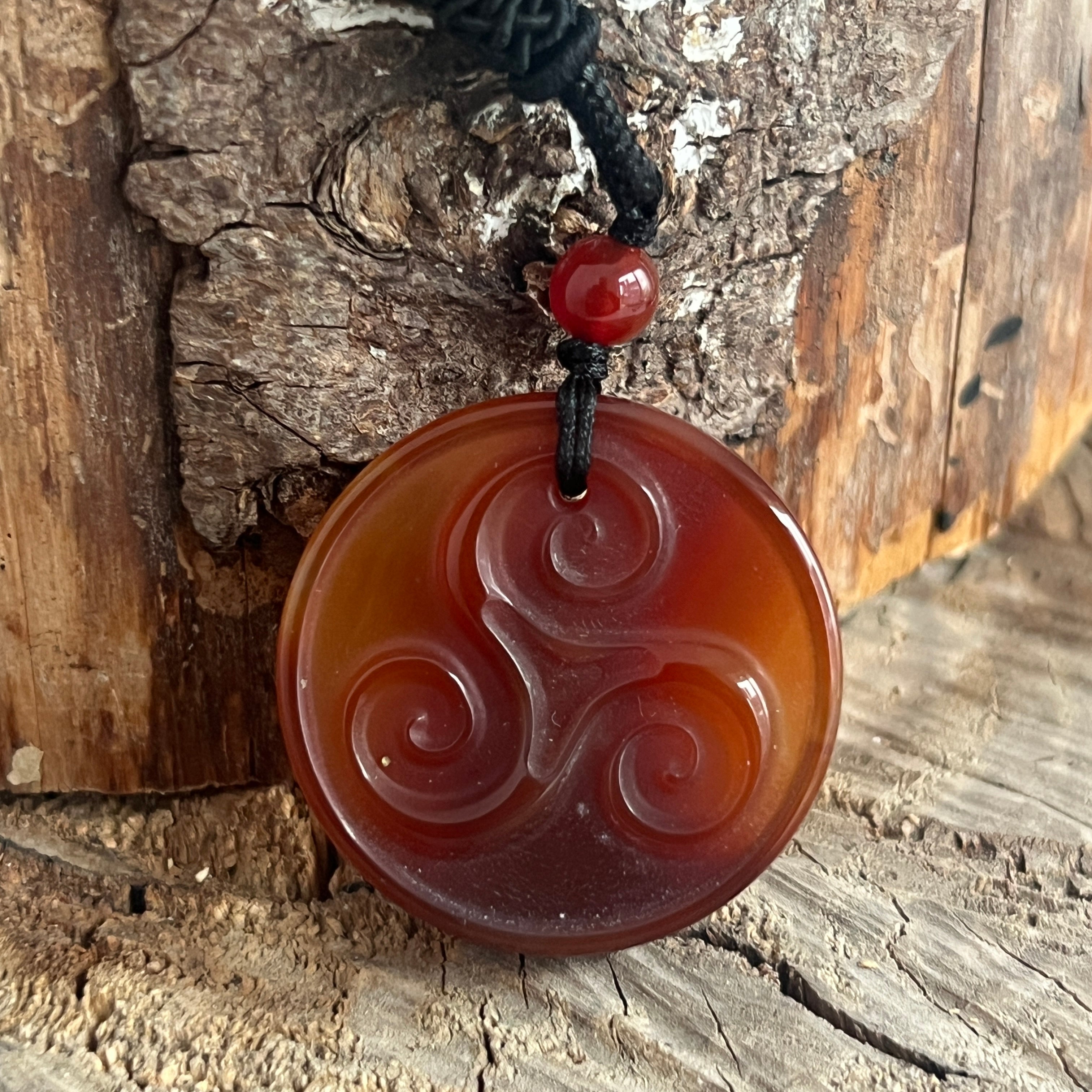 Колие с висулка от карнеол | Келтска спирала Трискелион