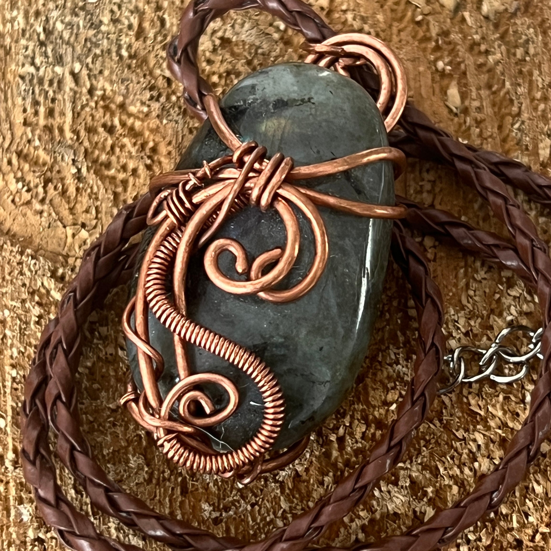 Descriere - Колие с висулка от лабрадорит в мед/артистична тел, модел 2