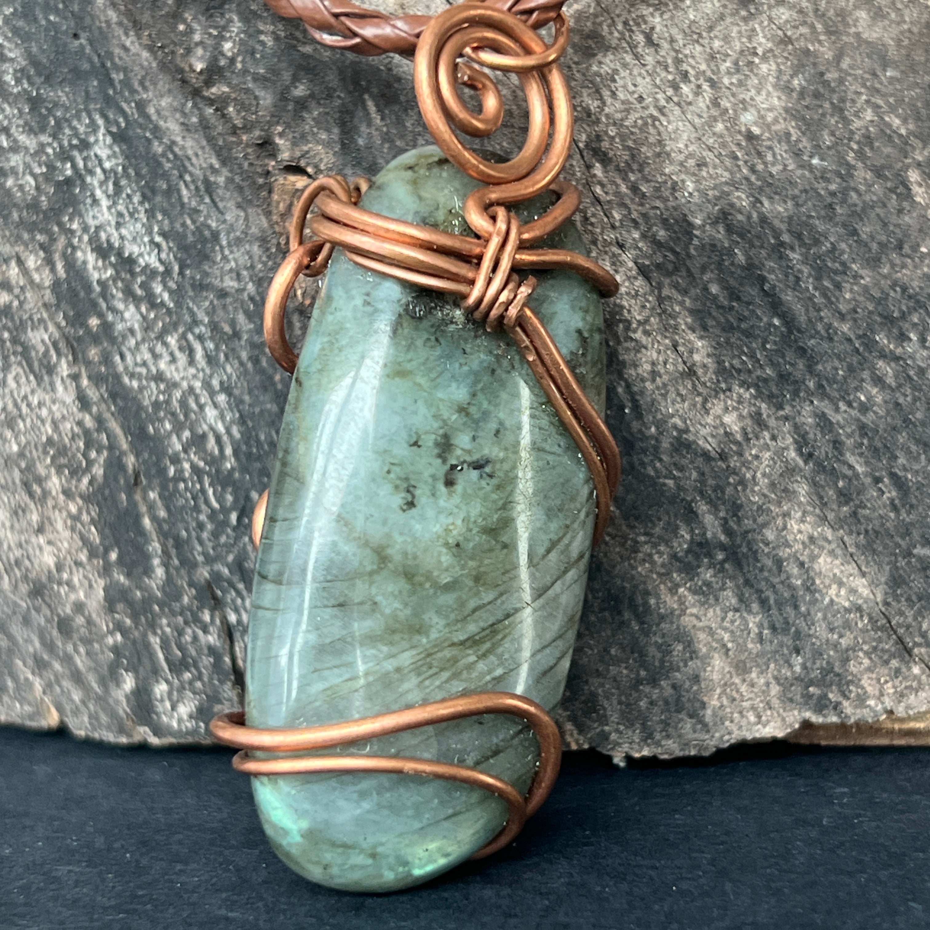 Колие с висулка от лабрадорит в мед/артистична тел модел 3