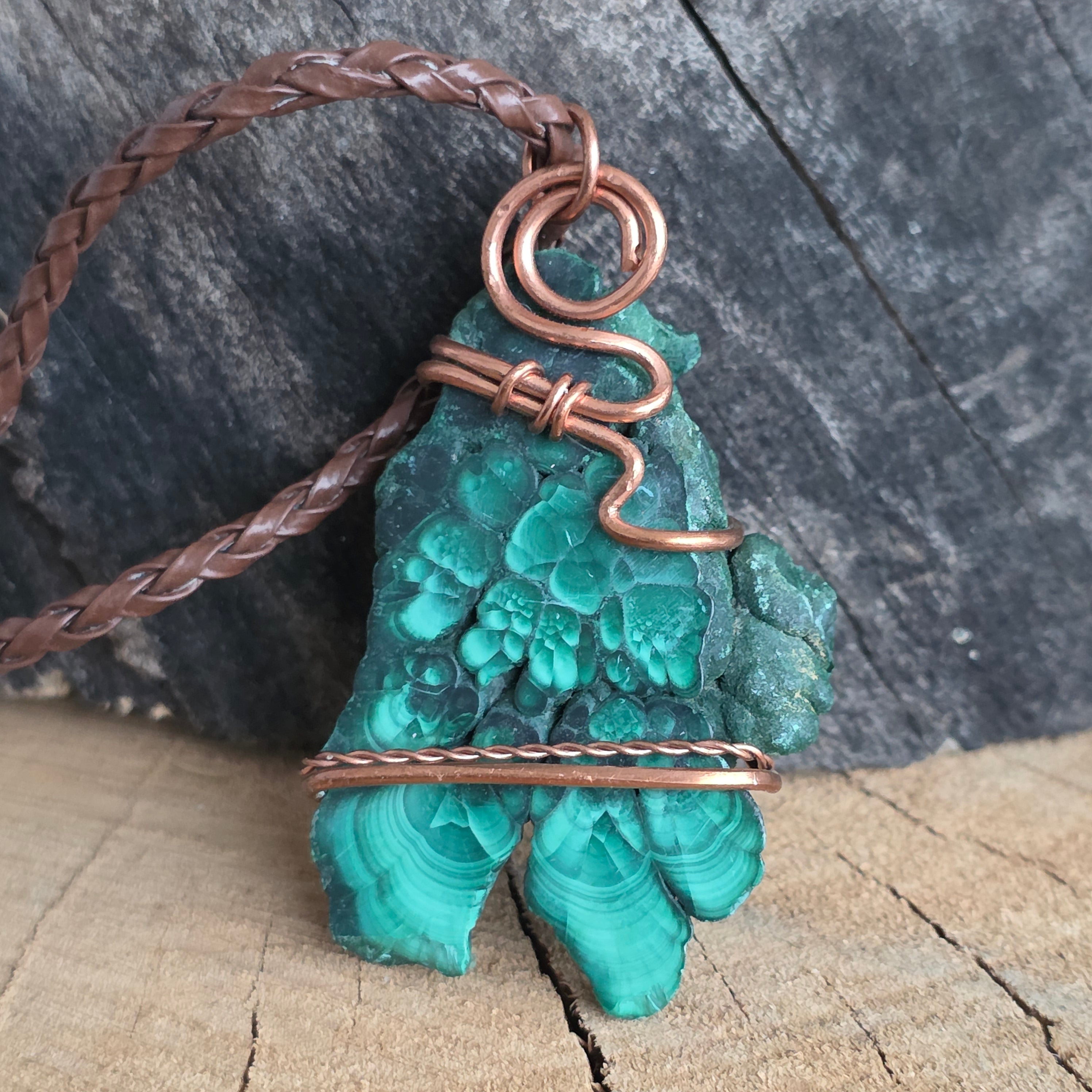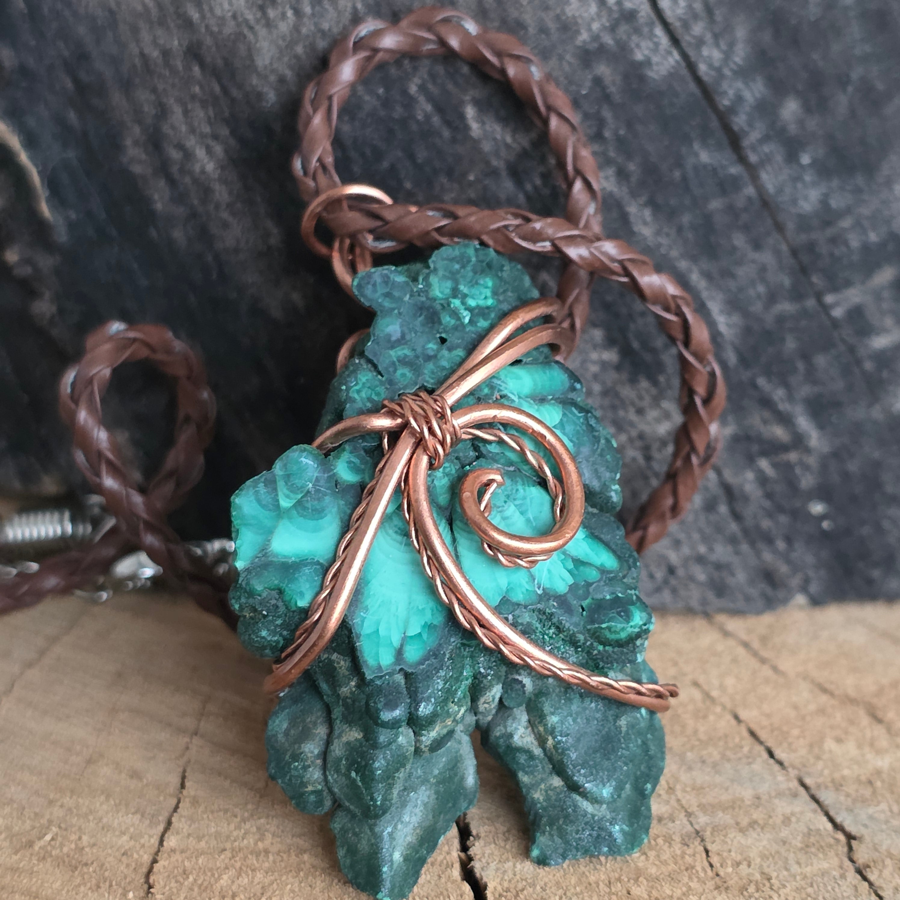 Описание - Колие с висулка от малахит в мед/артистична жица m2