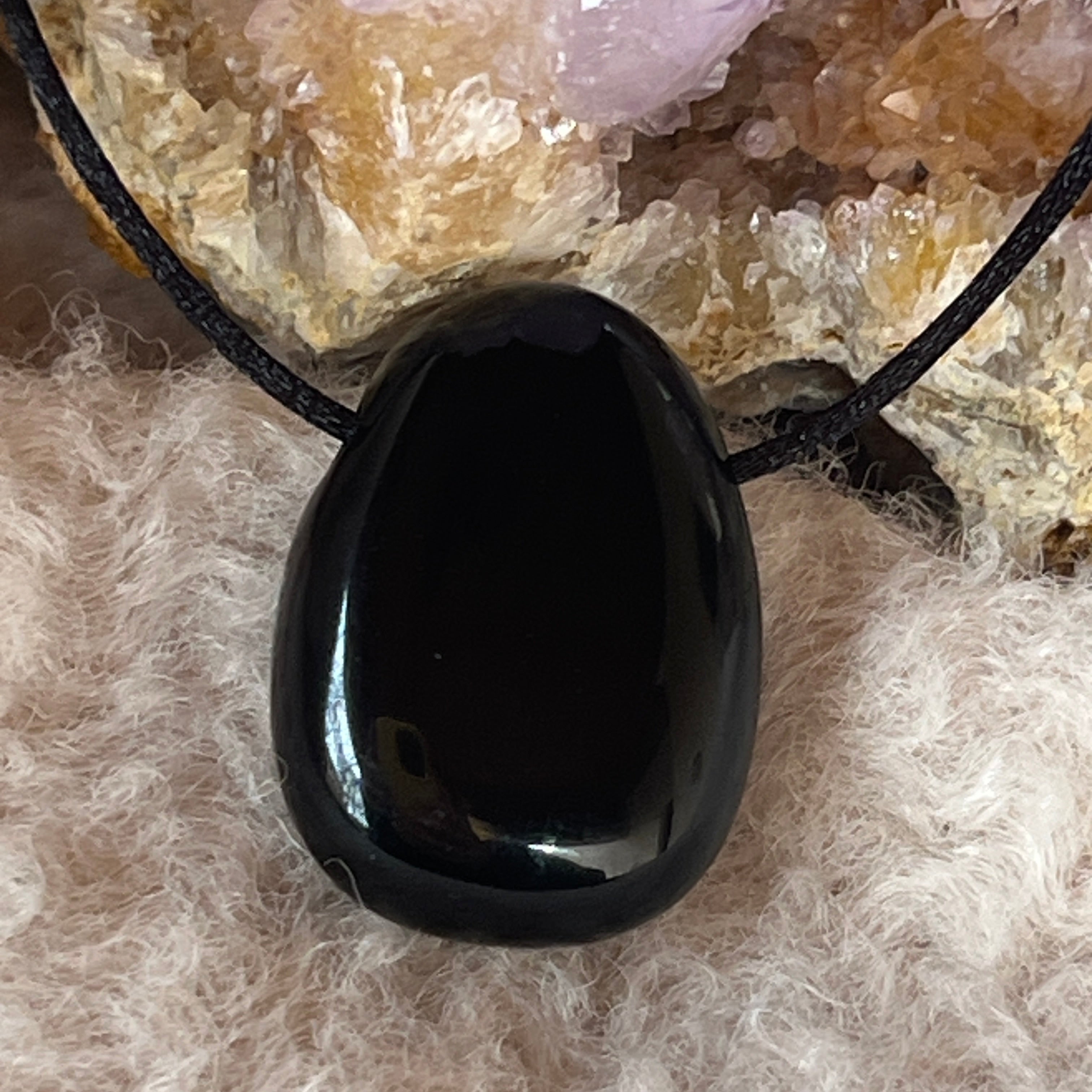 Носи огърлица с медальон от черен оникс, за да добавиш на облеклото си символ на защита, елегантност и вътрешна сила ⚫✨.