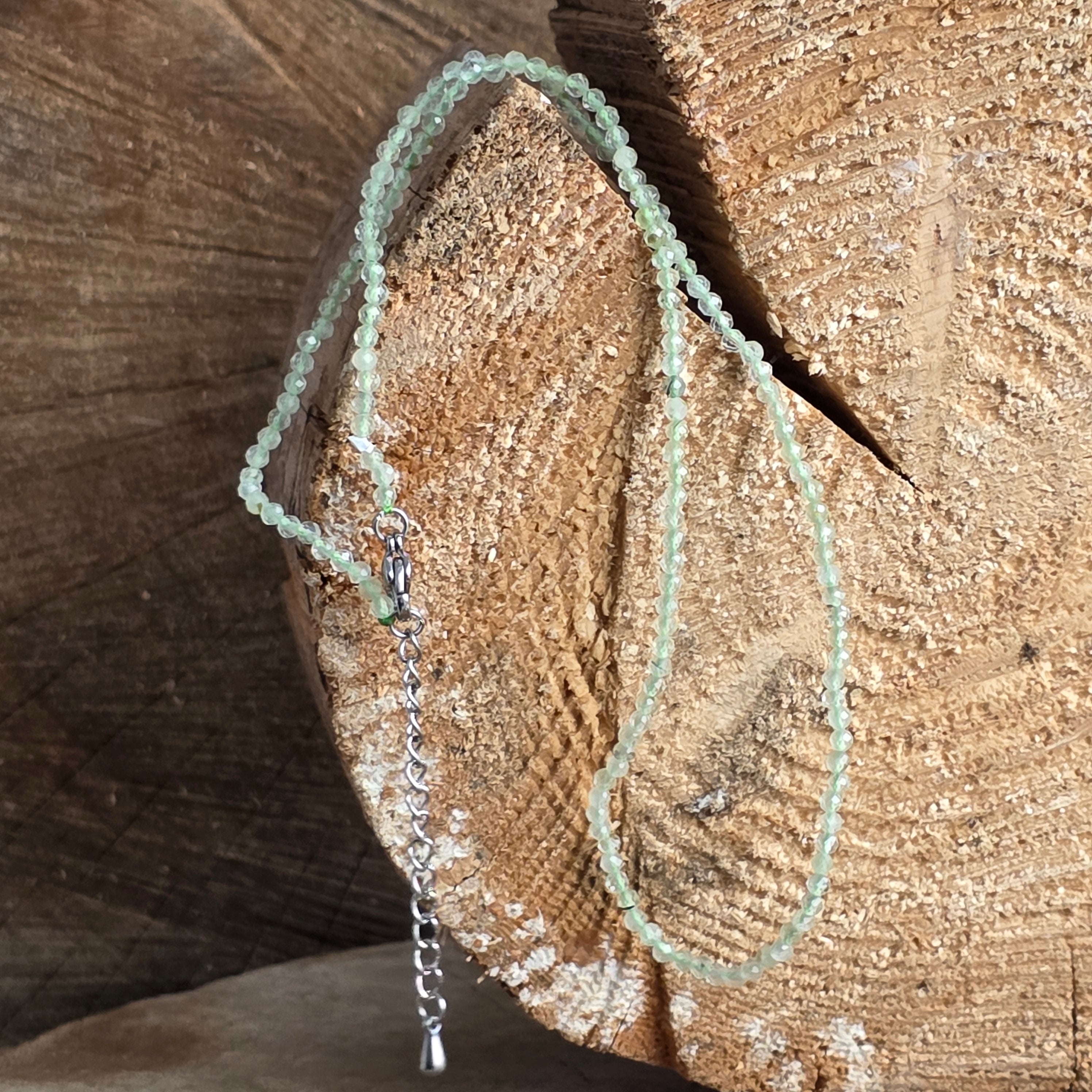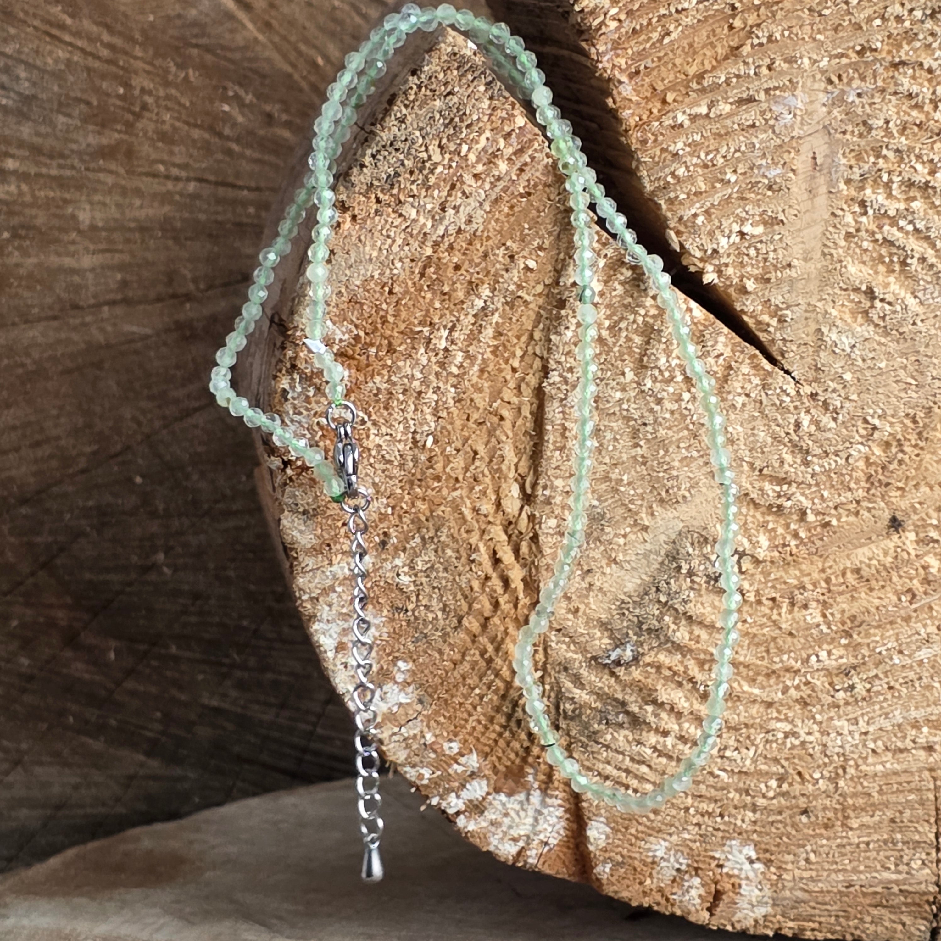 Колие с пренит, мъниста 2 мм, размер: 38 + 5 см (удължителна верижка)