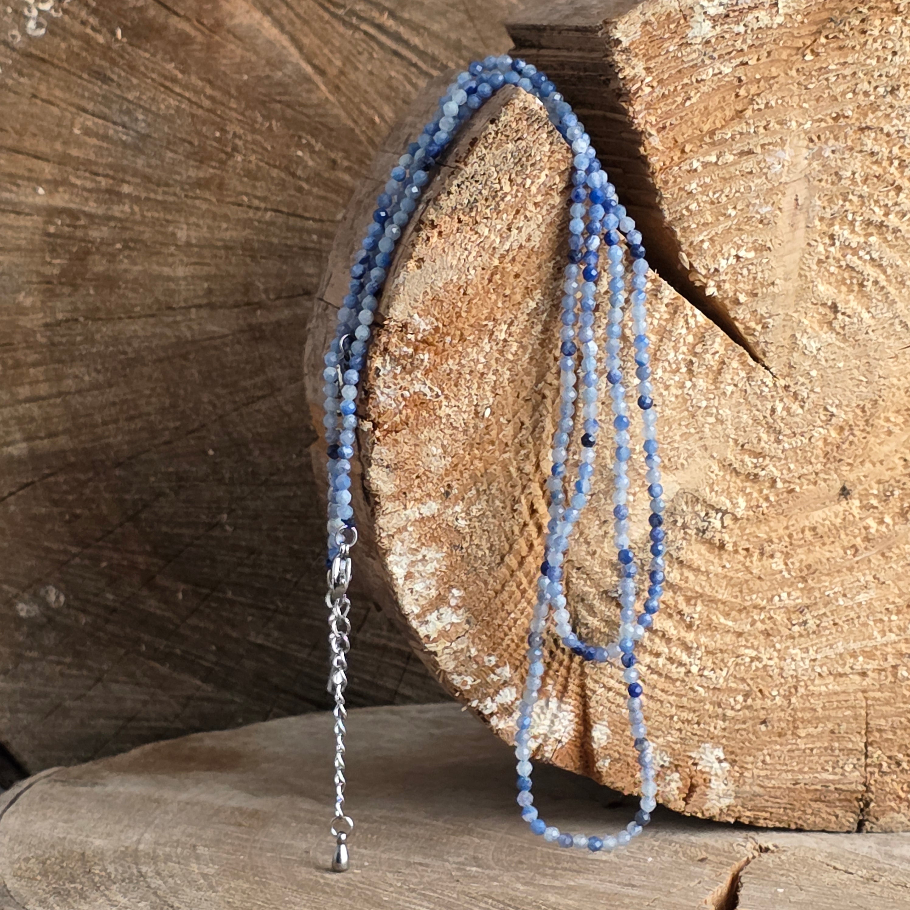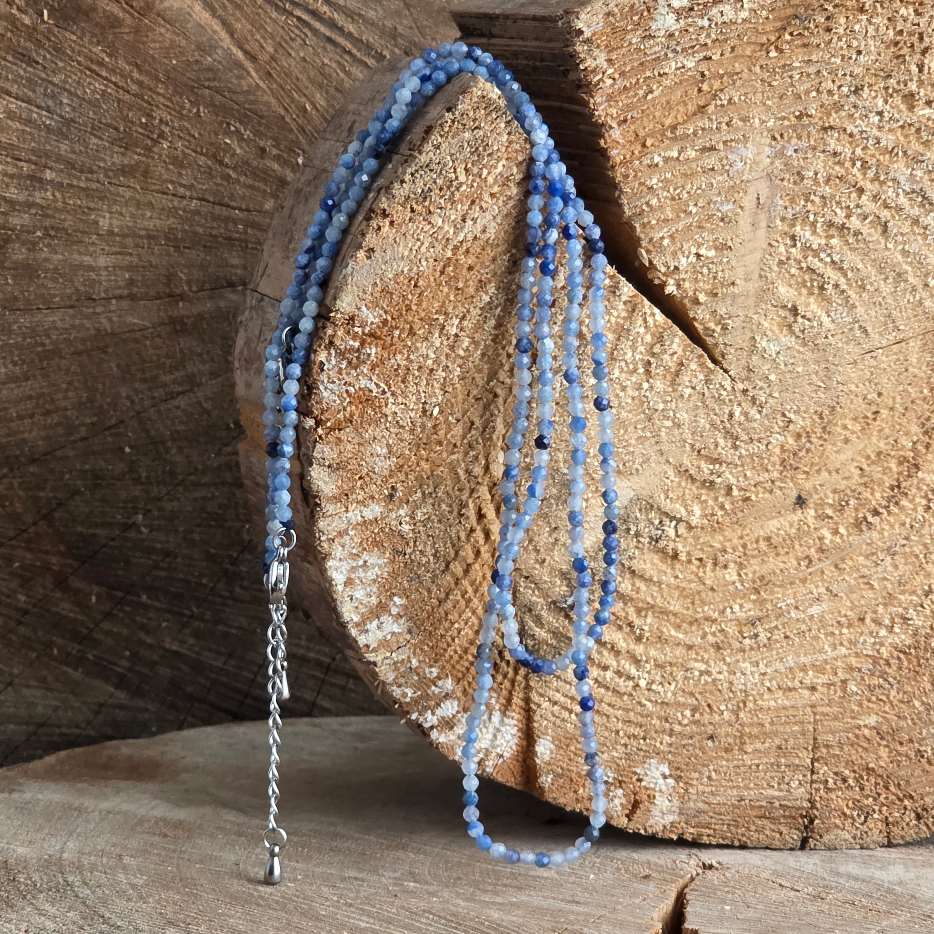 Колие с сини авентуринови сфери 2-3 мм, размер: 38 + 5 см (регулираща верижка)