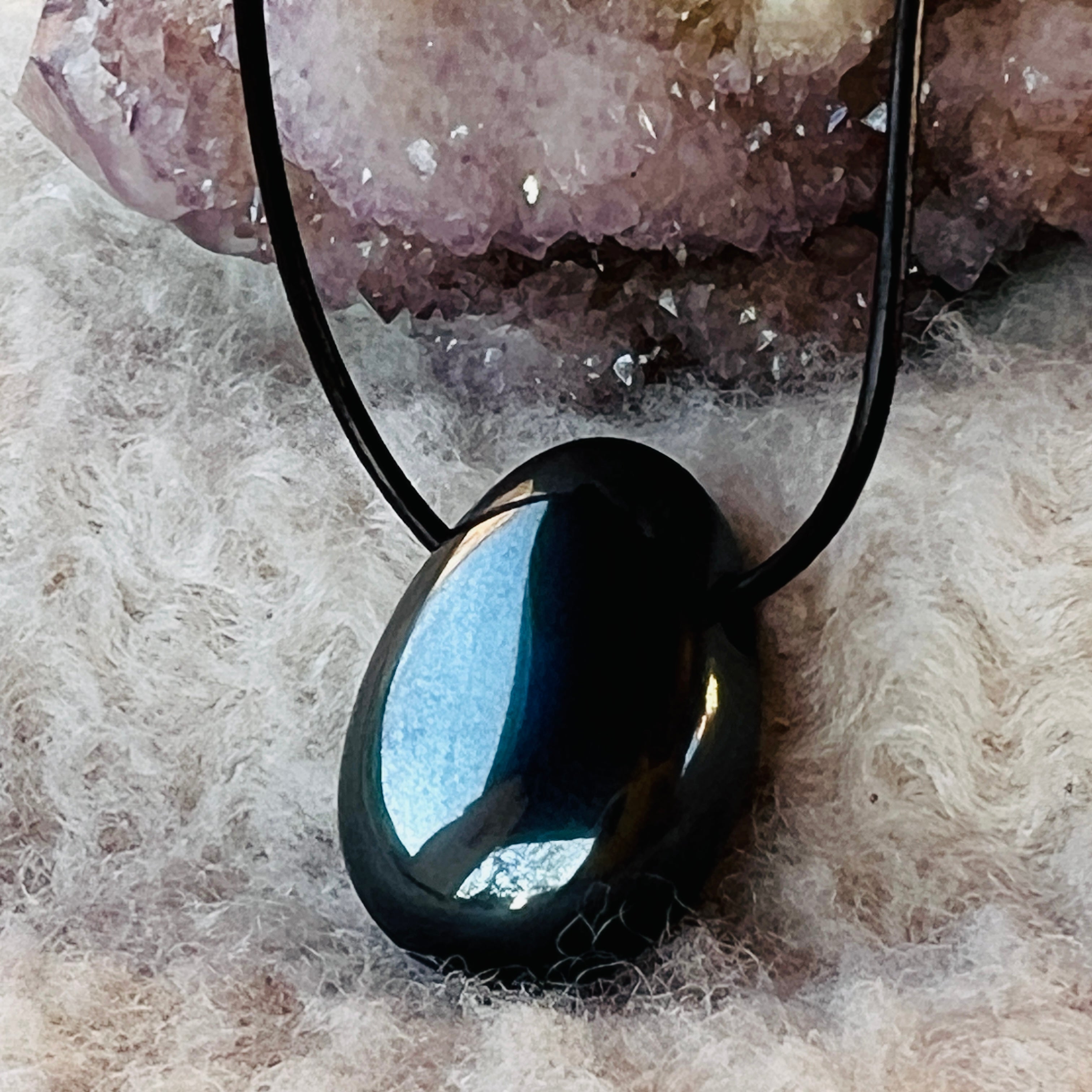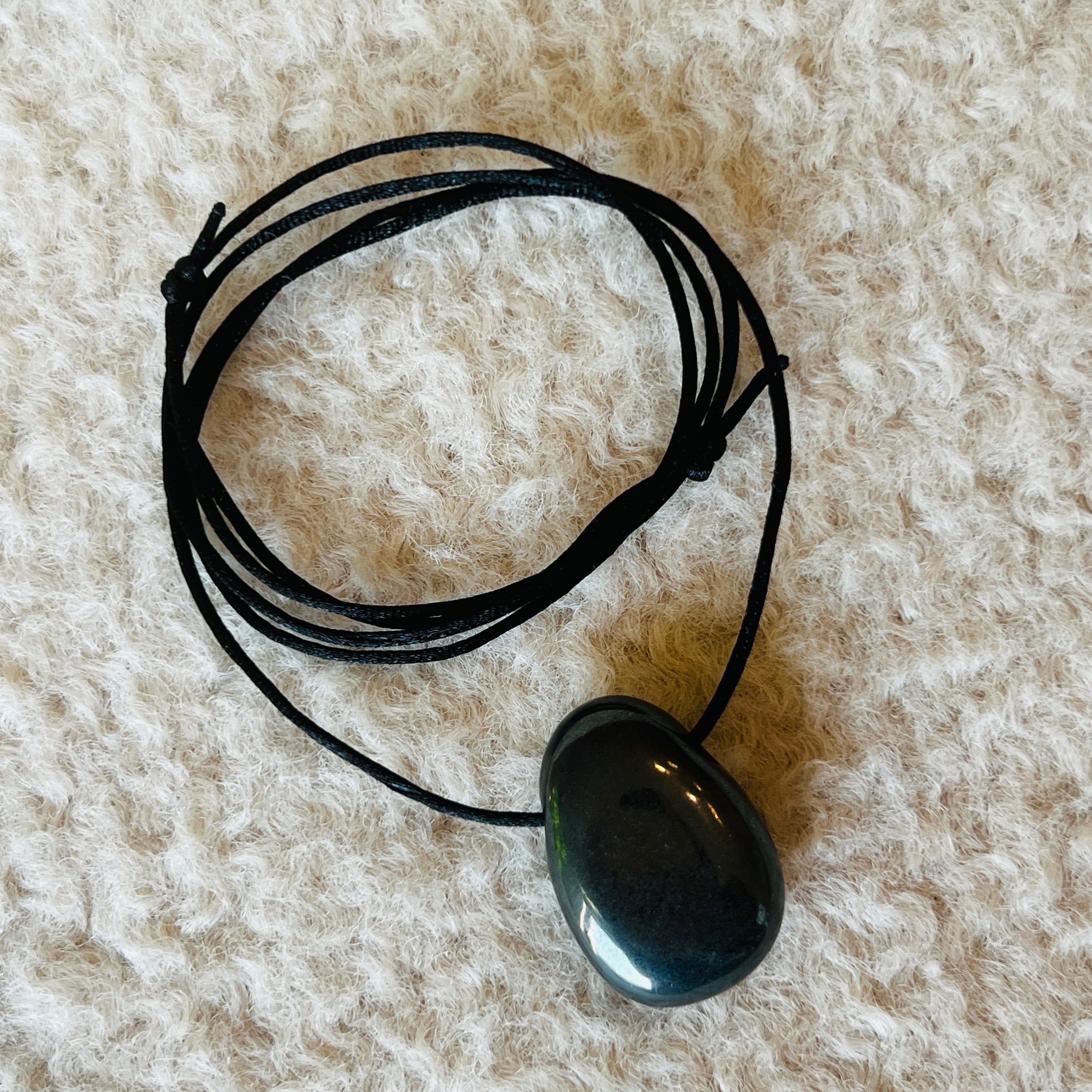 Носи огърлицата с хематитов медальон, за да добавиш на твоя тоалет символ на защита и вътрешна сила ⚫✨.